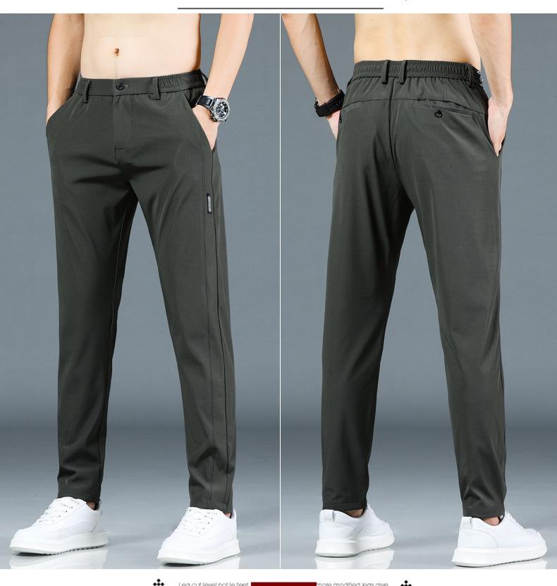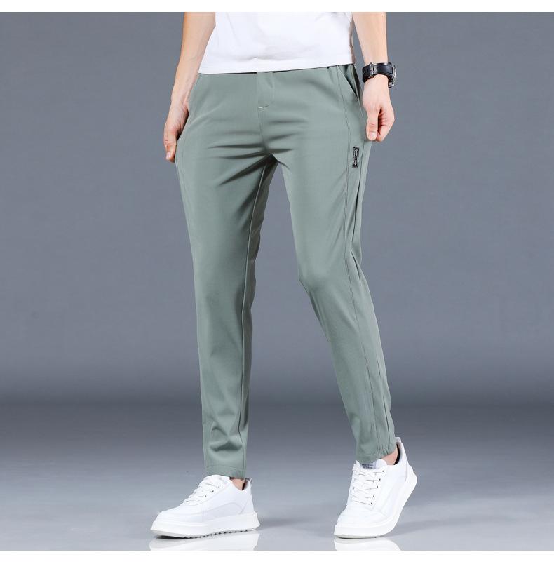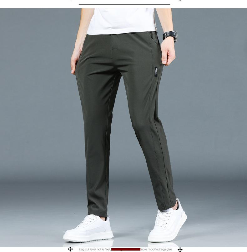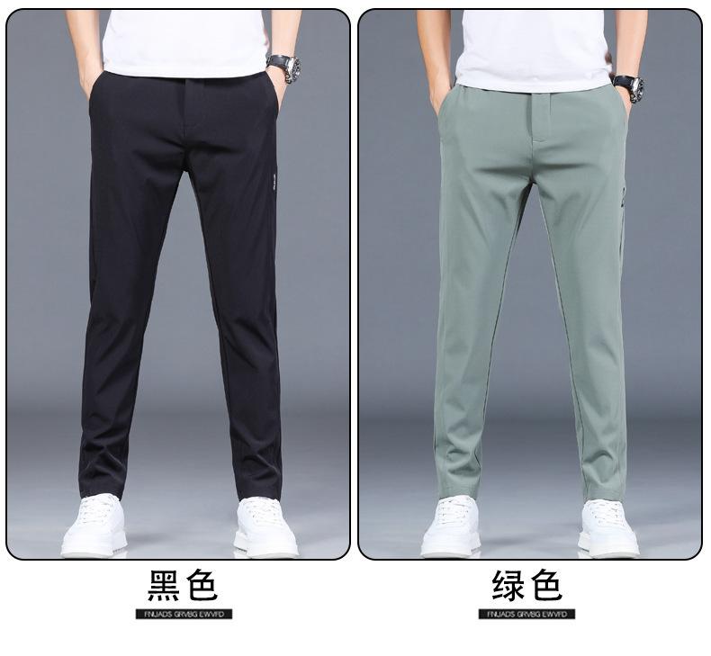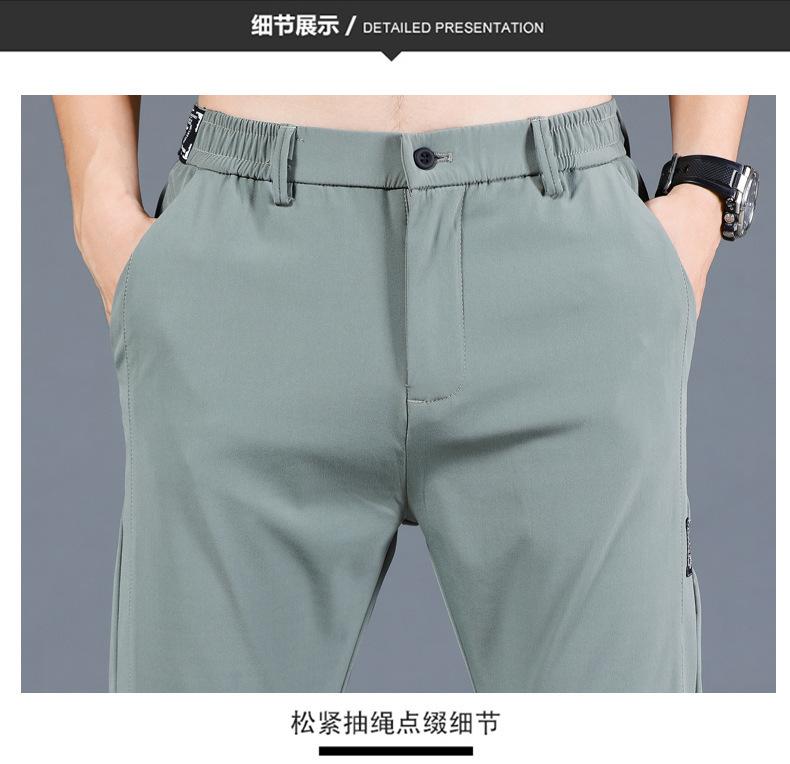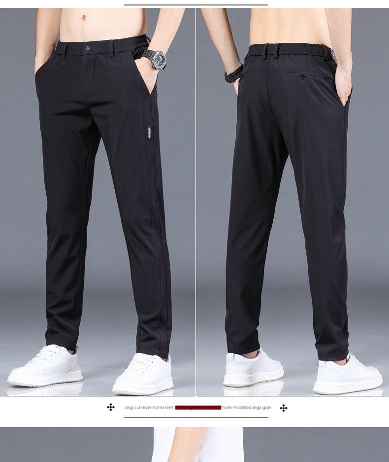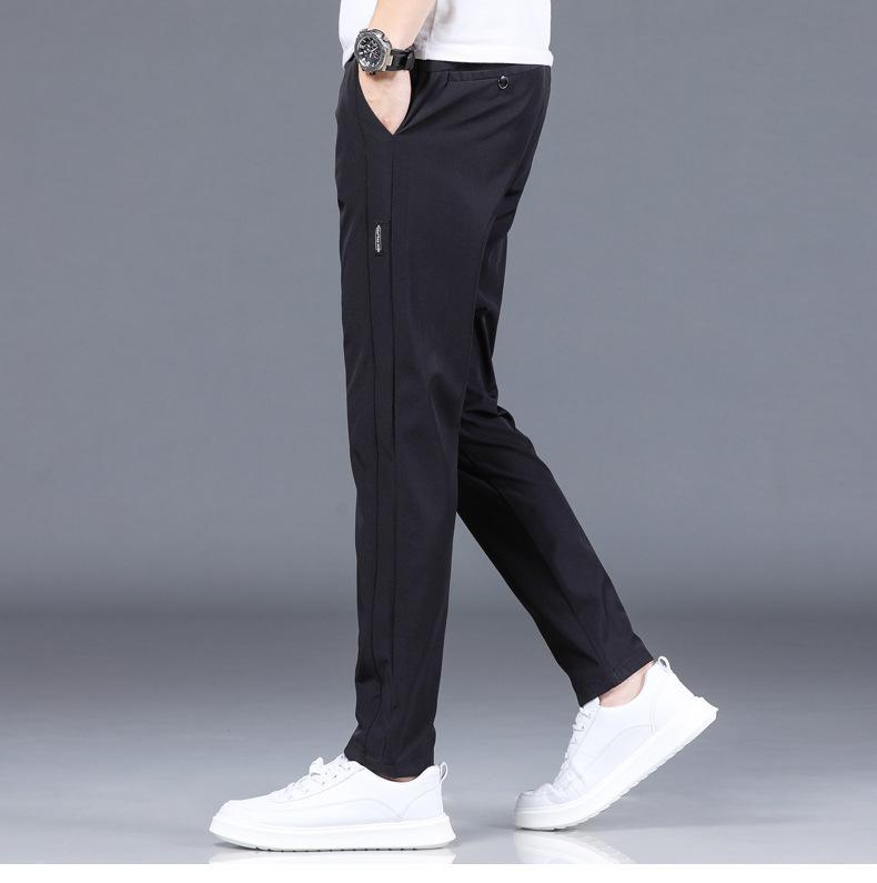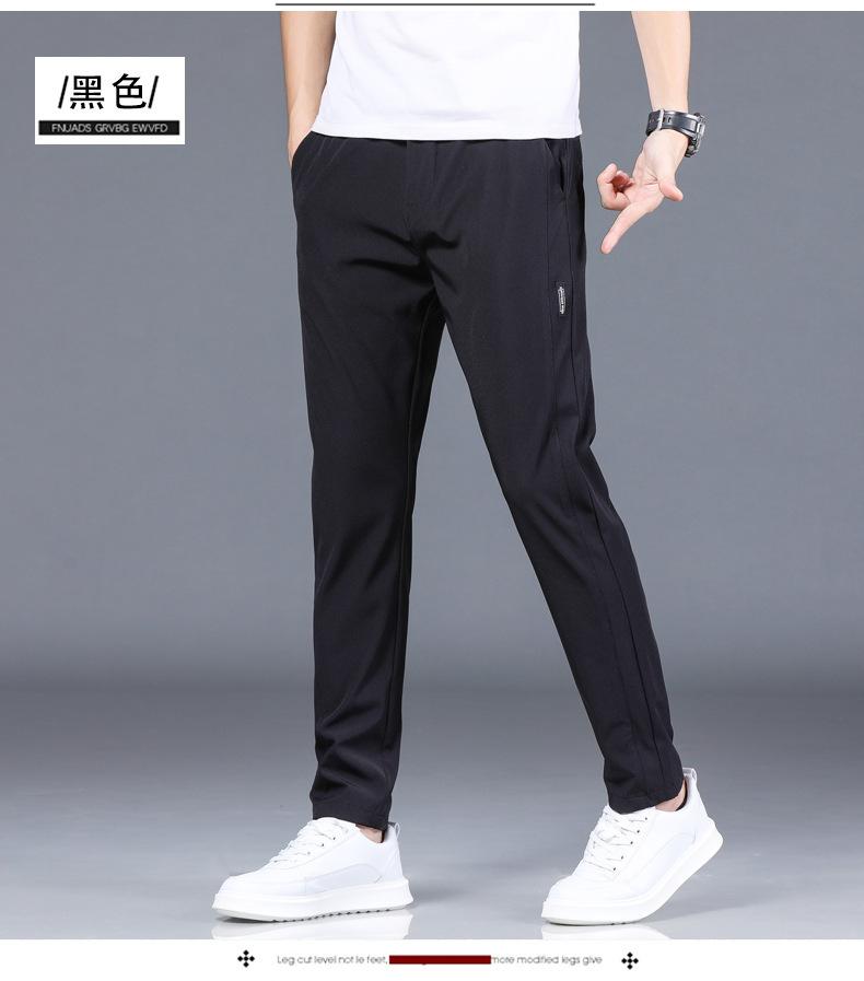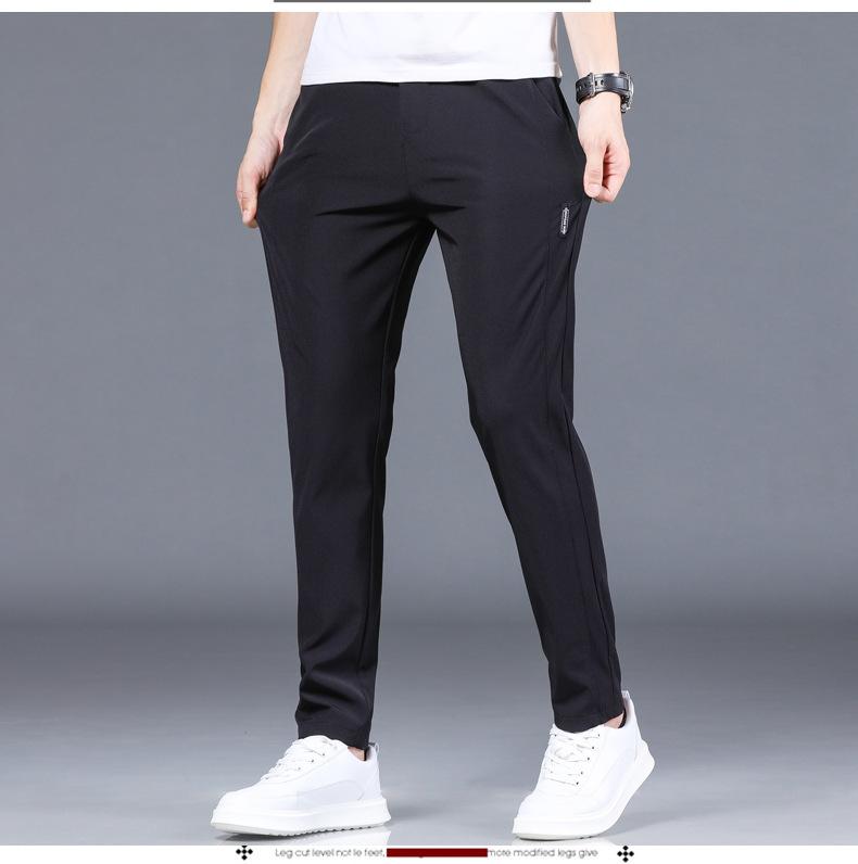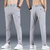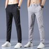 Pantalones Casuales Delgados de Verano 2024 de Secado Rápido para Hombre, Pantalones Deportivos, Cintura Elástica, Estilo Coreano, Modernos, Negros, Largos