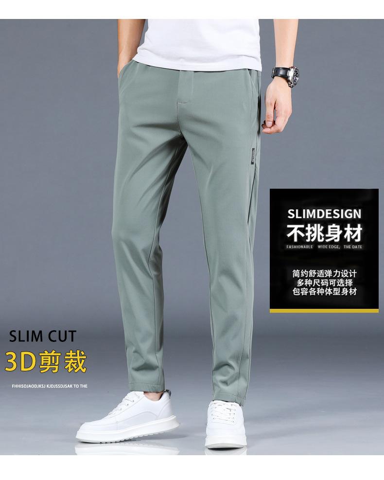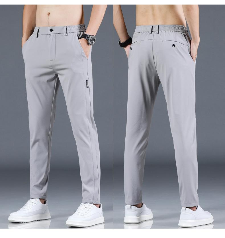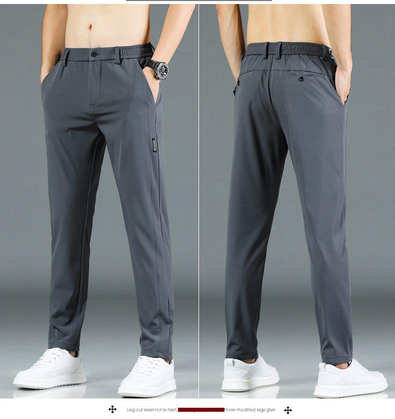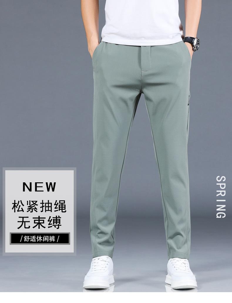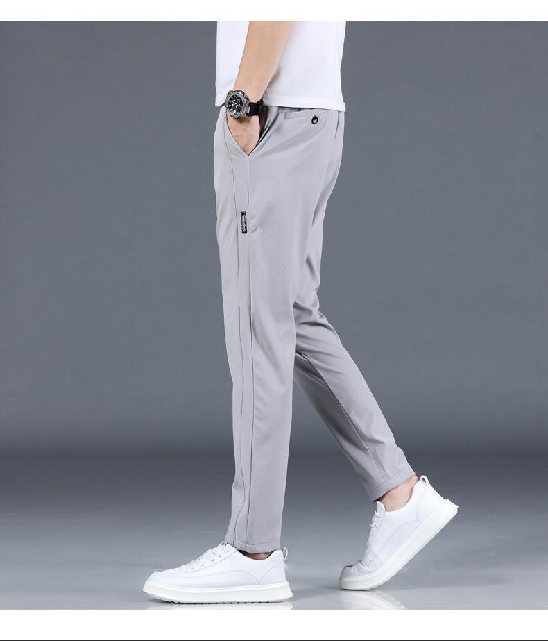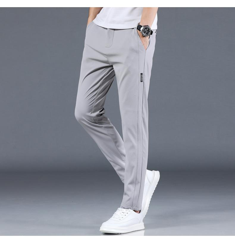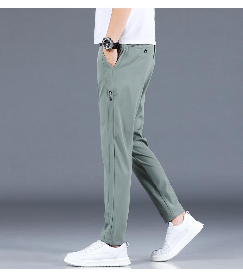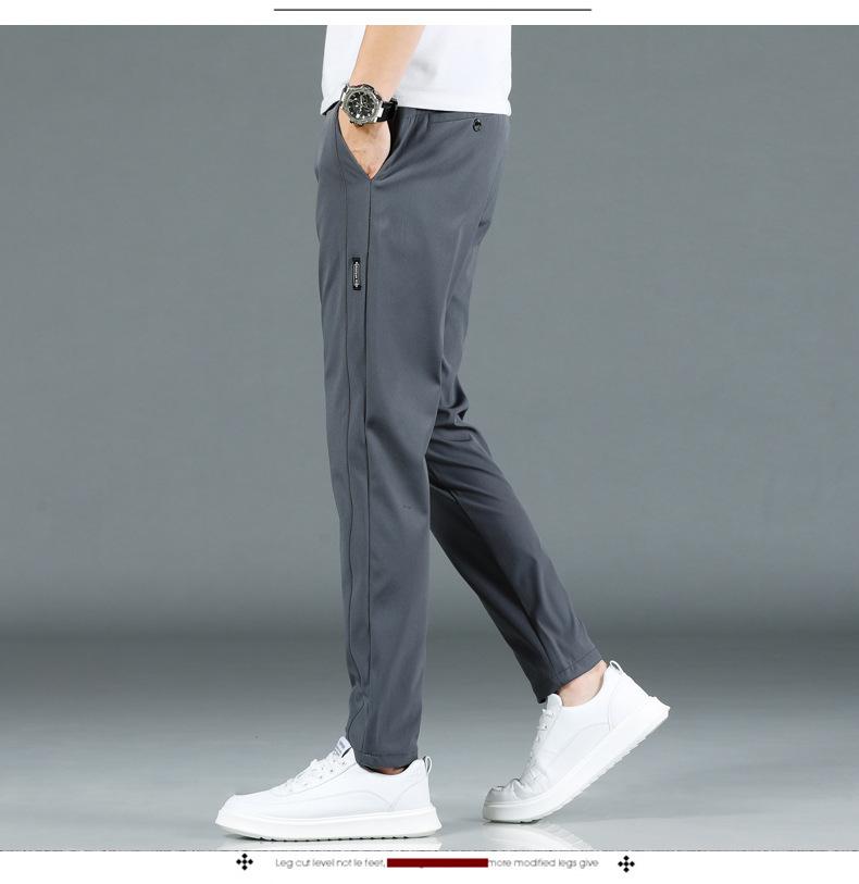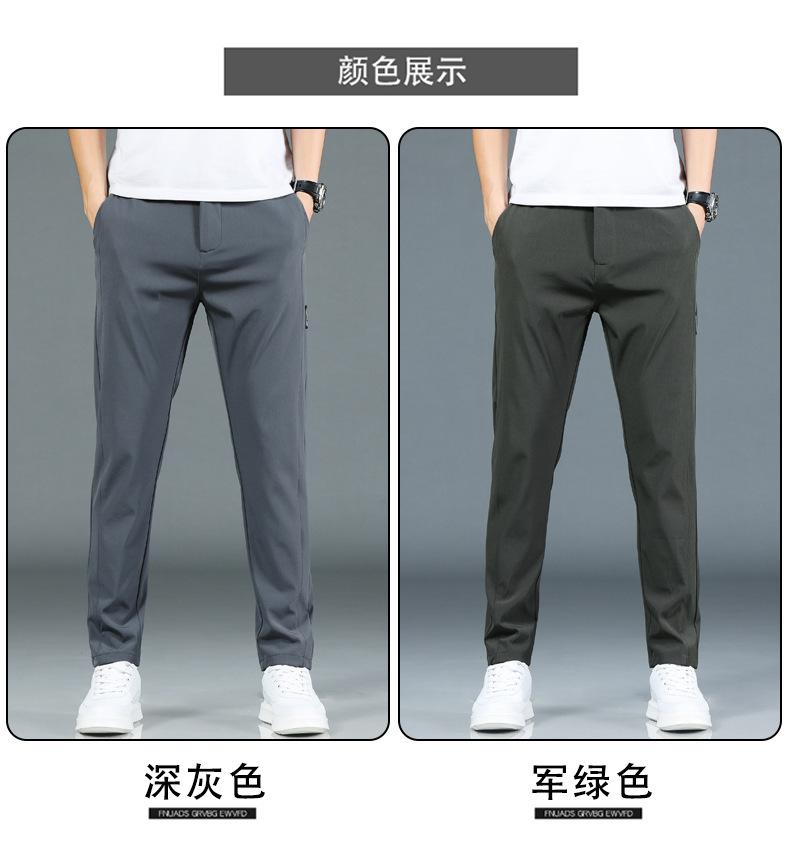 Pantalones Casuales Delgados de Verano 2024 de Secado Rápido para Hombre, Pantalones Deportivos, Cintura Elástica, Estilo Coreano, Modernos, Negros, Largos