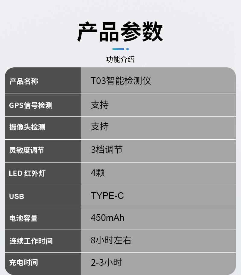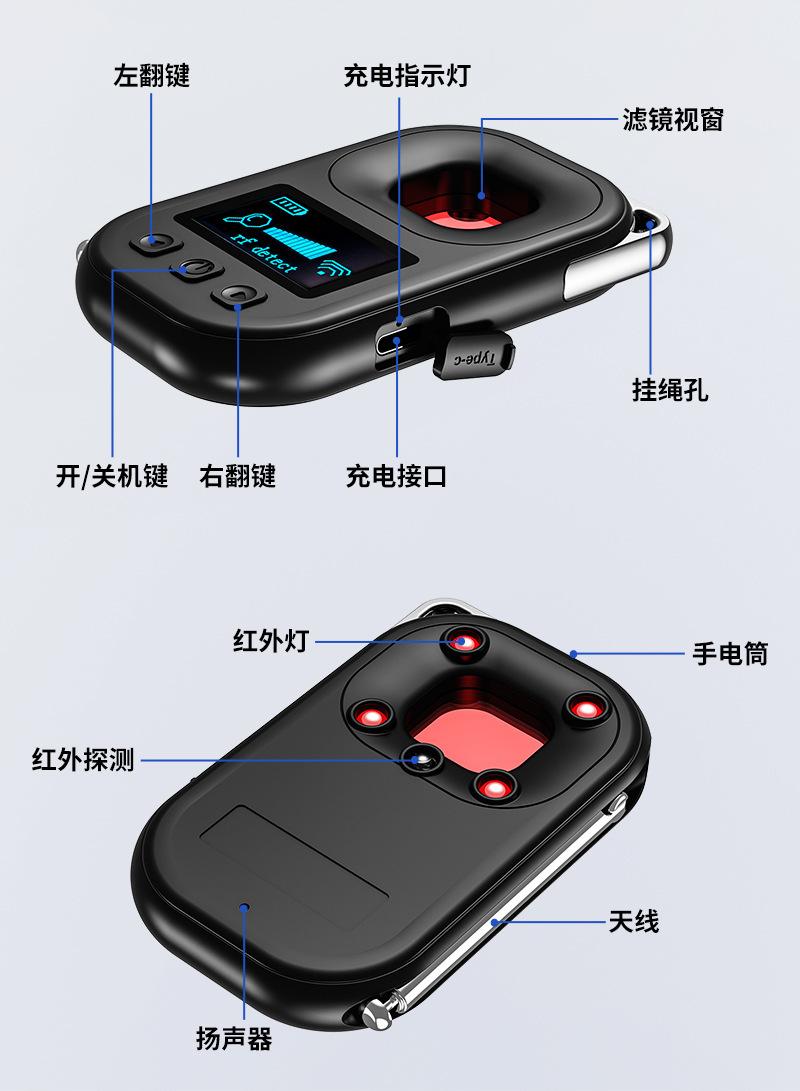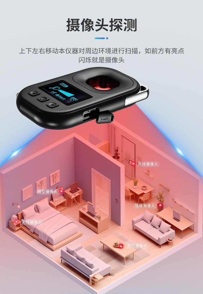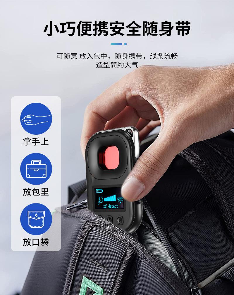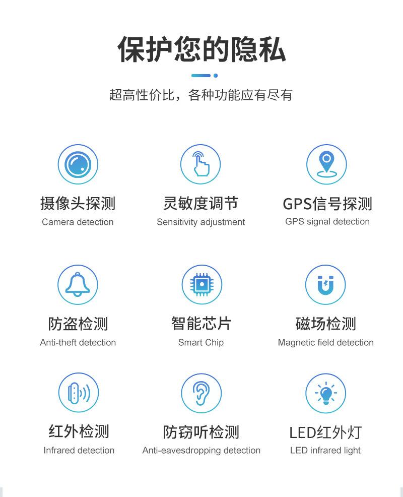 Detector de cámara multifunción con detección de señal magnética fuerte para registro de hotel, antidisparos furtivos, antiseguimiento y antiposicionamiento T011