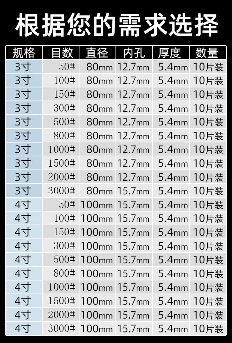 3 inch 50 mesh (10 pieces), 3 inch 100 mesh (10 pieces), 3 inch 150 mesh (10 pieces), 3 inch 300 mesh (10 piec...