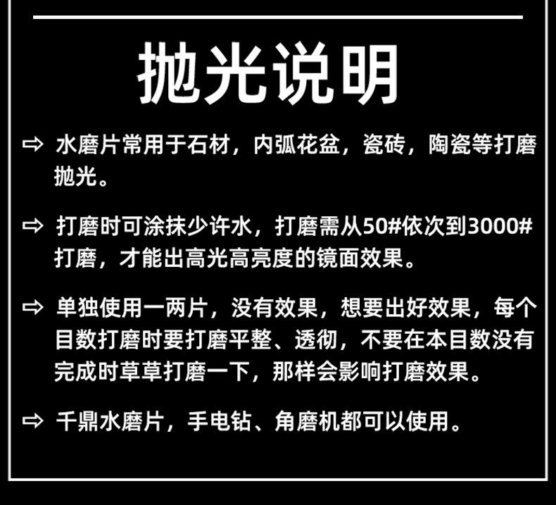 Hoja de pulido de agua de diamante, hoja de pulido de piedra, mármol, baldosas de granito, piedra de cuarzo, vidrio, máquina pulidora angular, hoja de pulido