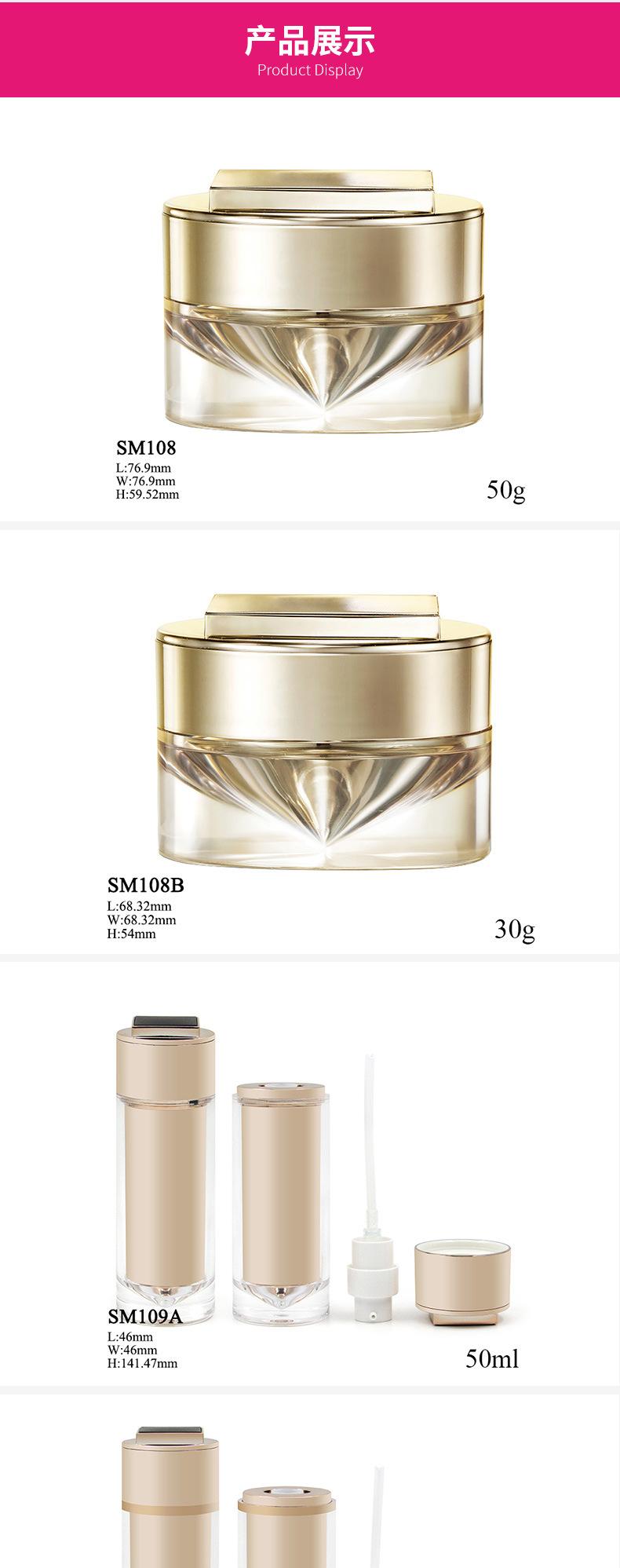 Botella acrílica para el cuidado de la piel, 30 g, 50 g, redonda, para crema, 50 ml, 70 ml, 100 ml, para loción a presión, material de embalaje.