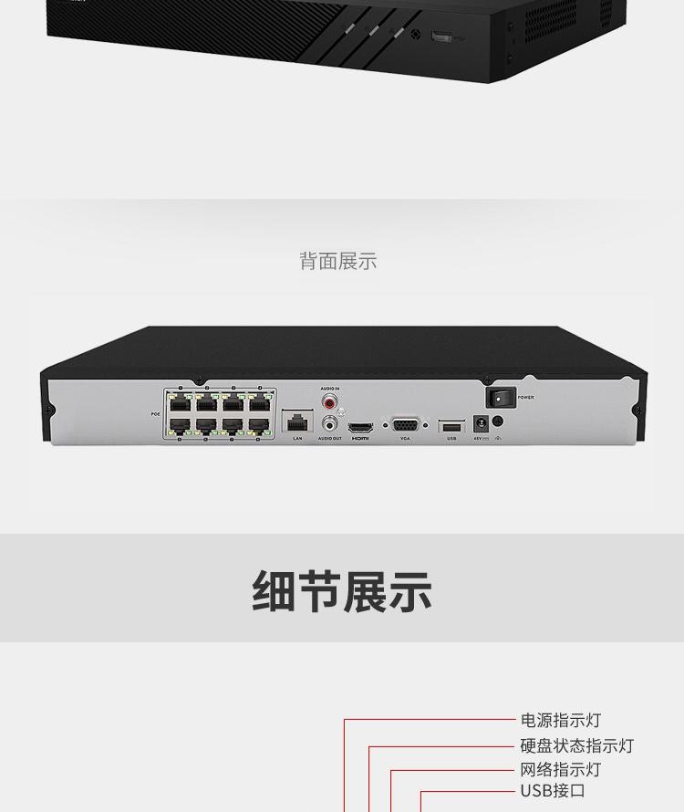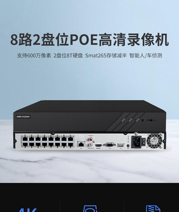 Grabador de video en disco duro de red Hikvision, NVR de 8 y 16 vías, host de monitoreo doméstico DS-7808N-Q2/8p