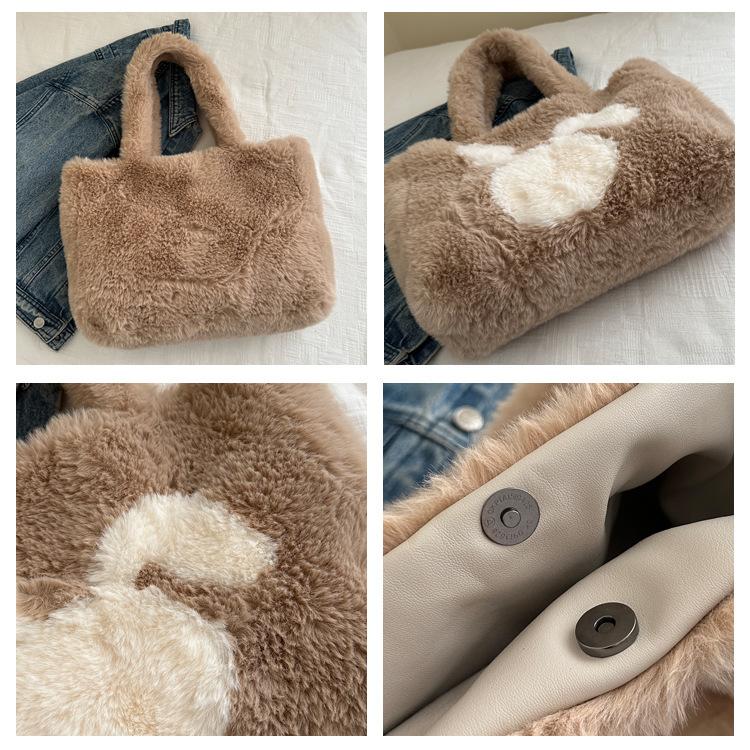 Compra Venta al por mayor transfronteriza 2024 nuevo otoño e invierno bolso Mao Mao bolso de hombro de dibujos animados bolso de felpa de gran capacidad bolso tote portátil suave al por mayor en Joom.pro