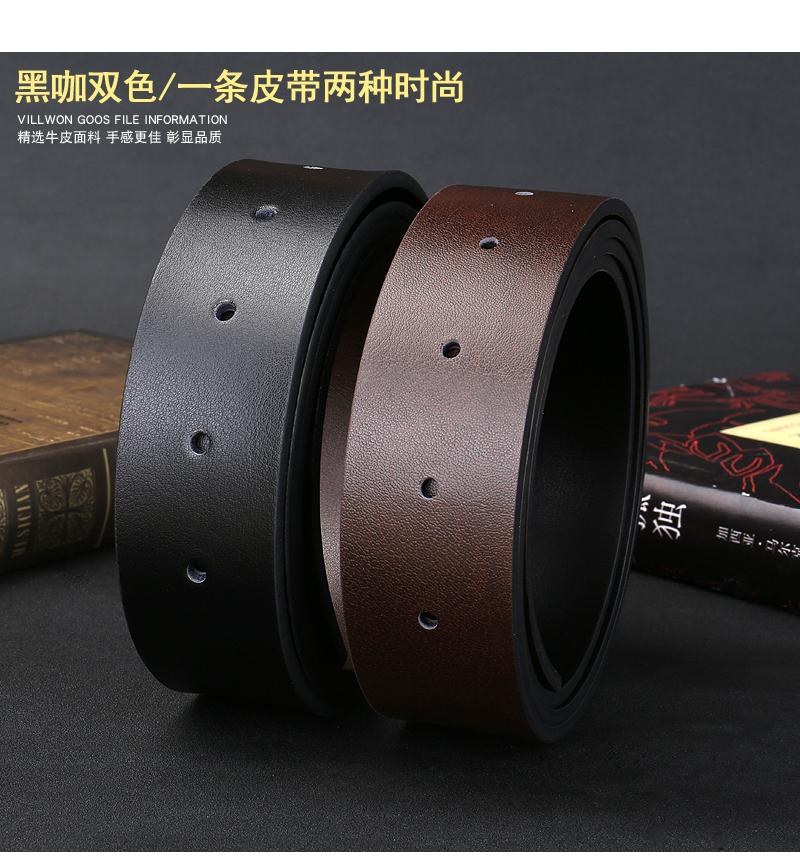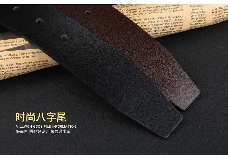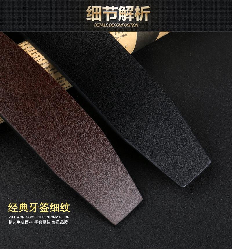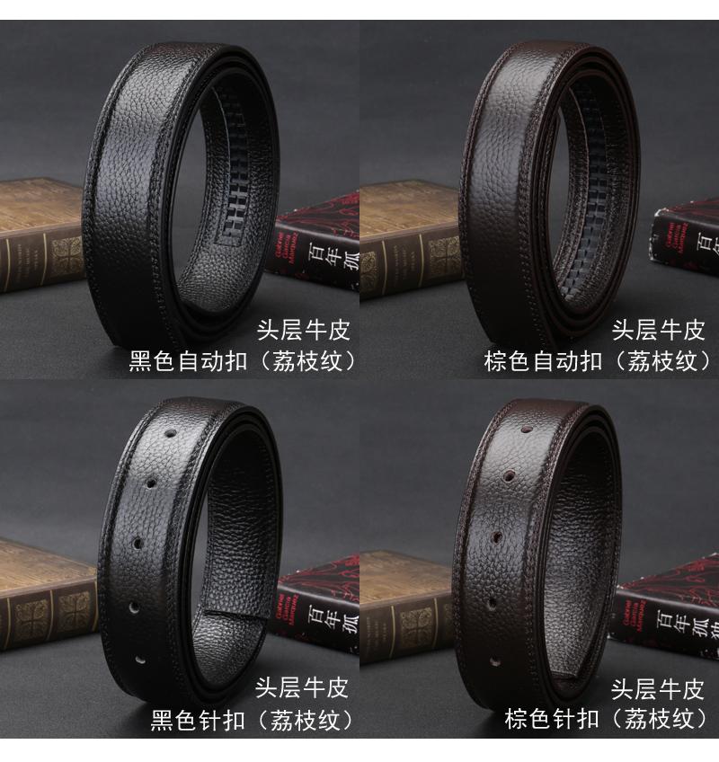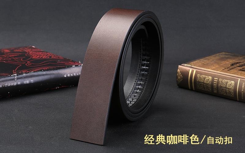 Cinturón sin cabeza para hombre, con hebilla automática y hebilla de pasador, de piel de vaca de una sola capa.