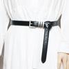 Cinturón para mujer de capa superior de piel de vaca pura, combinable con todo, negro, para jeans con nuevo anillo metálico, cinturón delgado