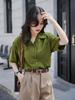 Camisa de manga corta a rayas azules estilo Hong Kong para mujer, nueva camisa de verano retro holgada que combina con todo, con un diseño de estilo urbano.
