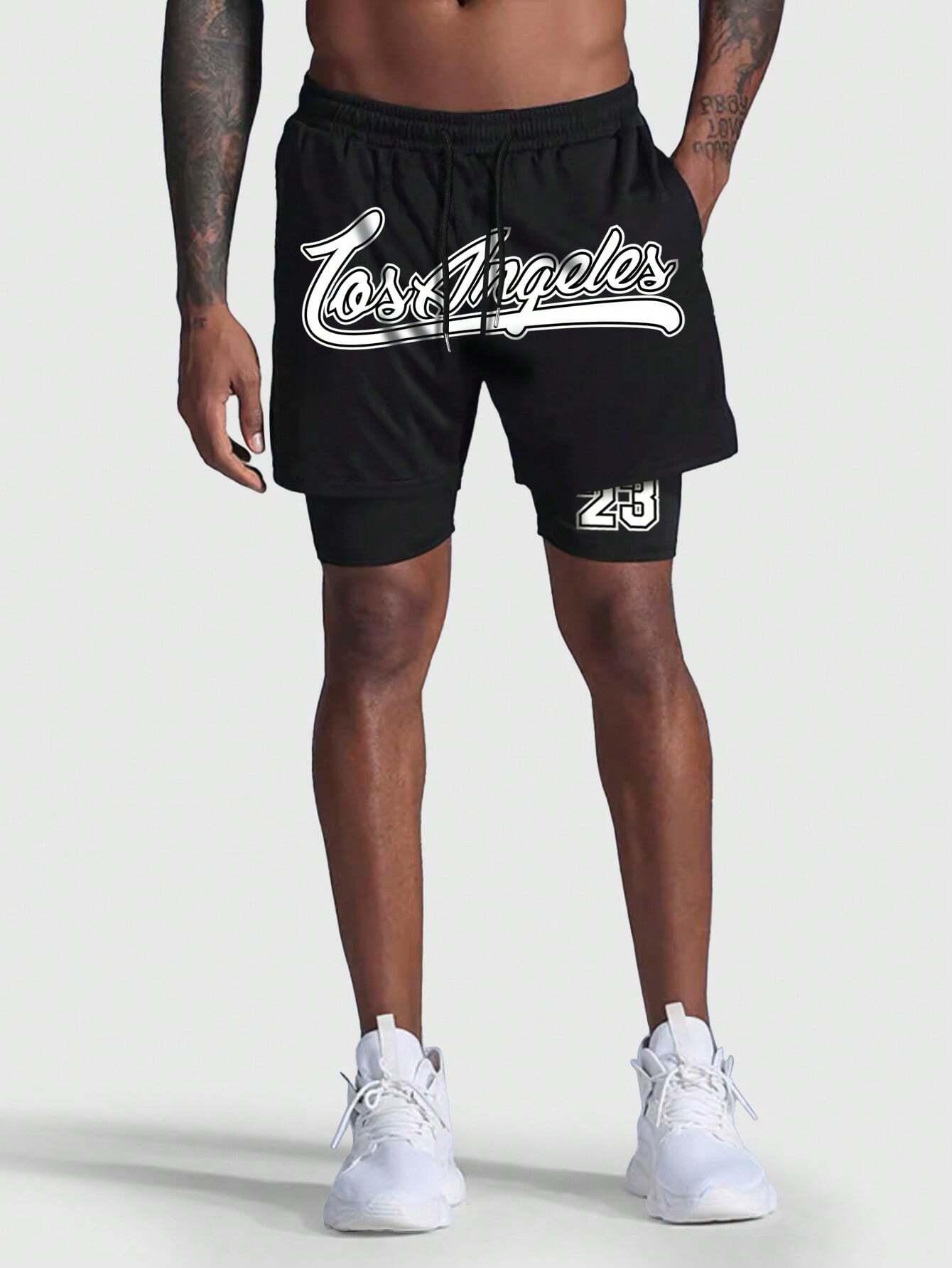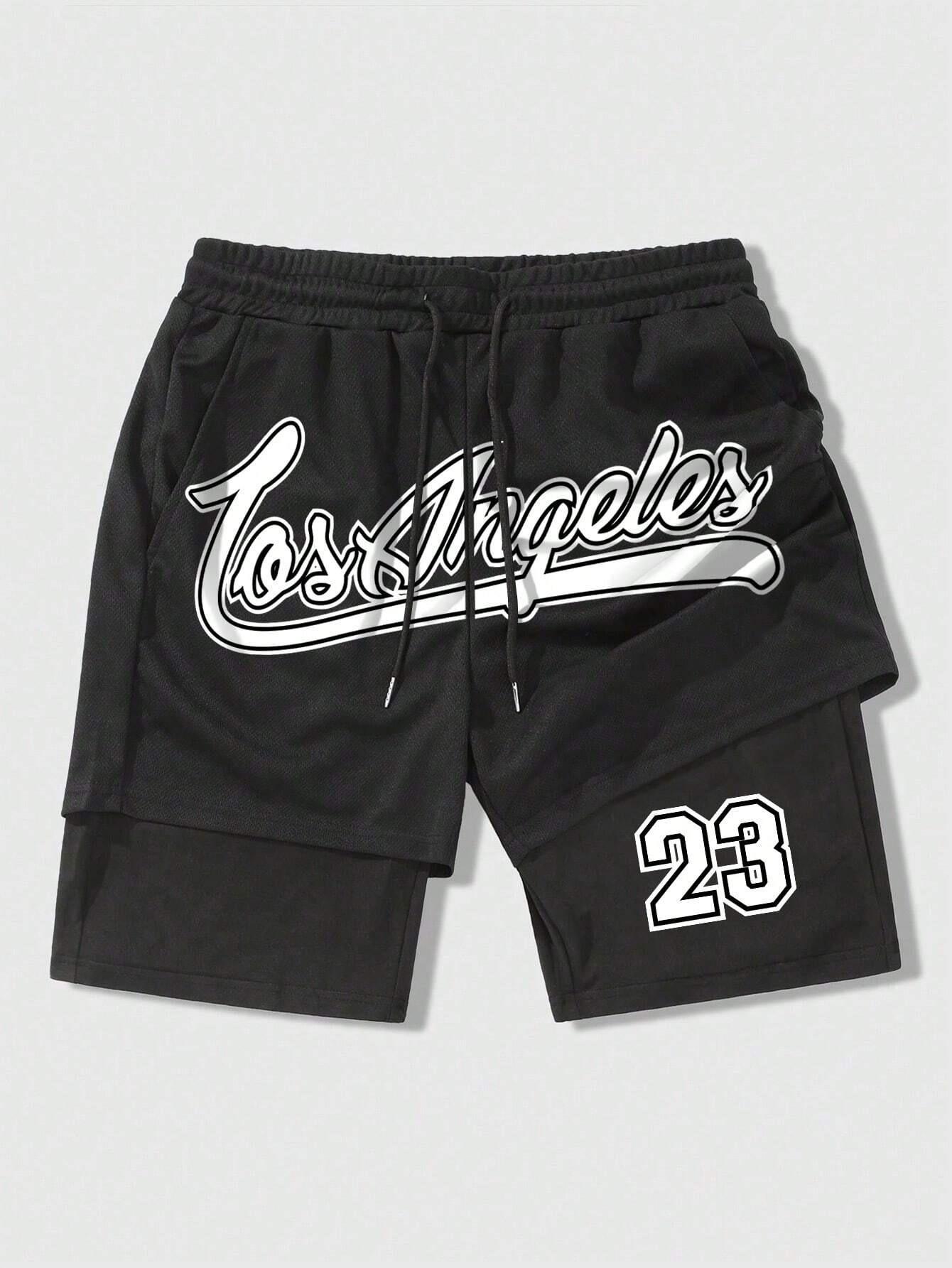 Shorts Americanos Holgados Casuales Deportivos Pantalones Personalizados Modernos Transfronterizos Europeos y Americanos Doble Capa Dos en Uno