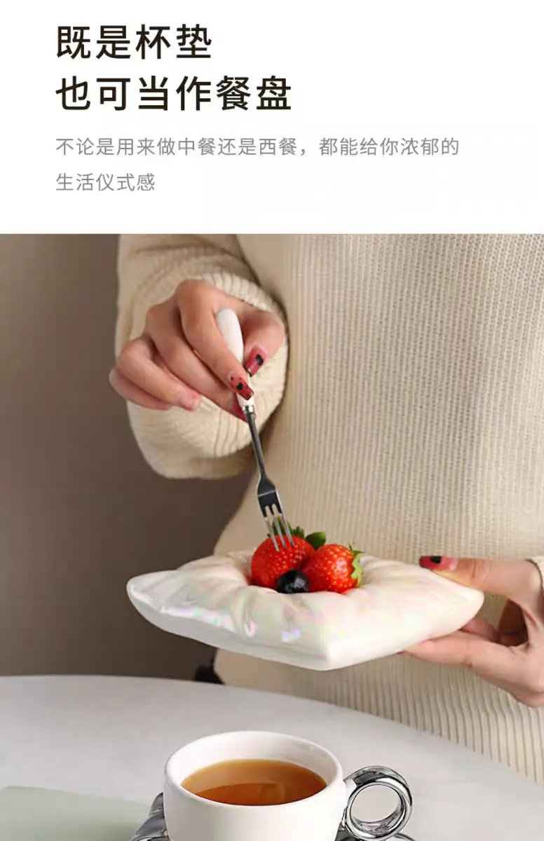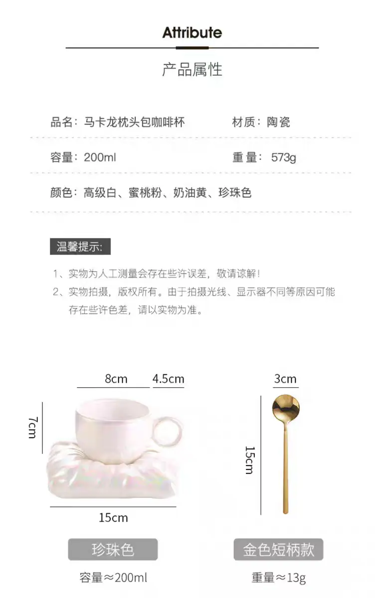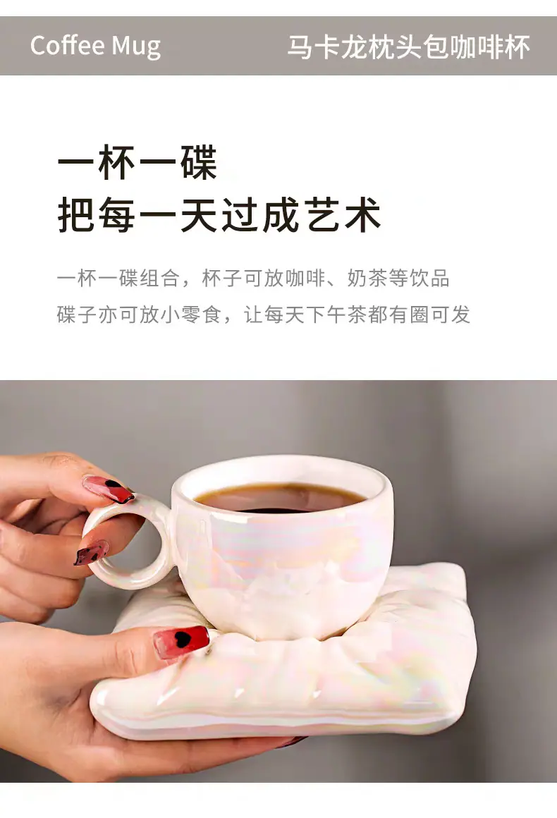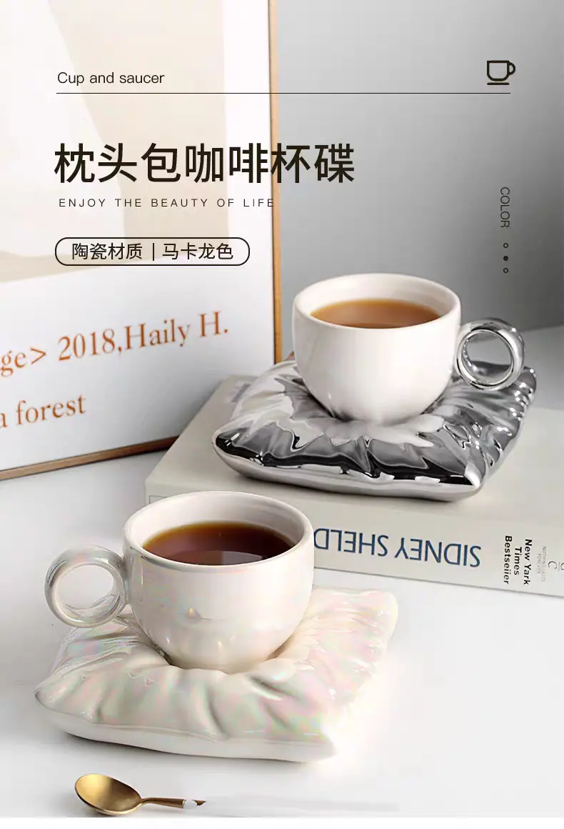 Soft pillow pearl white coffee cup and saucer, Soft pillow peach pink coffee cup and saucer, Soft pillow cream...
