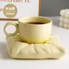Soft pillow cream yellow coffee cup and saucer