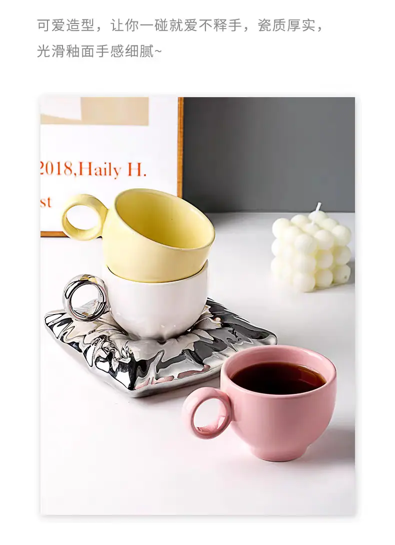 Compra Juego de tazas de café ins, regalo creativo y bonito para niña, taza de cerámica, taza de agua para el hogar, taza de té, regalo al por mayor en Joom.pro