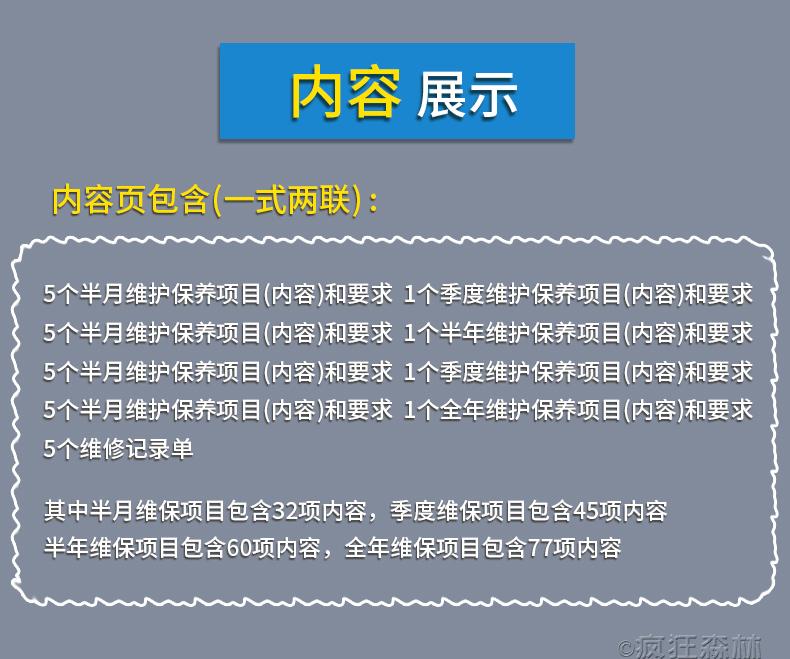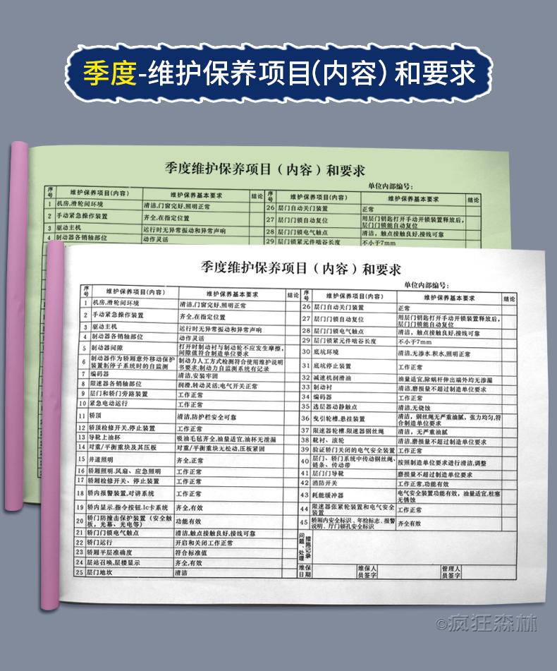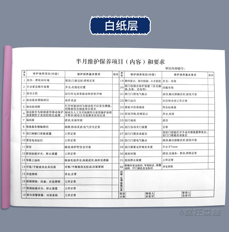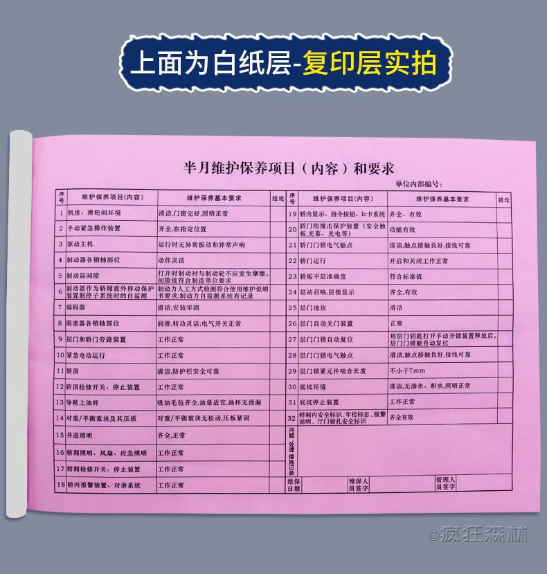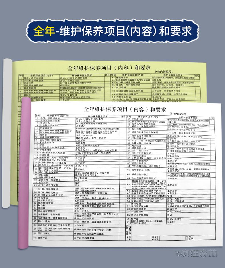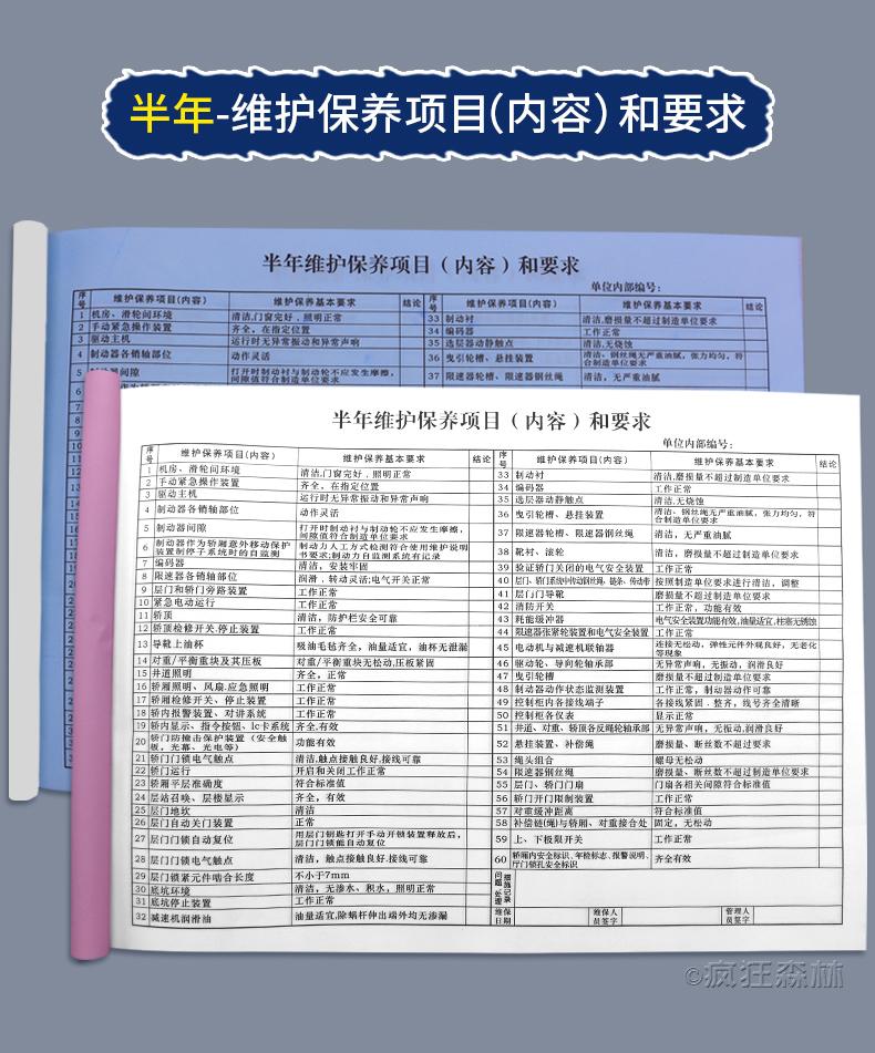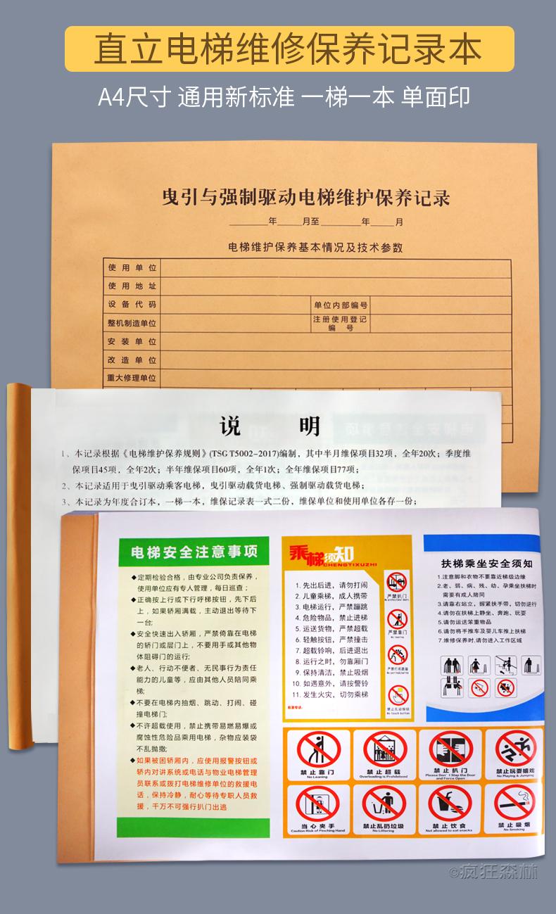 Upright elevator maintenance record book (one ladder)-5 pieces