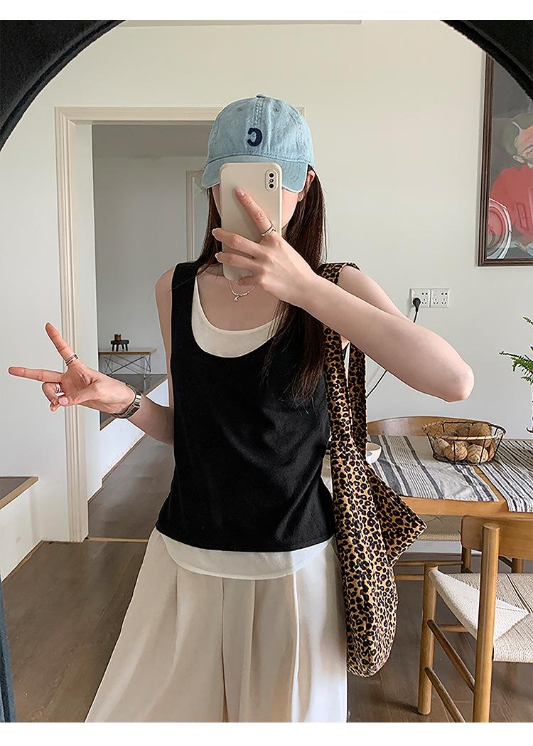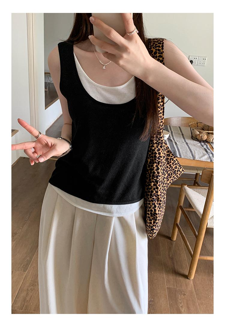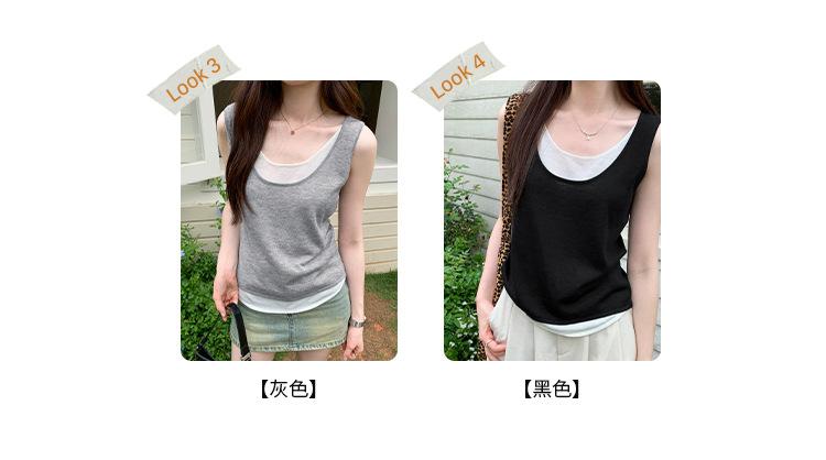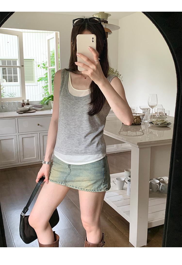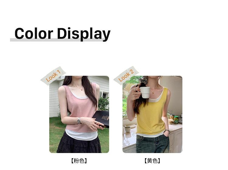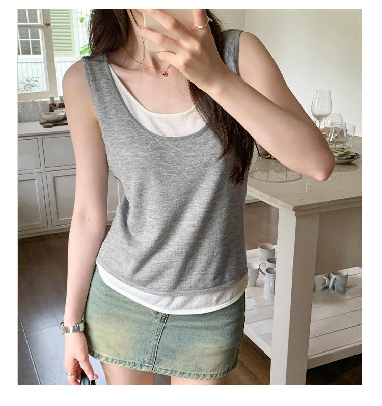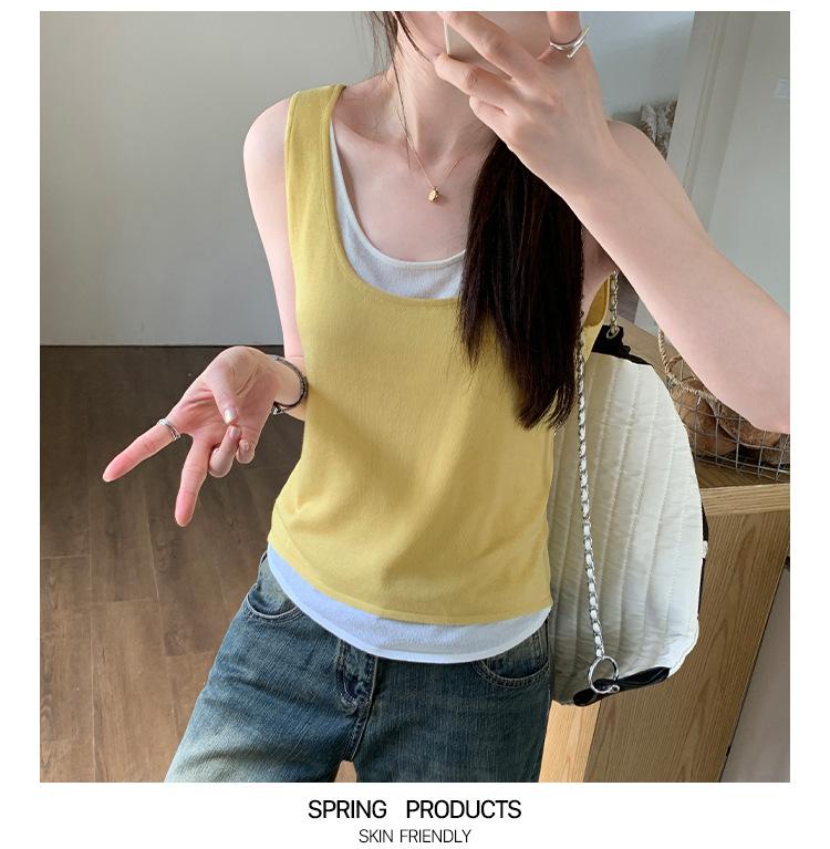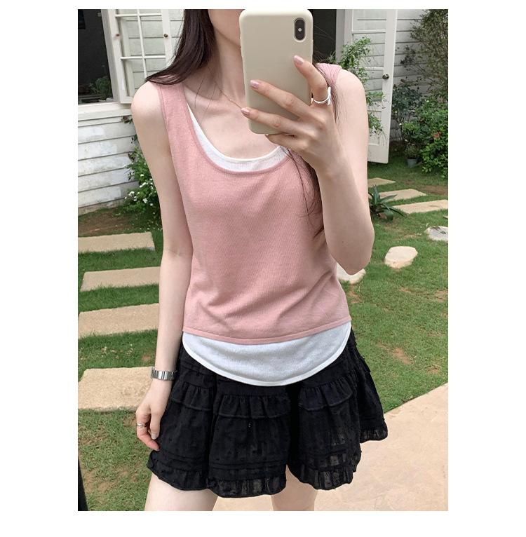 Chaleco de Diseño Falso de Dos Piezas en Forma de I para Mujer Estilo Coreano 2025 Verano Nuevo Ropa Exterior sin Mangas Top Sexy Francés