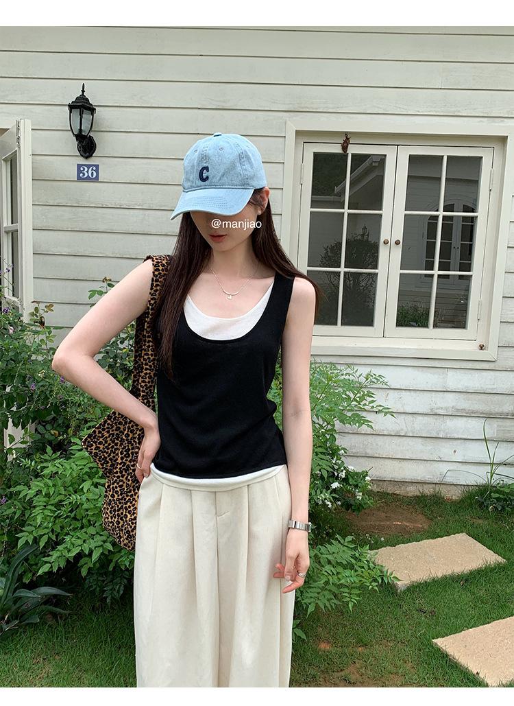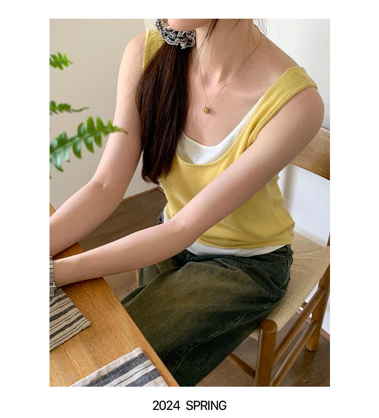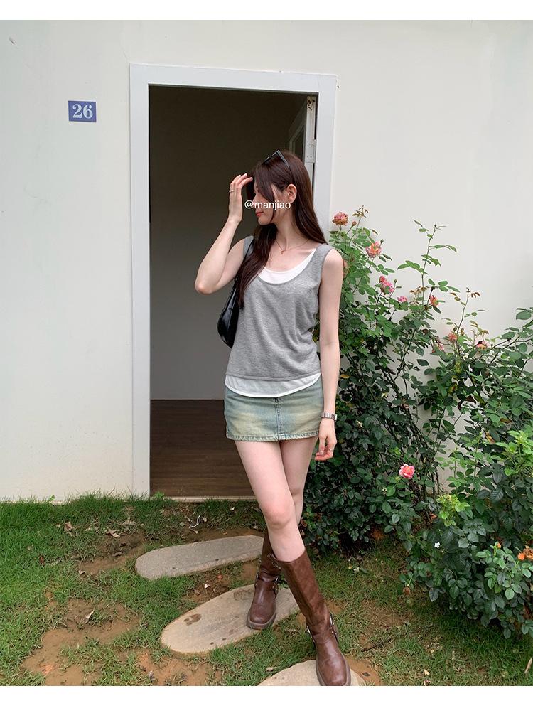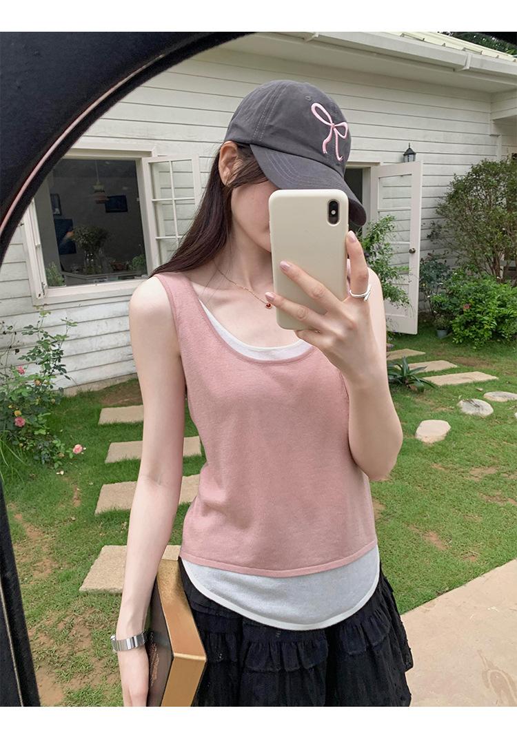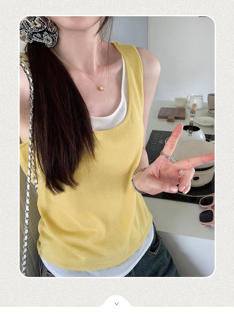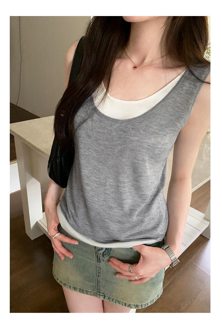 Chaleco de Diseño Falso de Dos Piezas en Forma de I para Mujer Estilo Coreano 2025 Verano Nuevo Ropa Exterior sin Mangas Top Sexy Francés