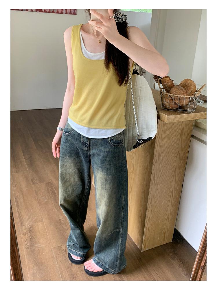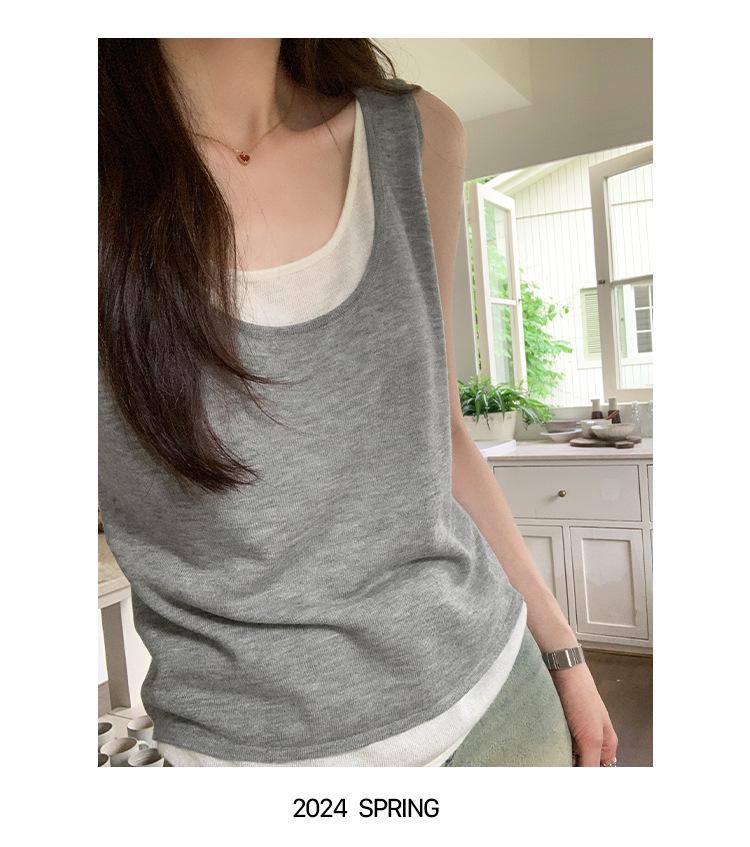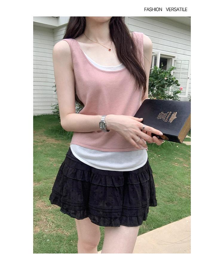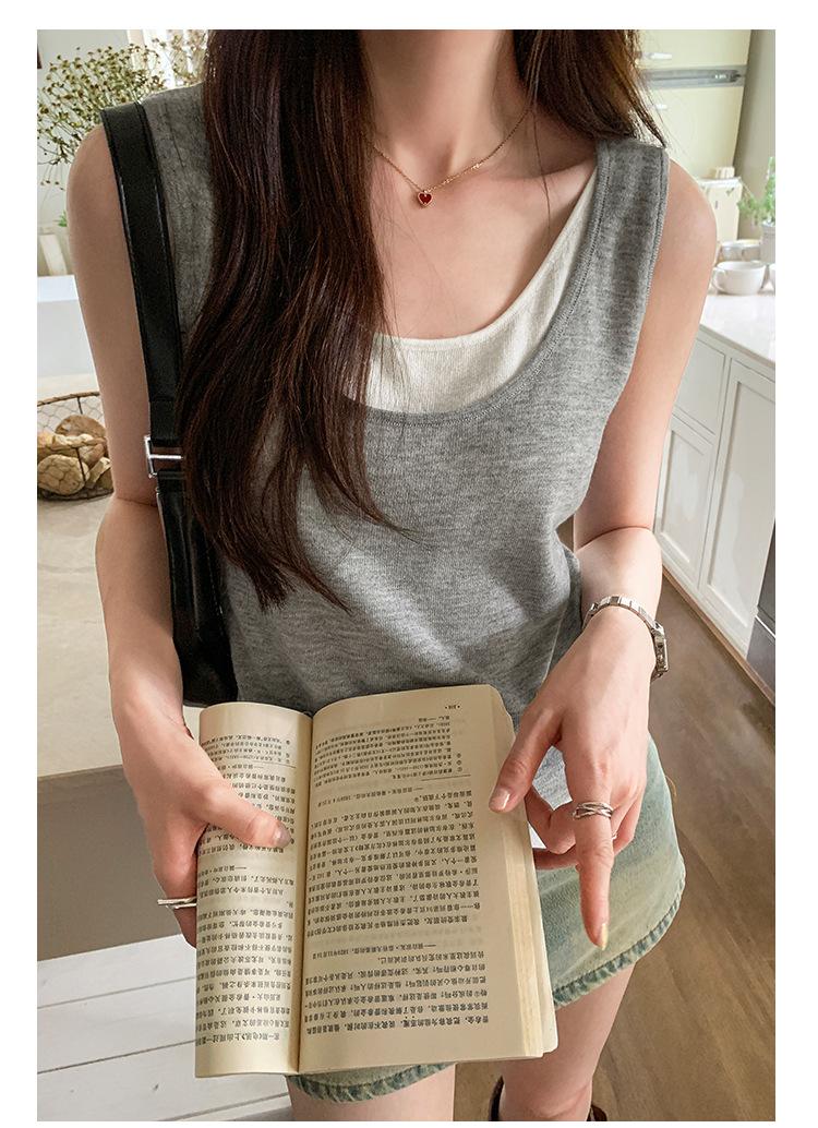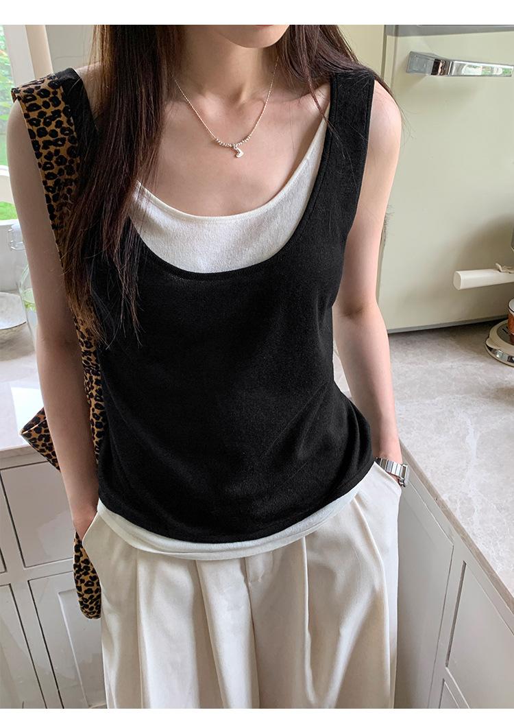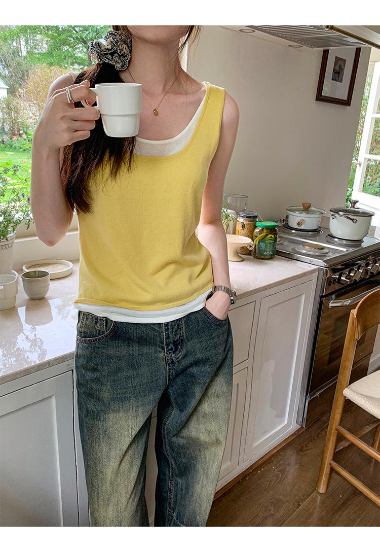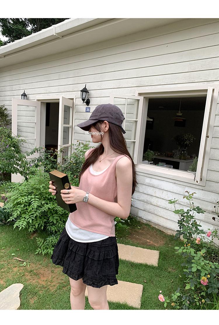 Chaleco de Diseño Falso de Dos Piezas en Forma de I para Mujer Estilo Coreano 2025 Verano Nuevo Ropa Exterior sin Mangas Top Sexy Francés