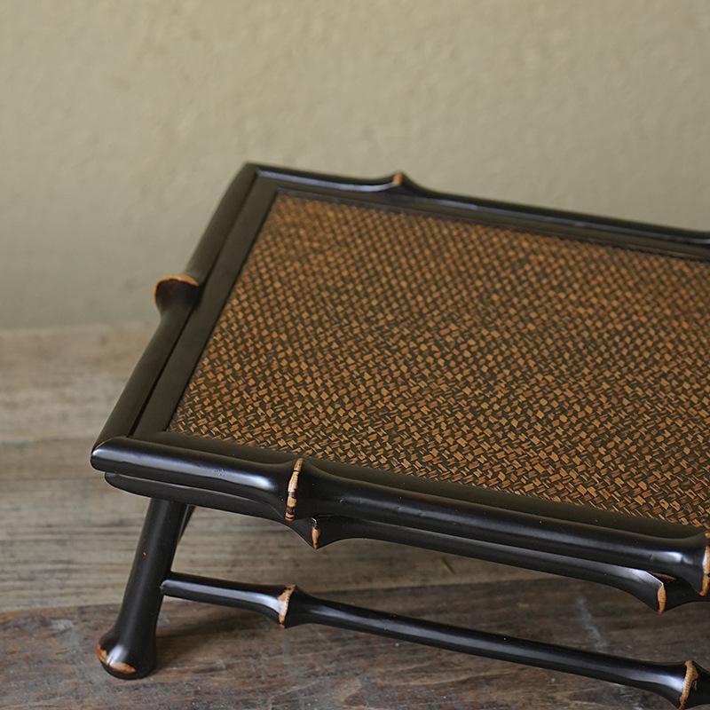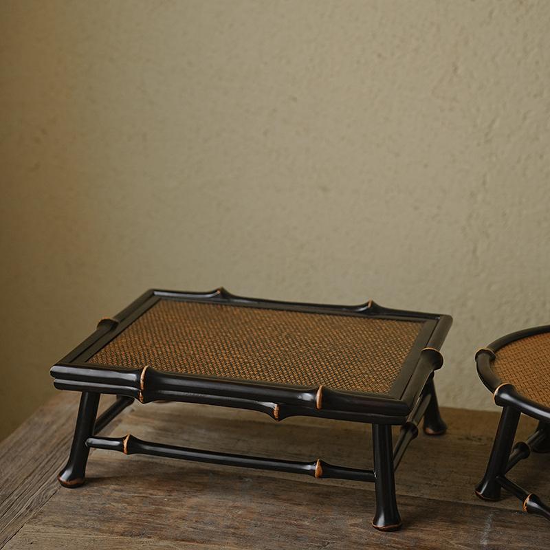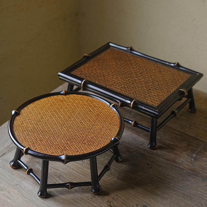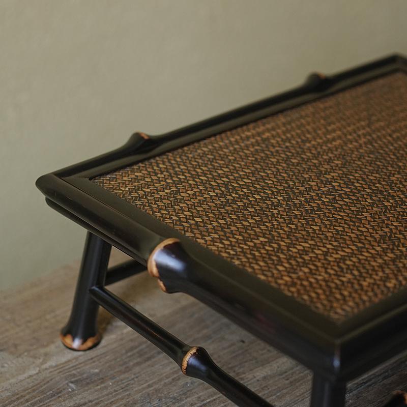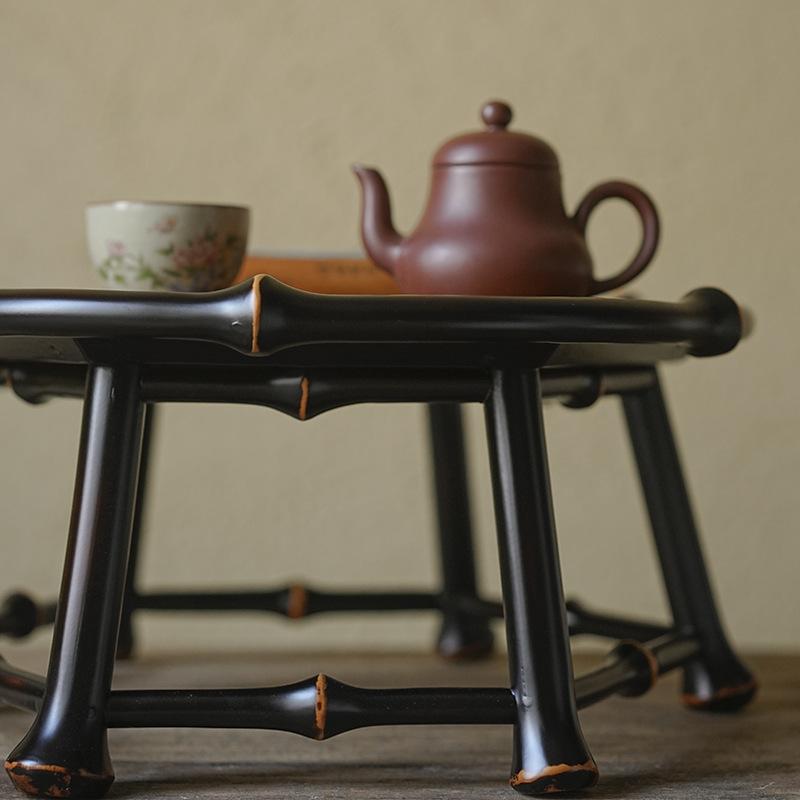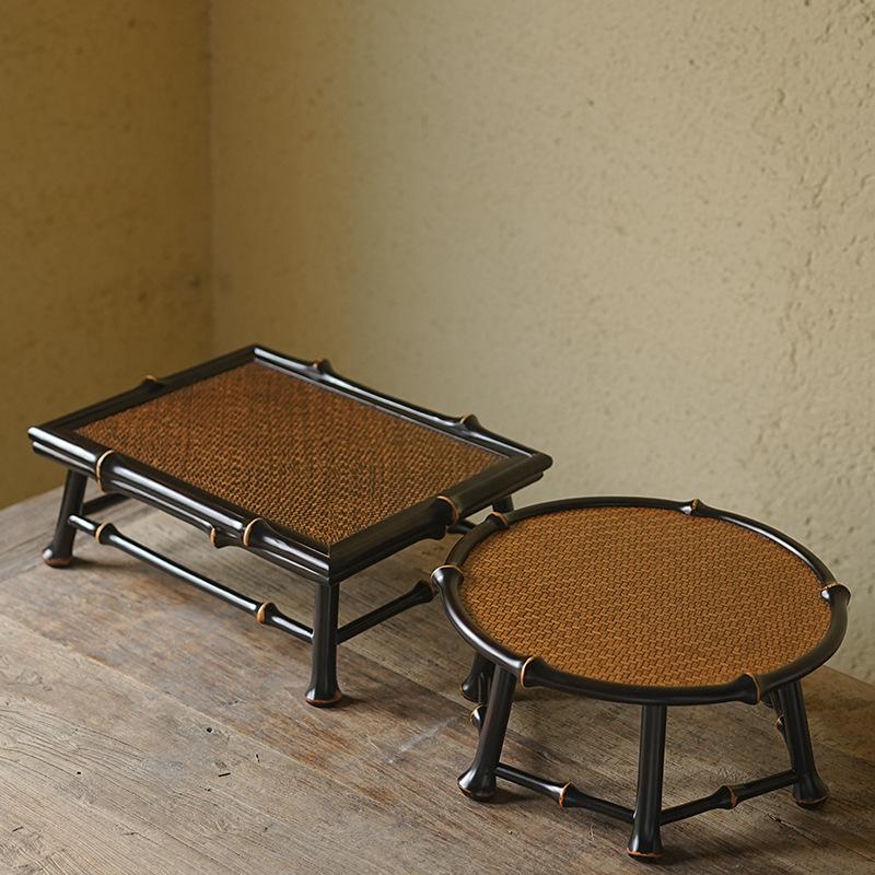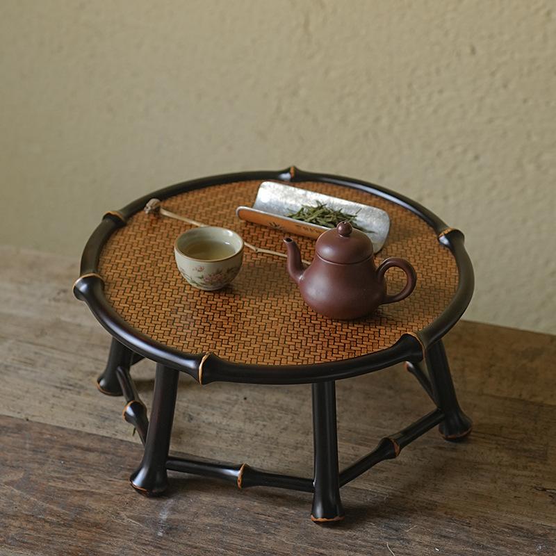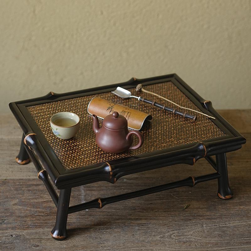 Mesa de té pequeña de bambú estilo zen hecha a mano de estilo chino, mesa de té con ventana salediza, bandeja de té Qiongzhu, mesa baja, mesa de té, bandeja de burbujas secas