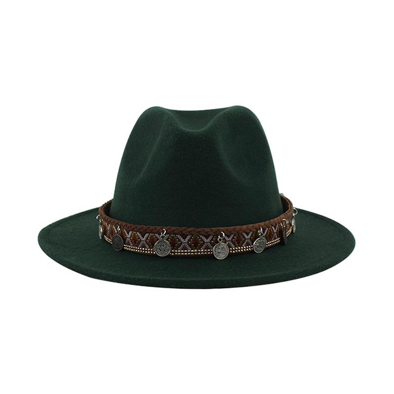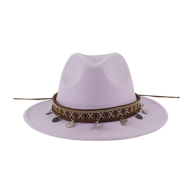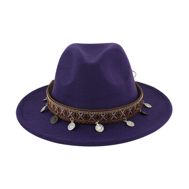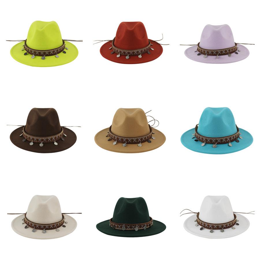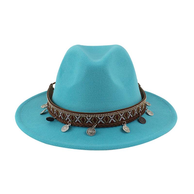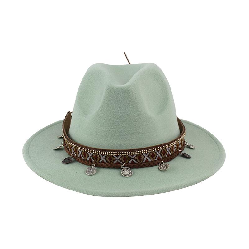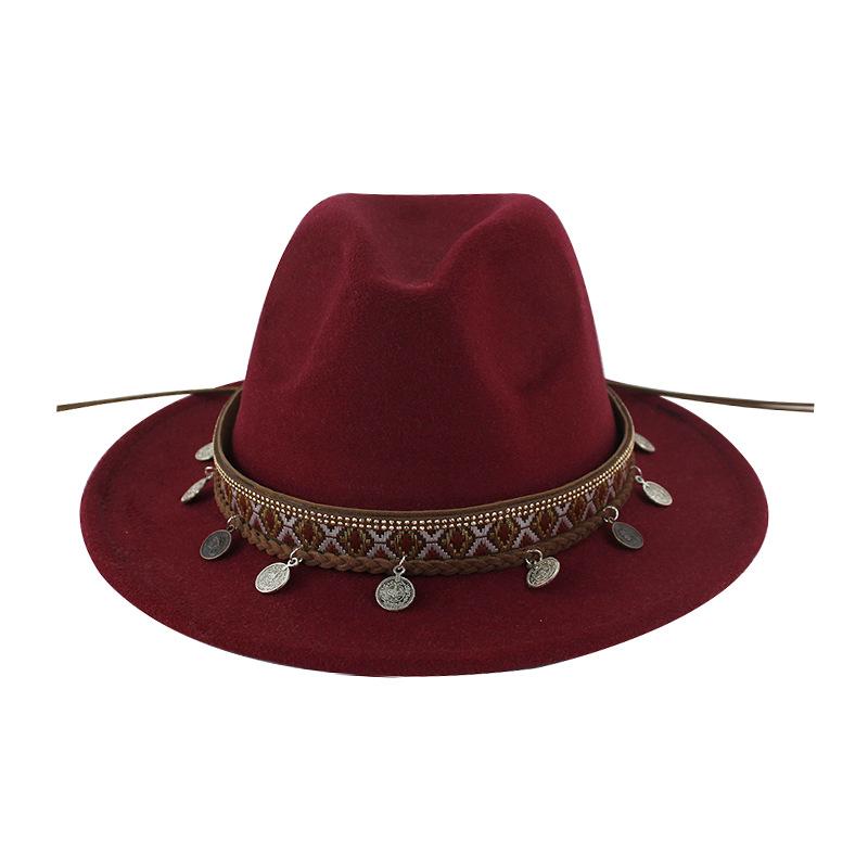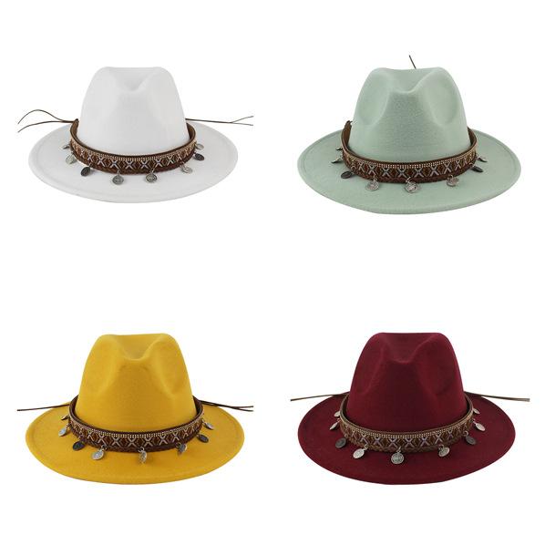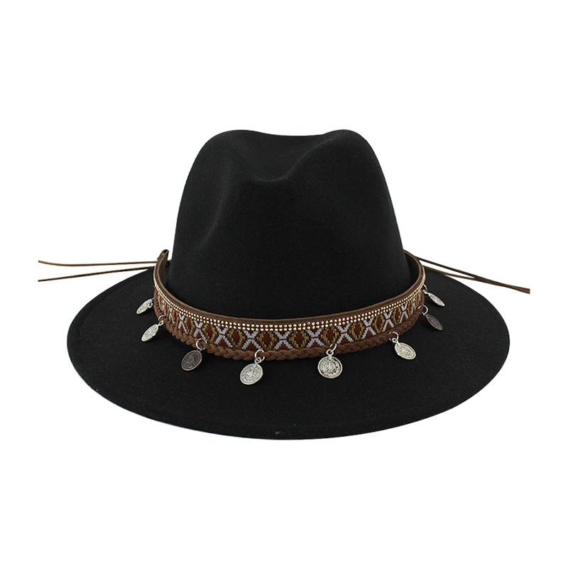 Sombrero de Lana Xizang Sombrero Nuevo de Otoño e Invierno Sombrero de Jazz Exótico Sombrero Decorativo con Cinta de Ala Plana para Hombres y Mujeres