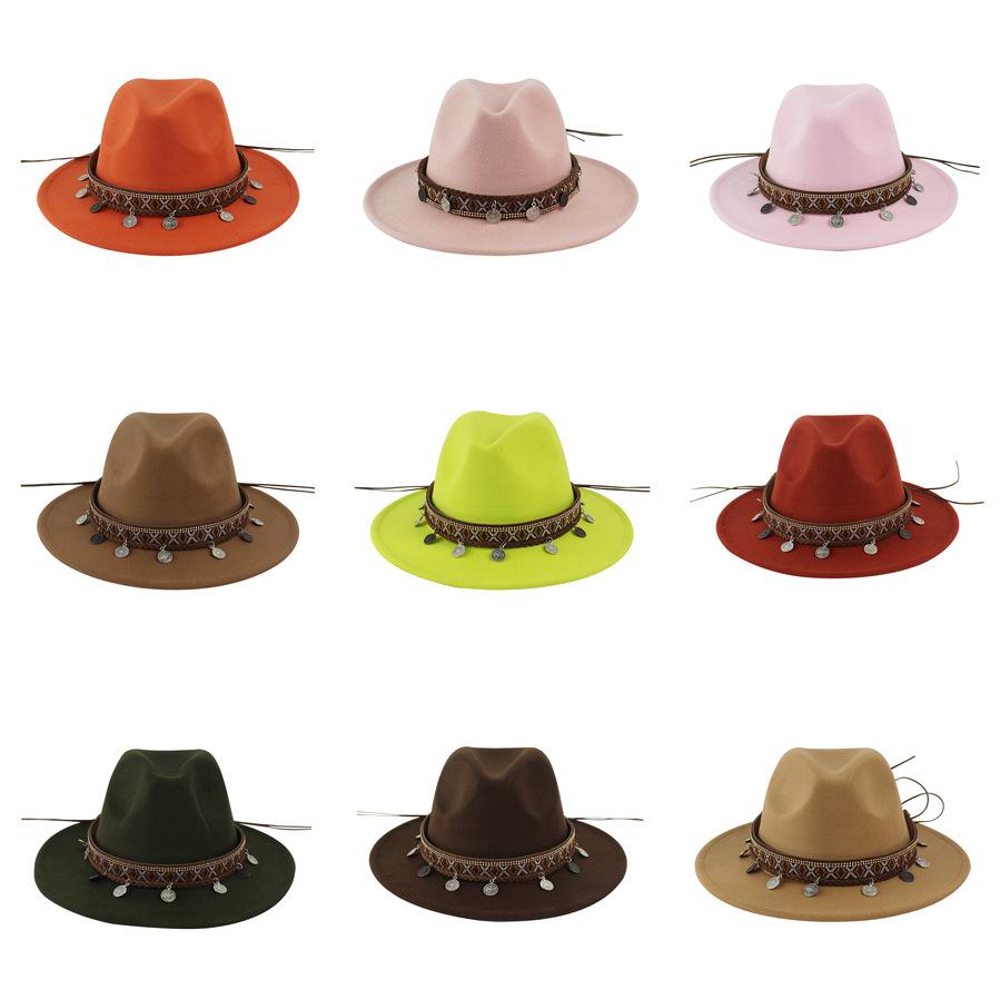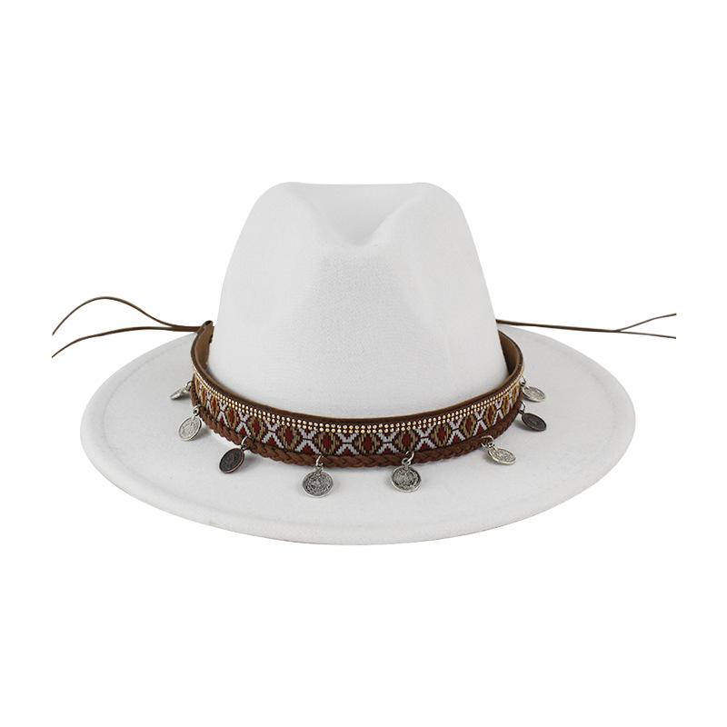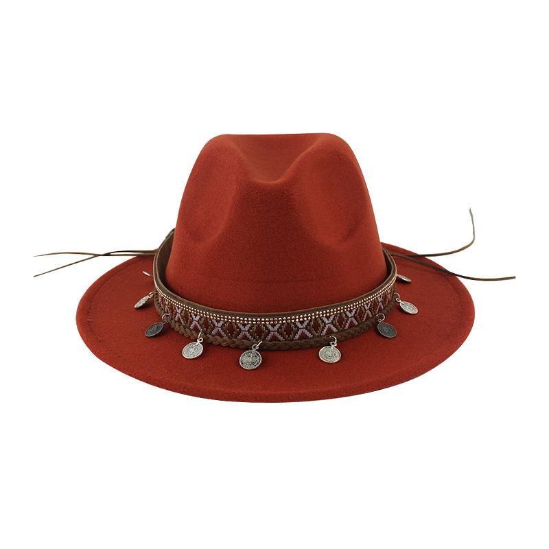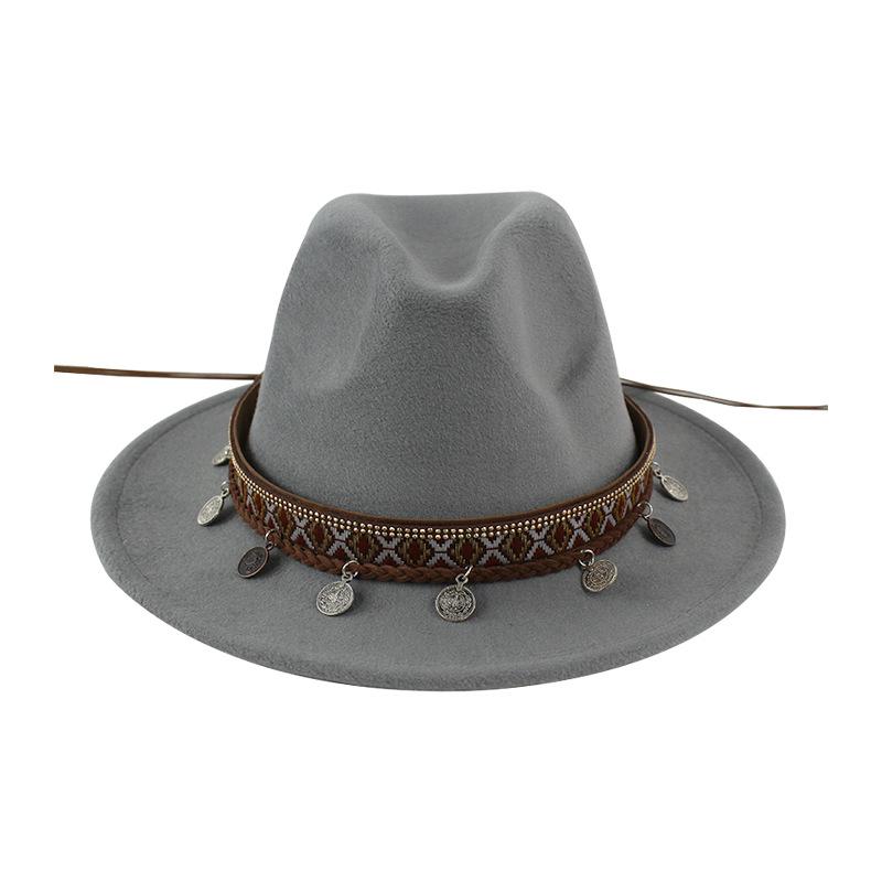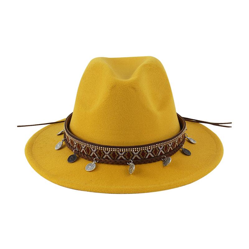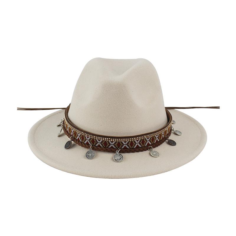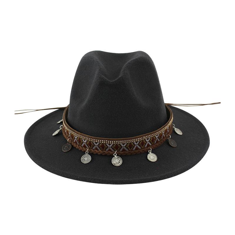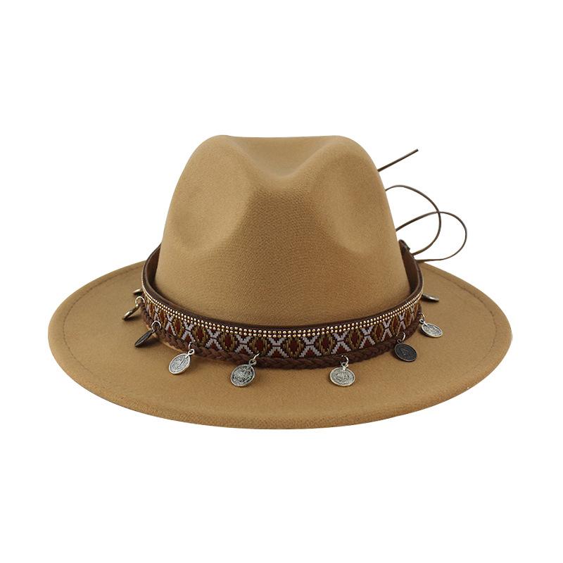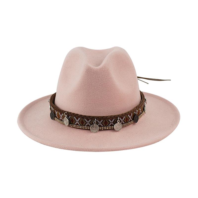 Sombrero de Lana Xizang Sombrero Nuevo de Otoño e Invierno Sombrero de Jazz Exótico Sombrero Decorativo con Cinta de Ala Plana para Hombres y Mujeres