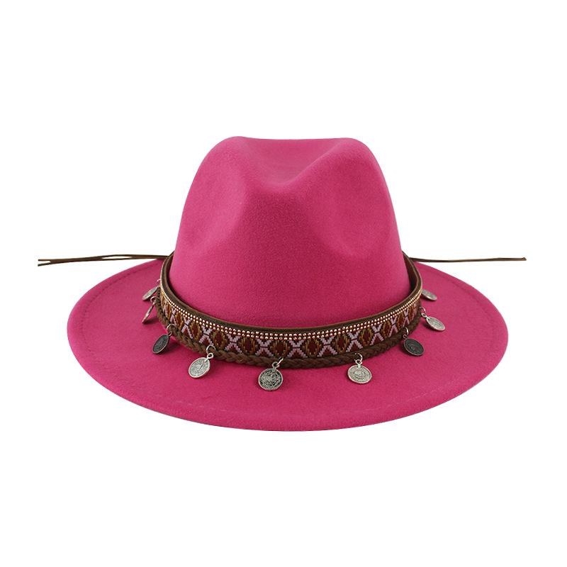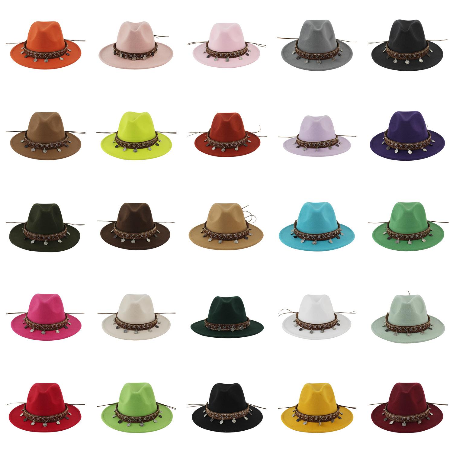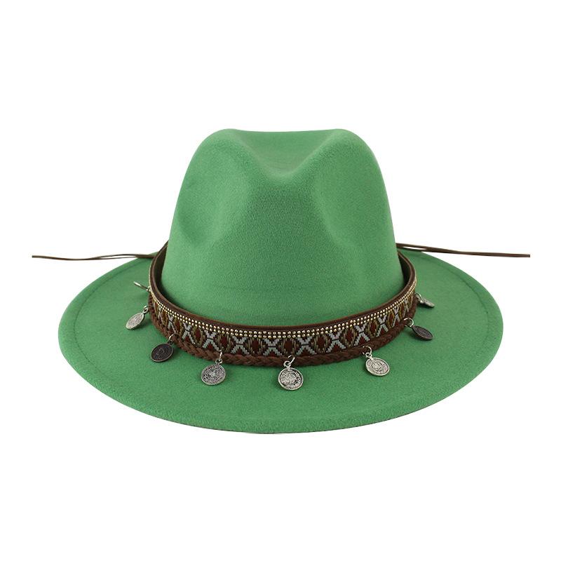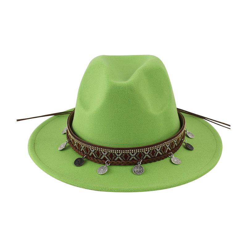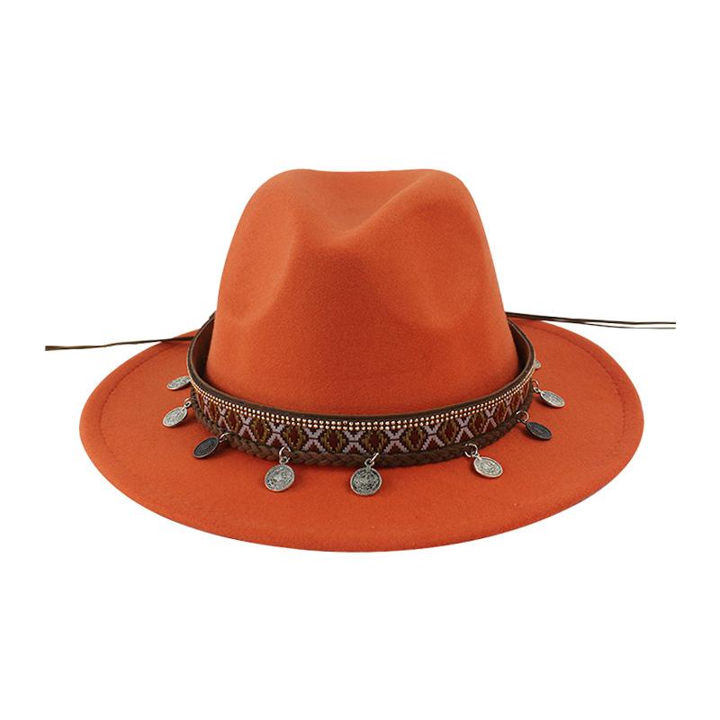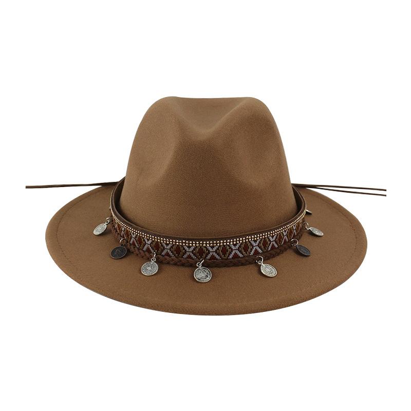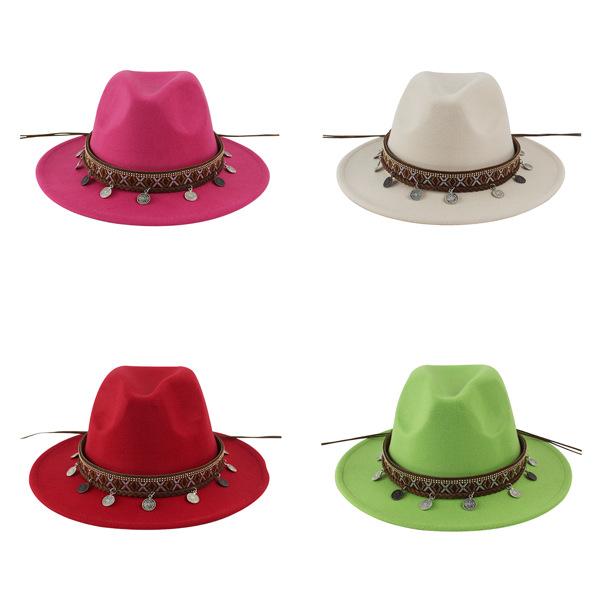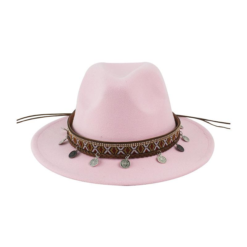 Sombrero de Lana Xizang Sombrero Nuevo de Otoño e Invierno Sombrero de Jazz Exótico Sombrero Decorativo con Cinta de Ala Plana para Hombres y Mujeres