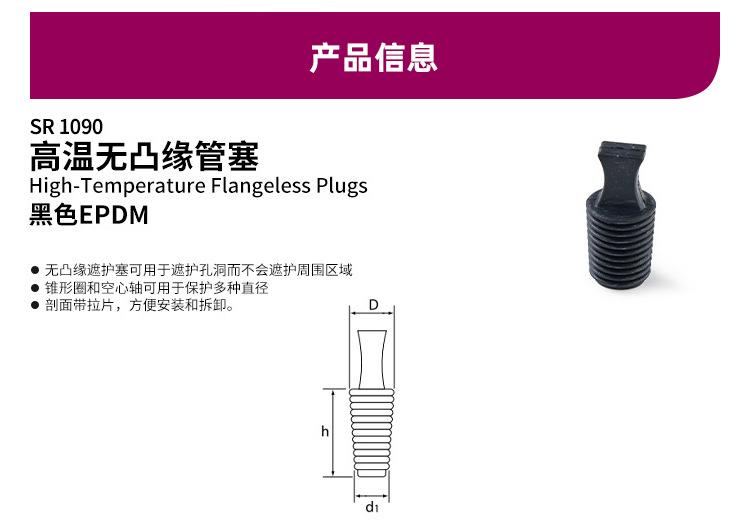 Tapón de tubería sin brida para alta temperatura, espiral convexo de caucho negro para sublimación ESSENTRA/SR 1090