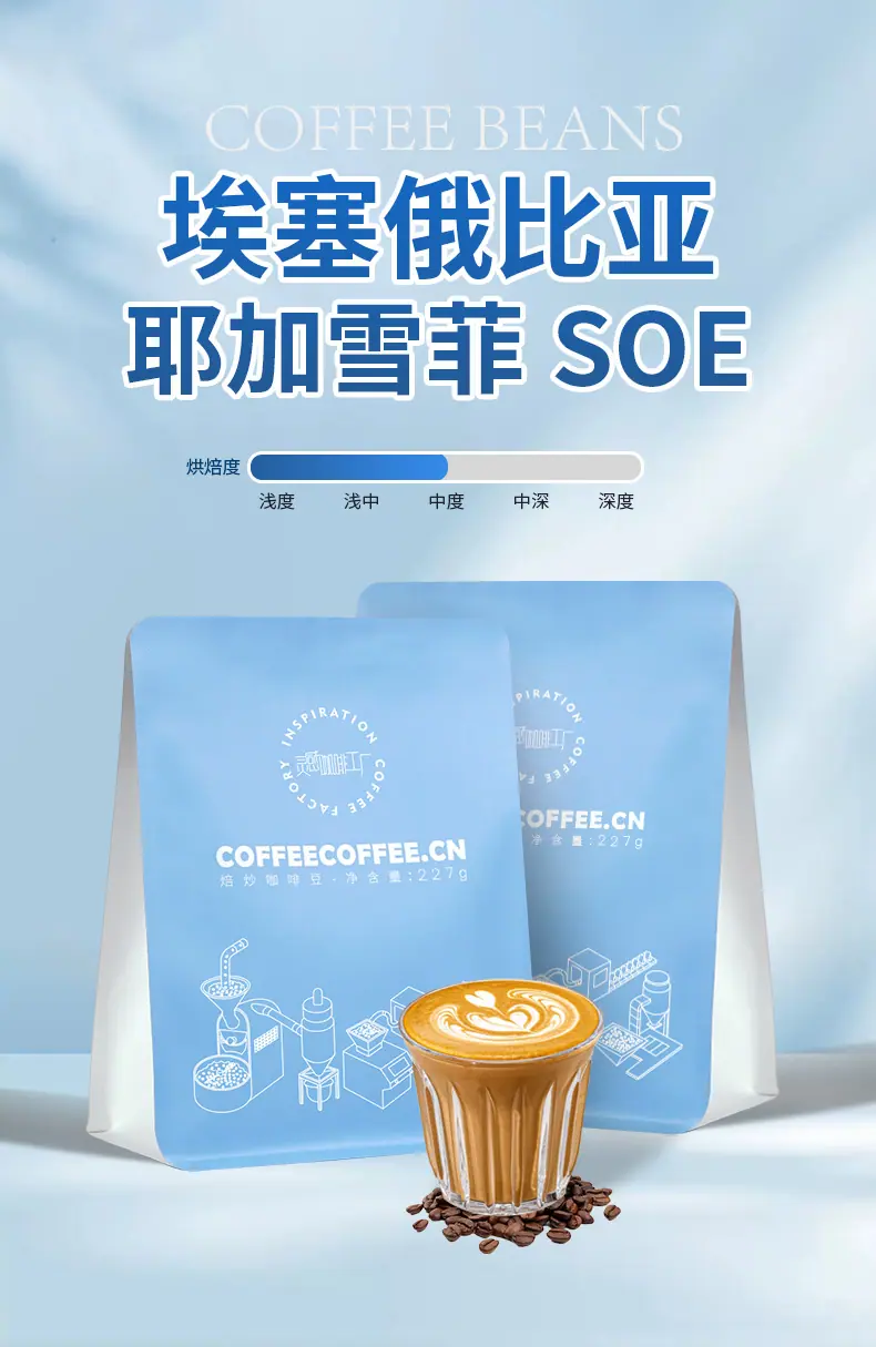 Etiopía SOE Yejia Xuefei tratamiento lavado café tostado medio cafetería granos de café italianos 227g