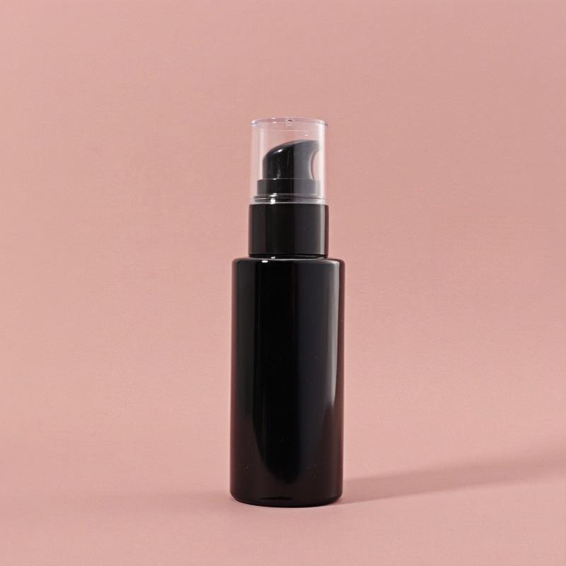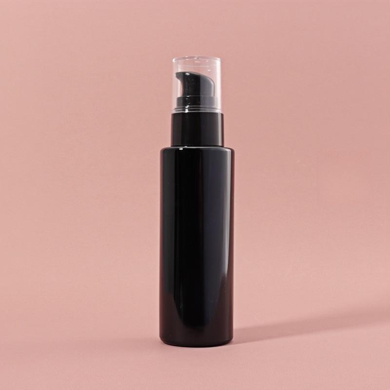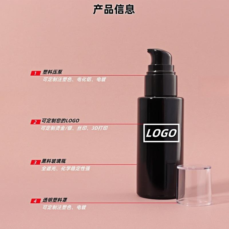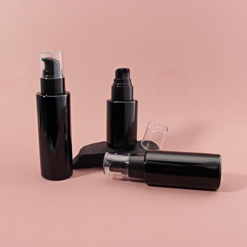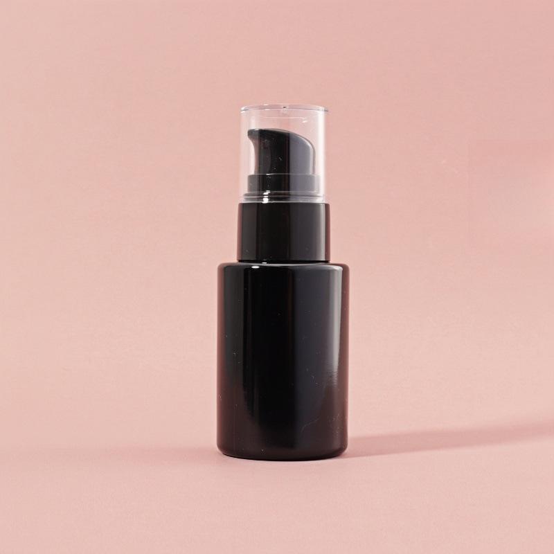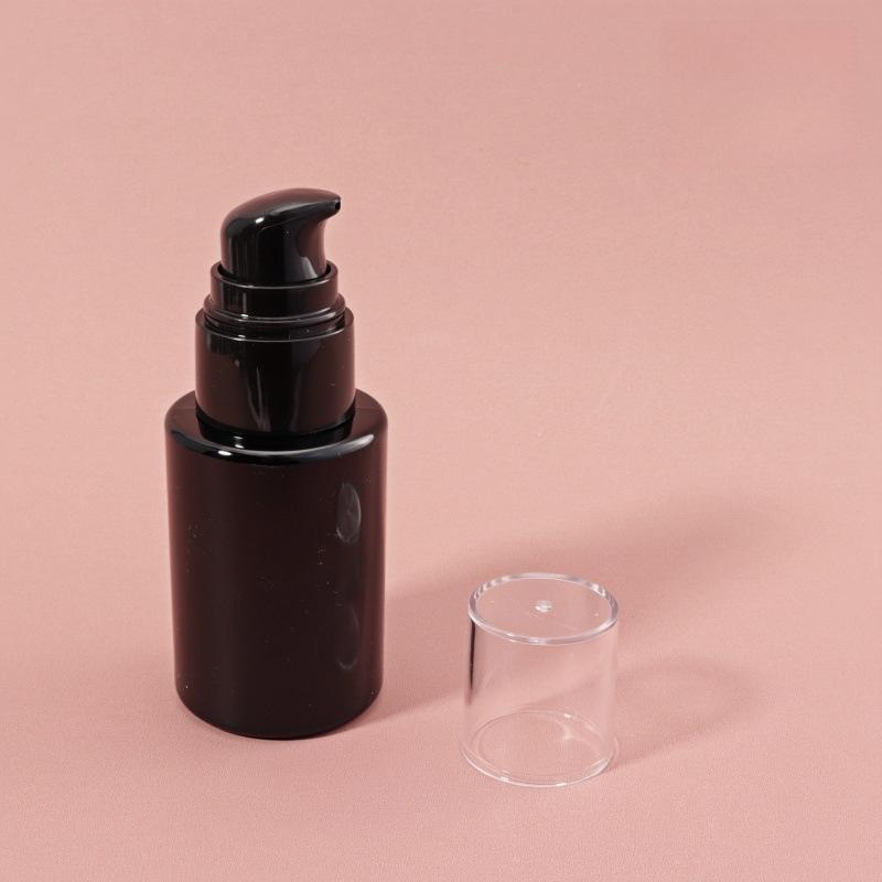 Emulsión acuosa cosméticos para el cuidado de la piel botella de loción de viaje redonda negra sellada 30 ml botella de vidrio para aceite esencial