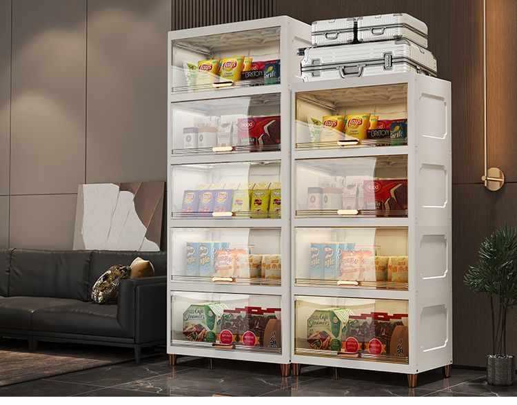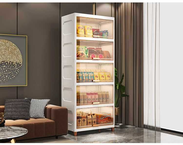 Compra Estante de almacenamiento de cocina transparente, estante de almacenamiento multicapa, gabinete de almacenamiento abatible, gabinete de almacenamiento de refrigerios para sala de estar, caja multifunción al por mayor en Joom.pro