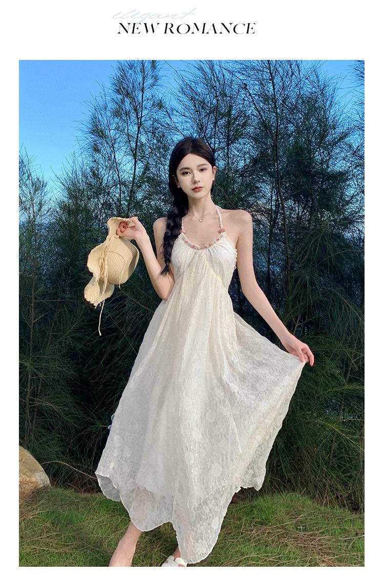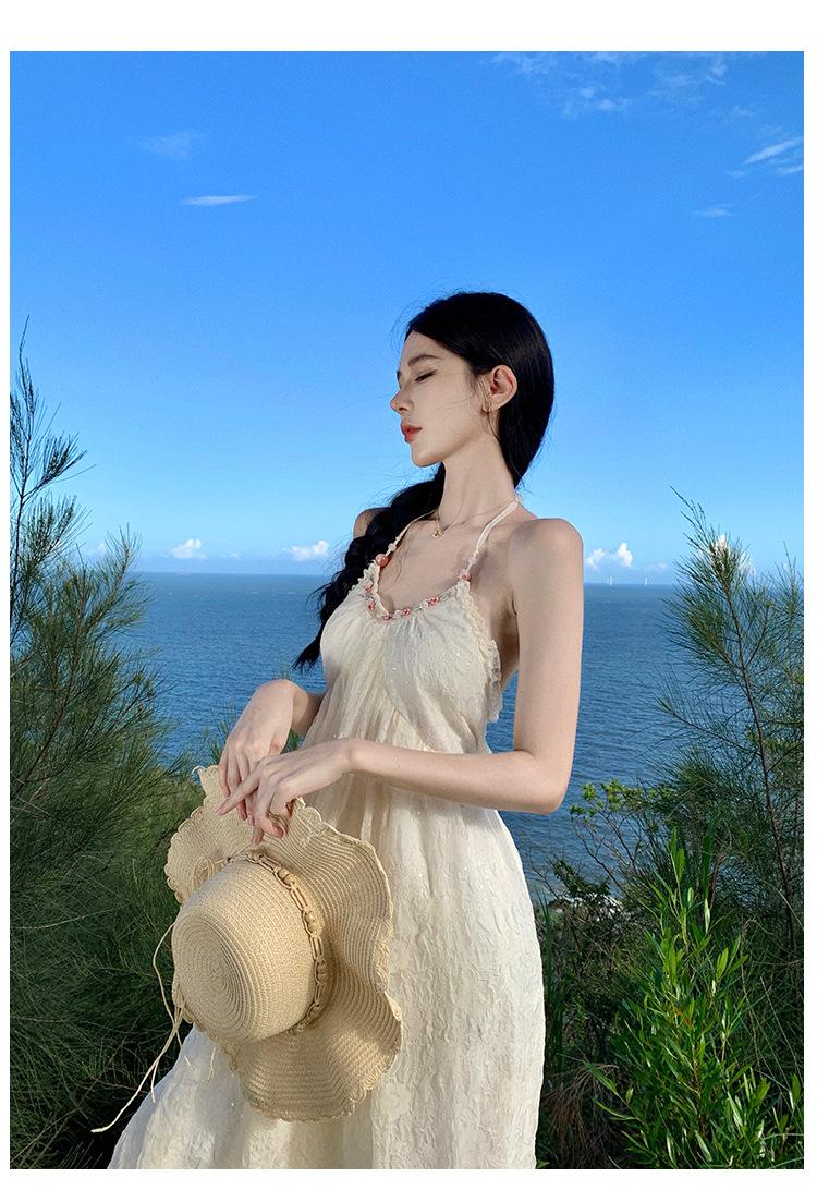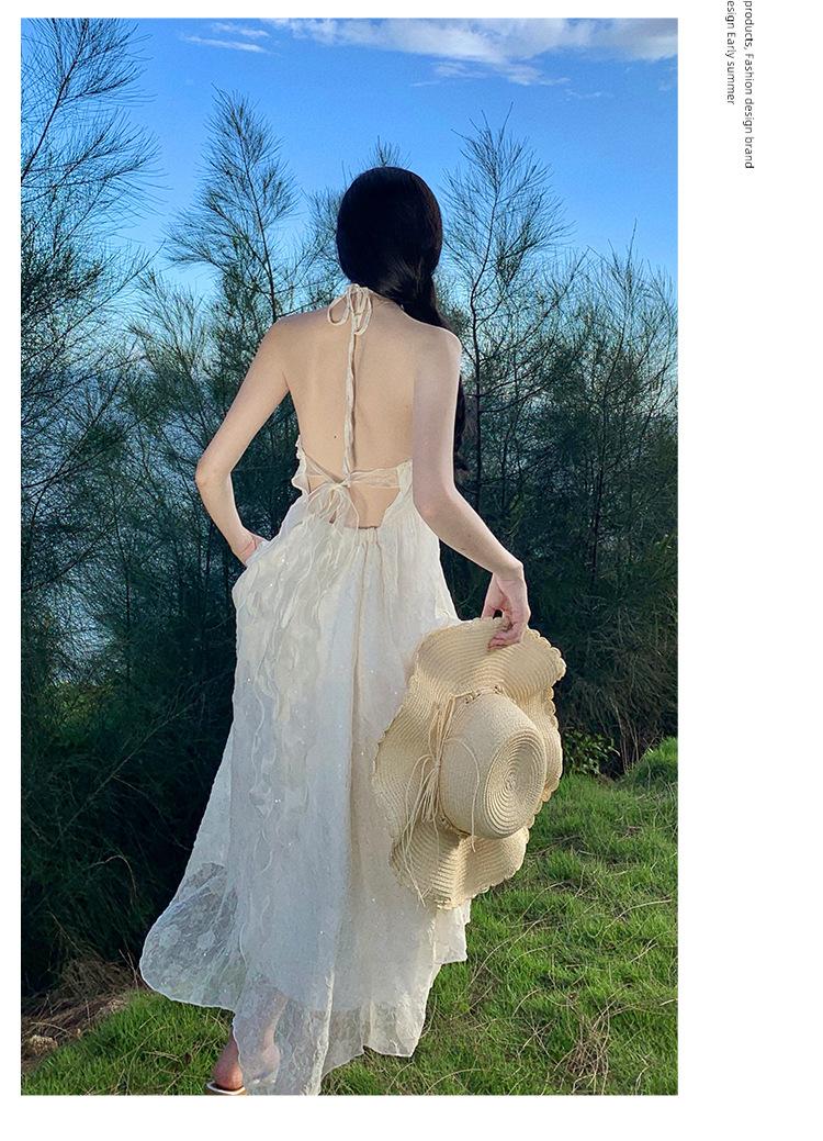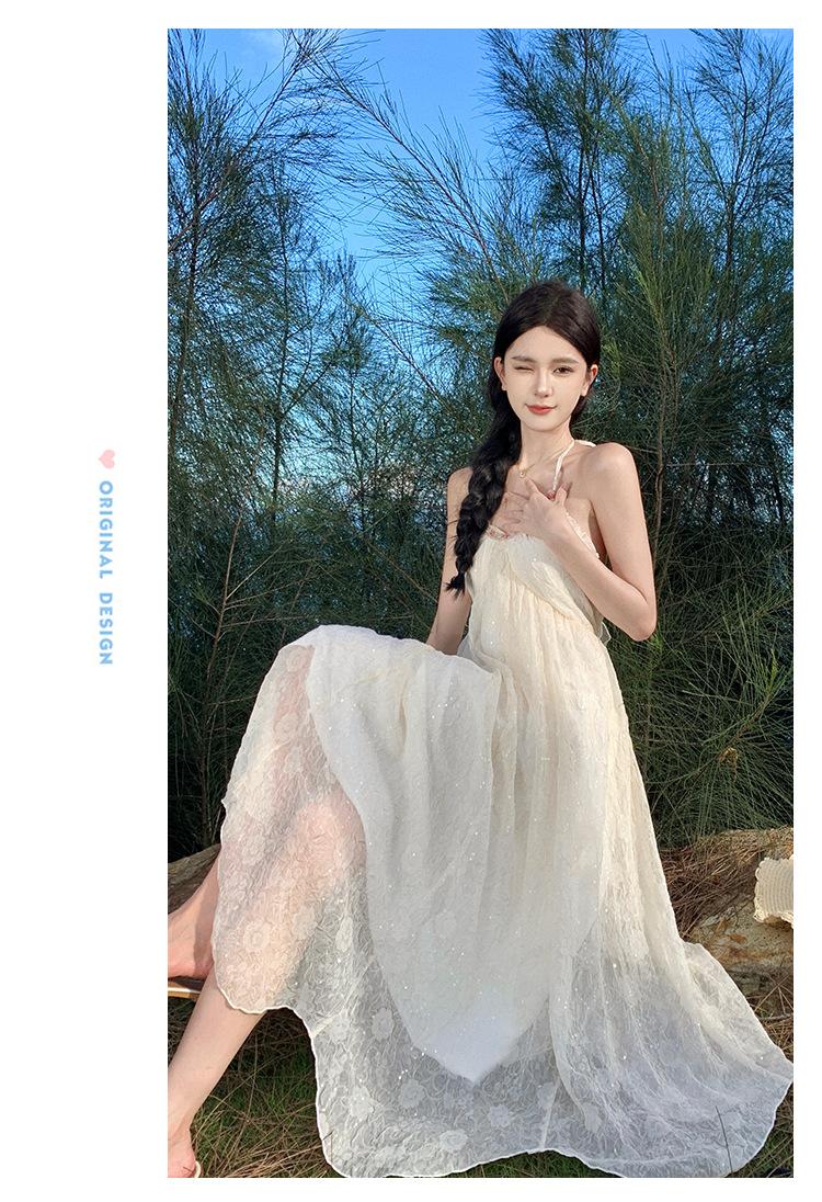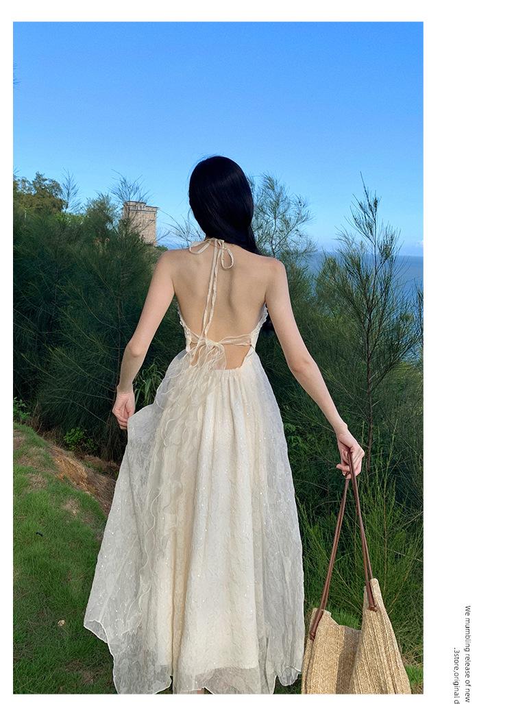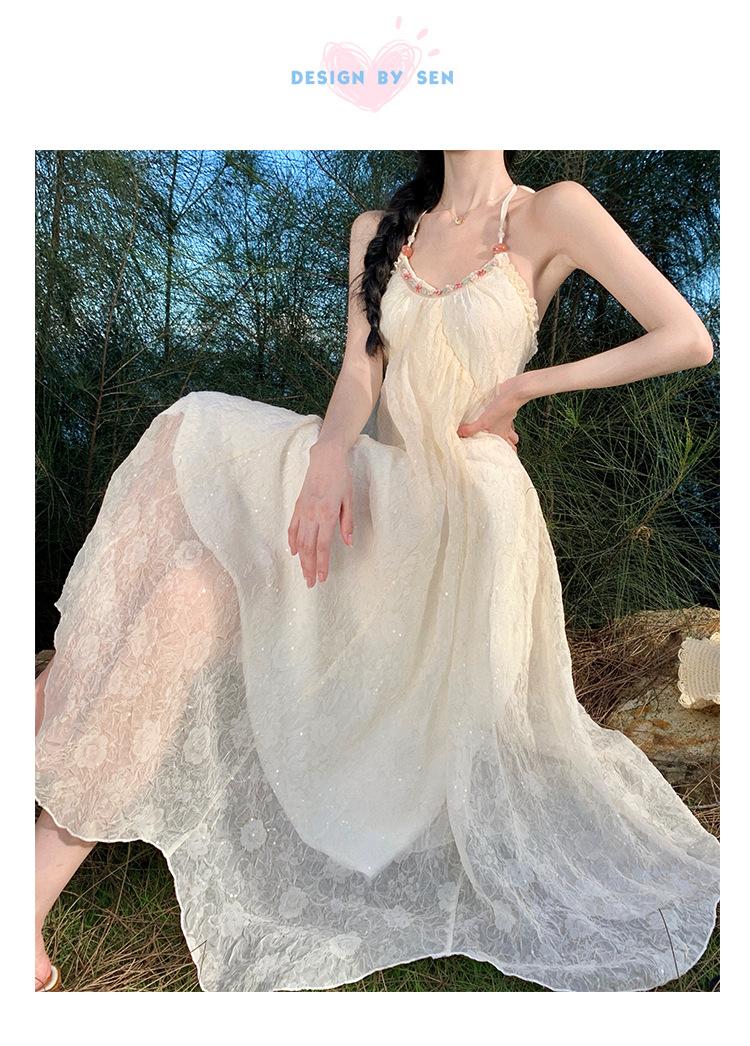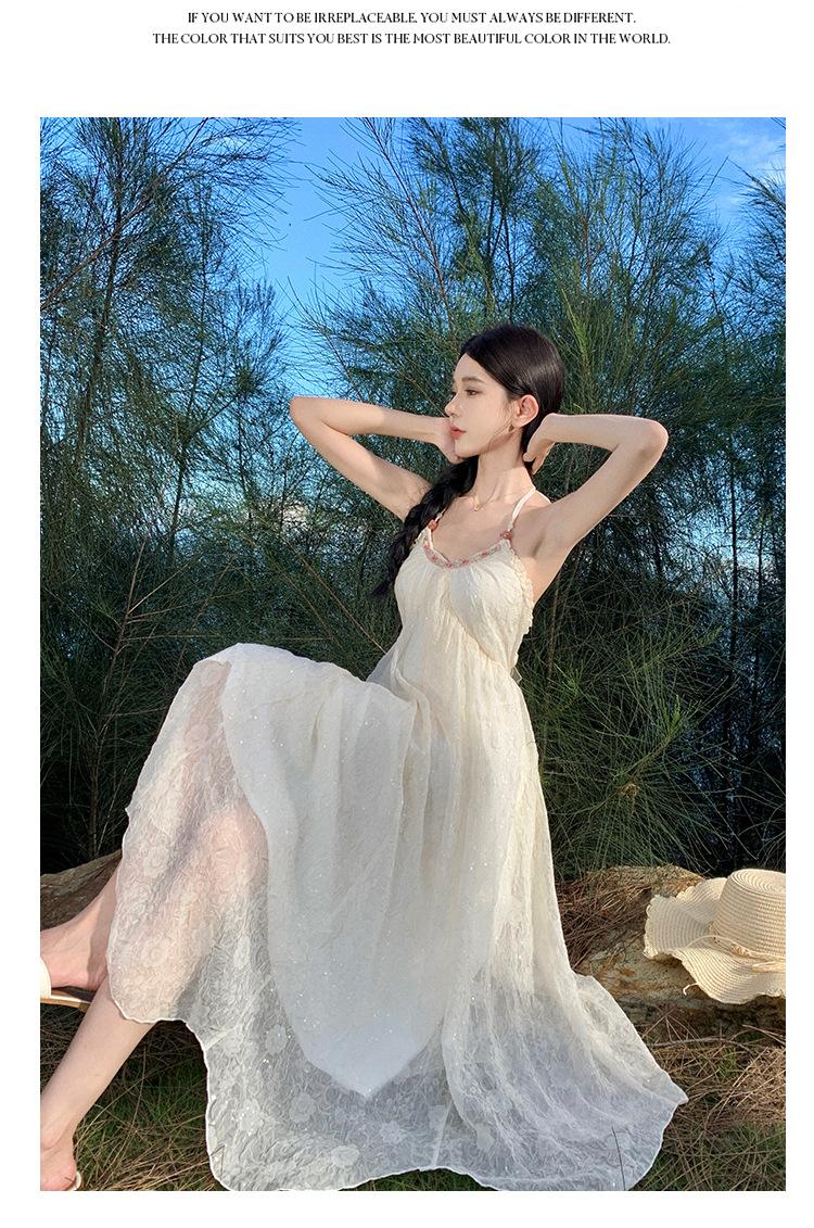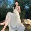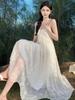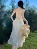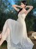 Vestido playero de gasa con tirantes y espalda descubierta para mujer, vestido playero de verano con textura de hada y textura de vacaciones en la playa