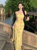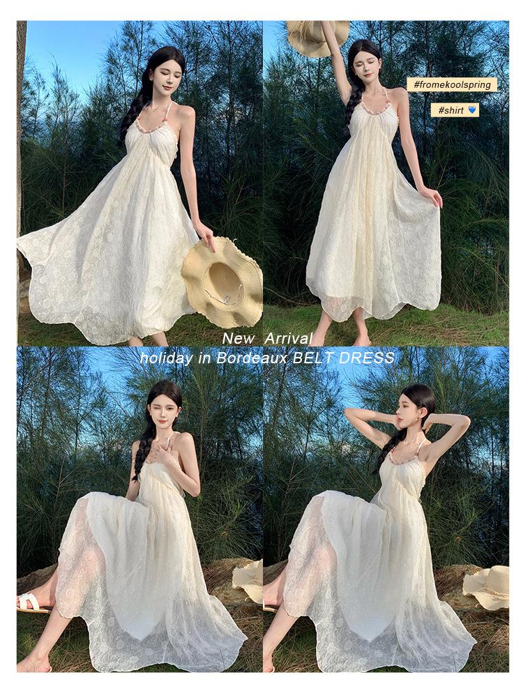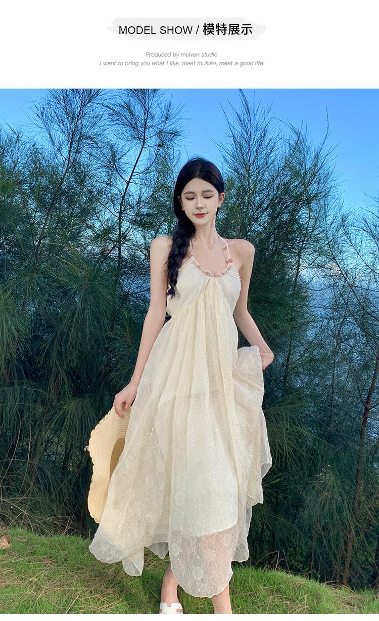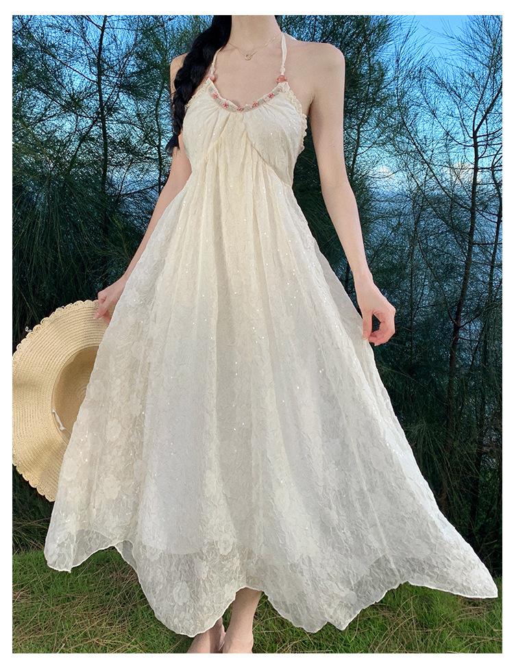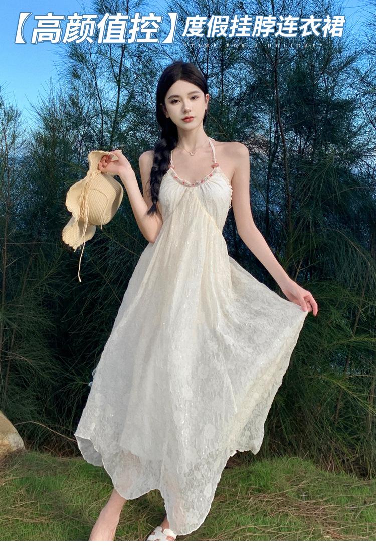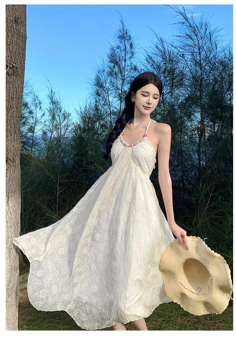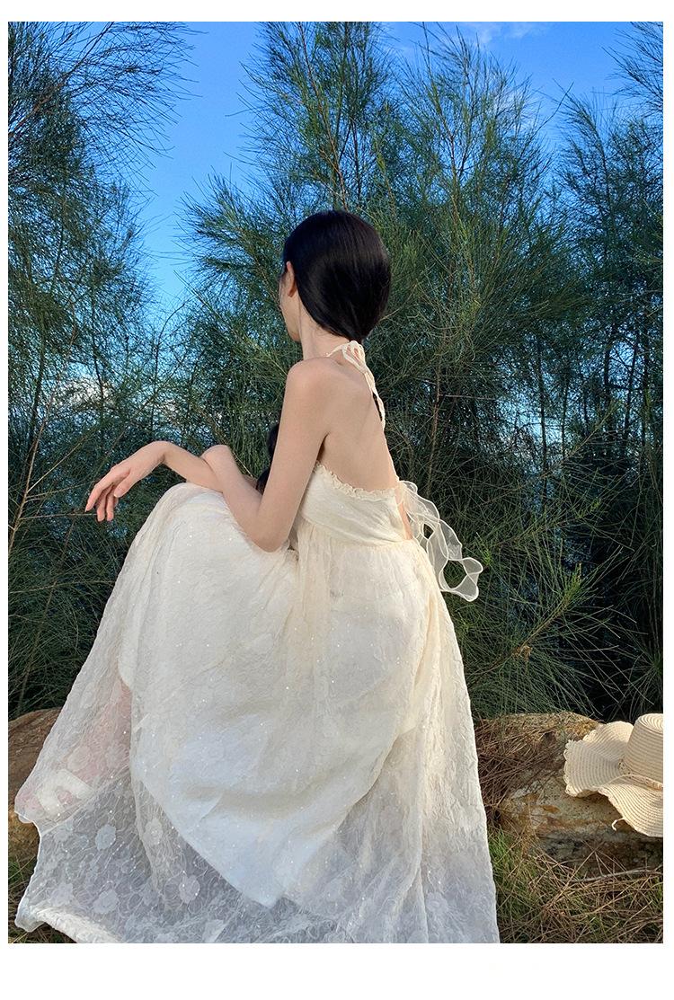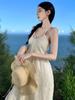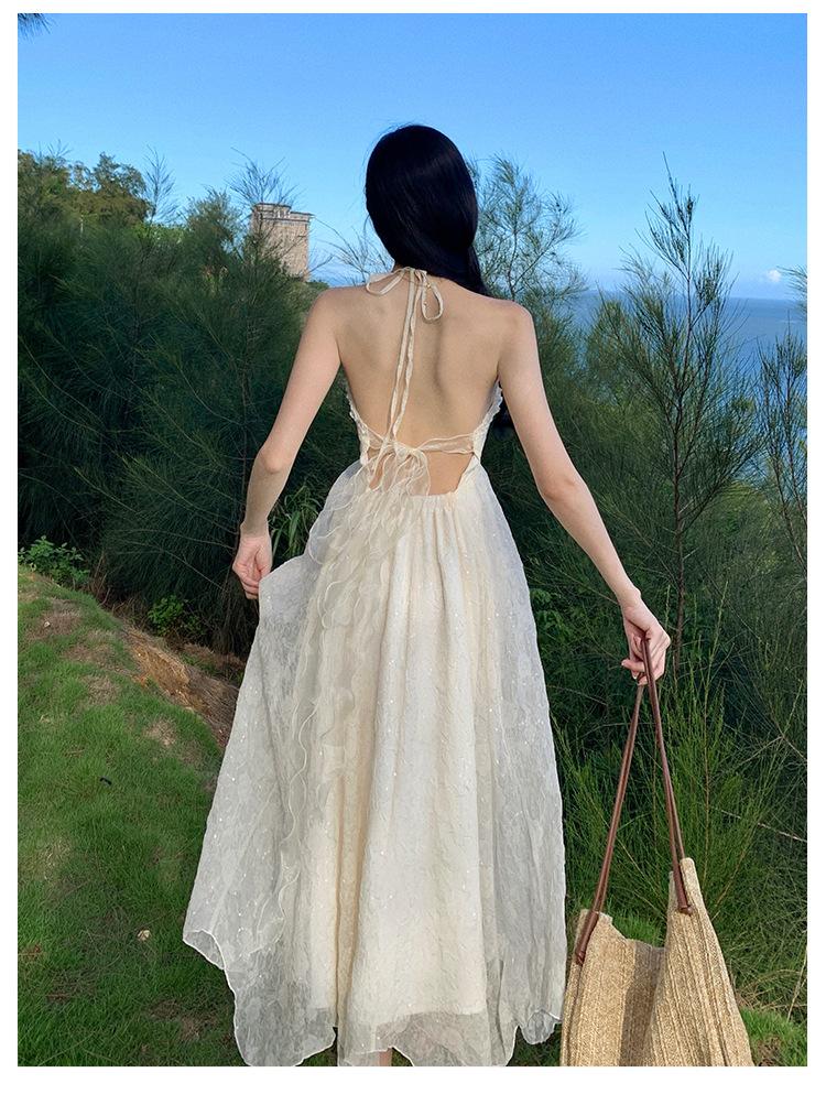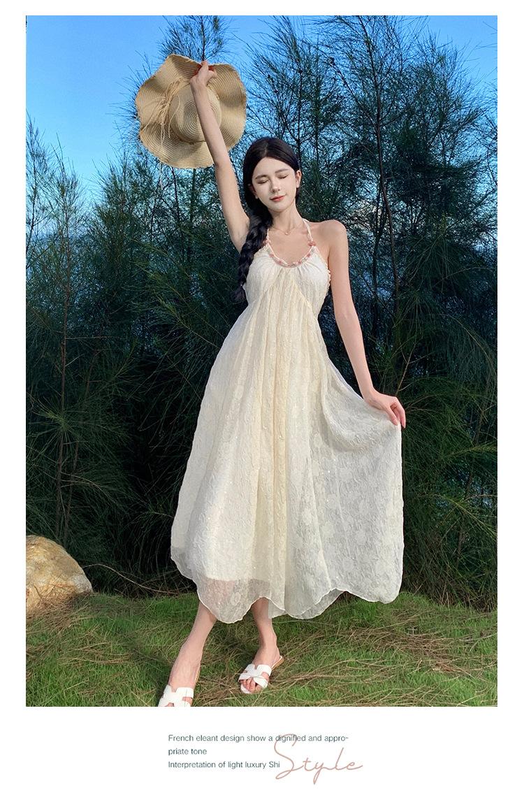 Vestido playero de gasa con tirantes y espalda descubierta para mujer, vestido playero de verano con textura de hada y textura de vacaciones en la playa
