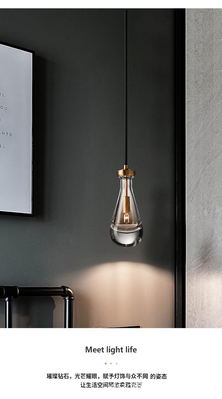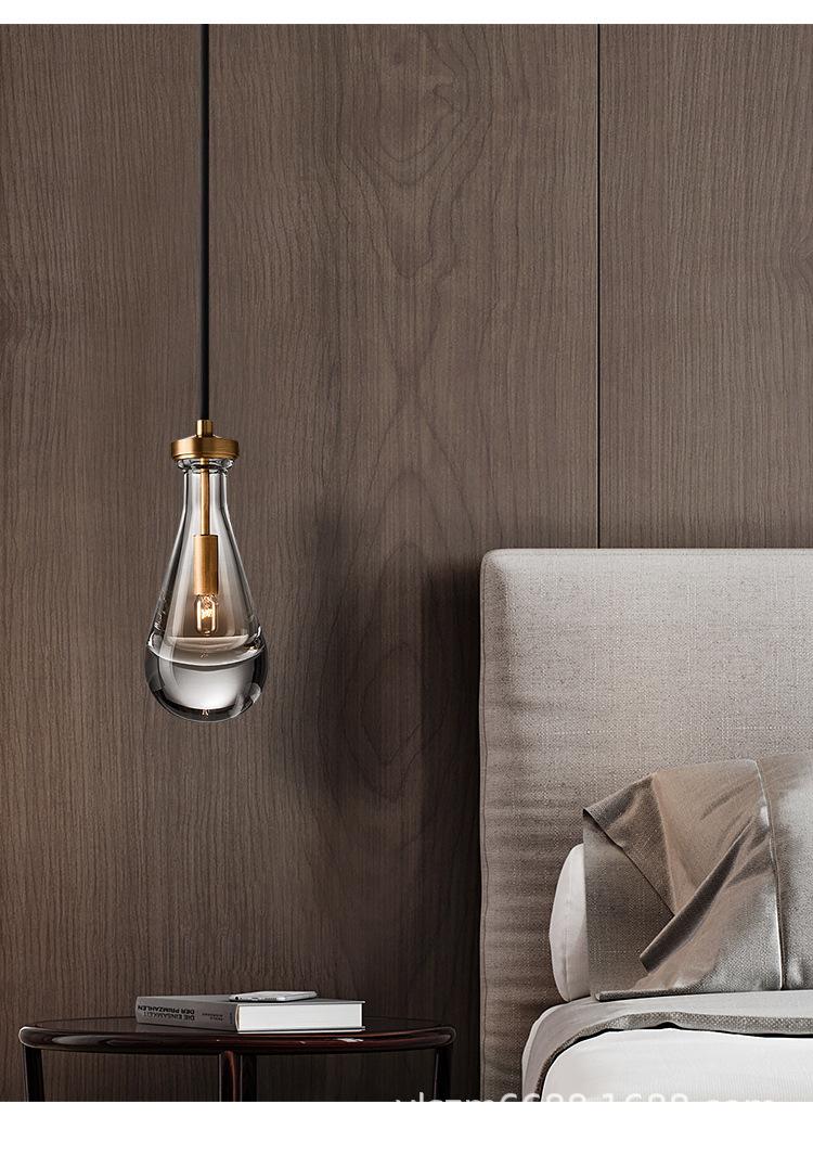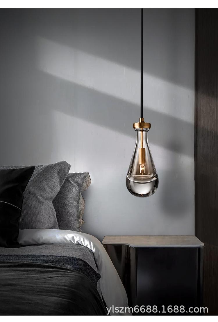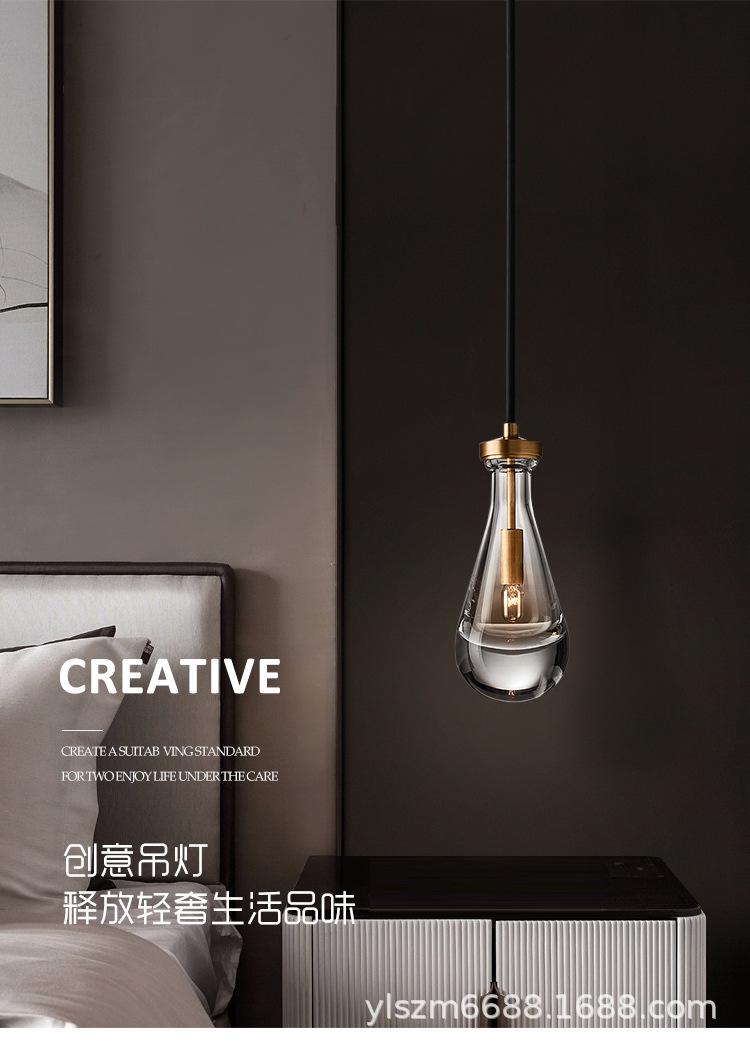 Lámpara de araña moderna de lujo para dormitorio, estudio, mesita de noche, lámpara de araña pequeña, simple, de un solo cabezal, para sala de estar, comedor, bar, lámpara de araña de cristal con forma de gota de agua