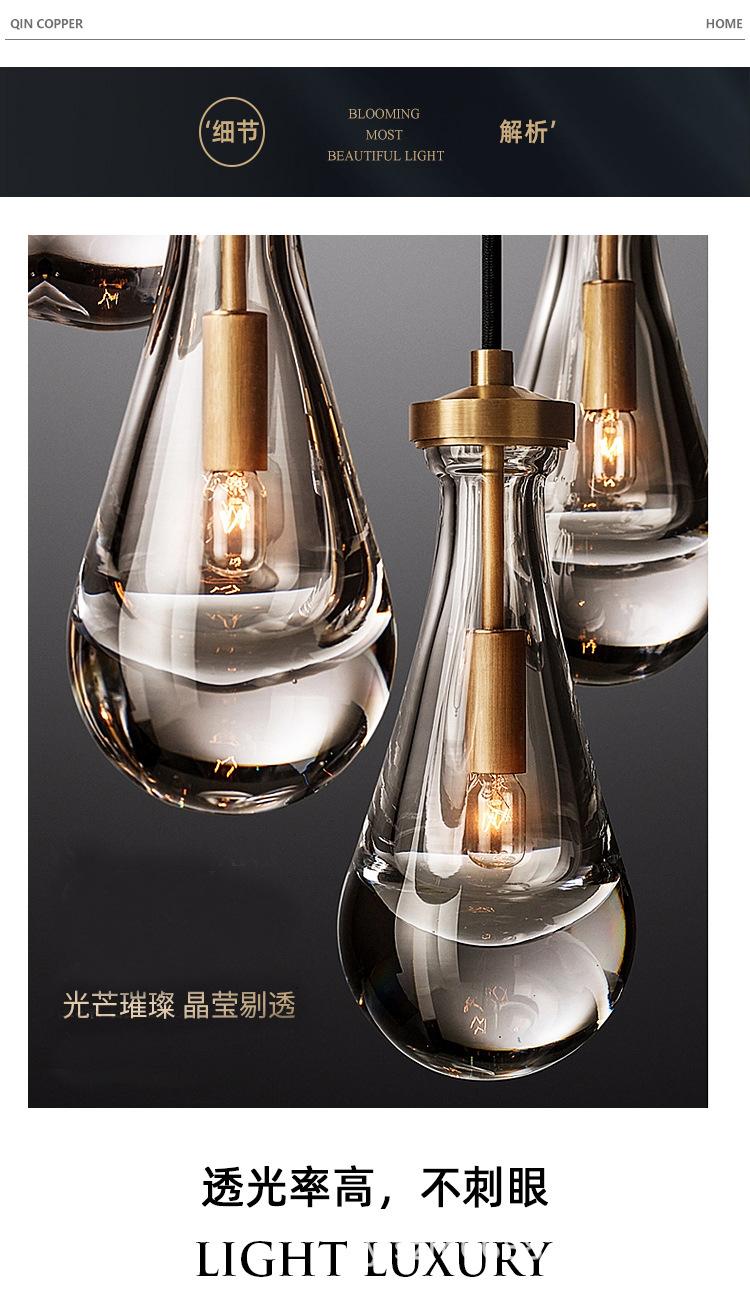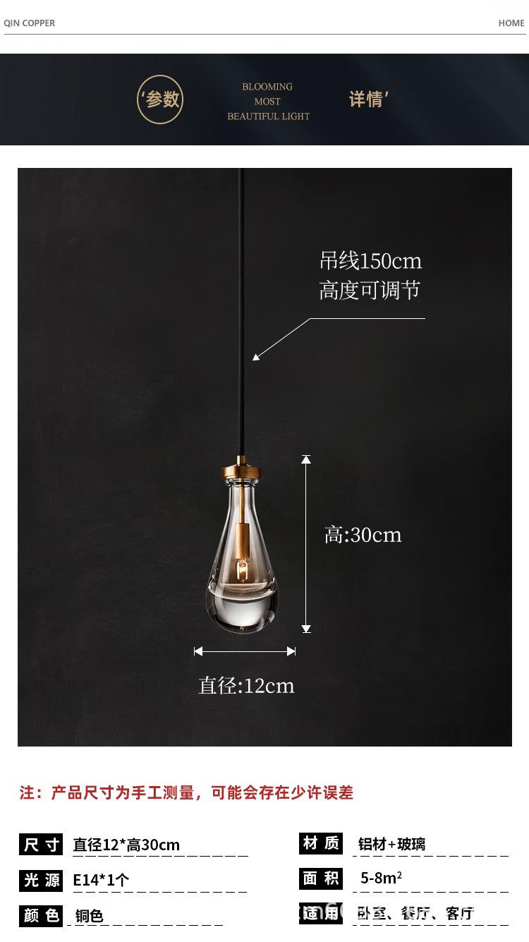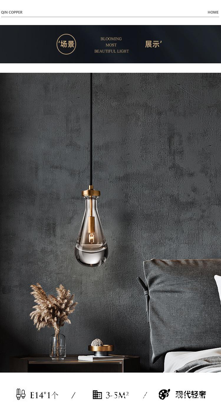Lámpara de araña moderna de lujo para dormitorio, estudio, mesita de noche, lámpara de araña pequeña, simple, de un solo cabezal, para sala de estar, comedor, bar, lámpara de araña de cristal con forma de gota de agua