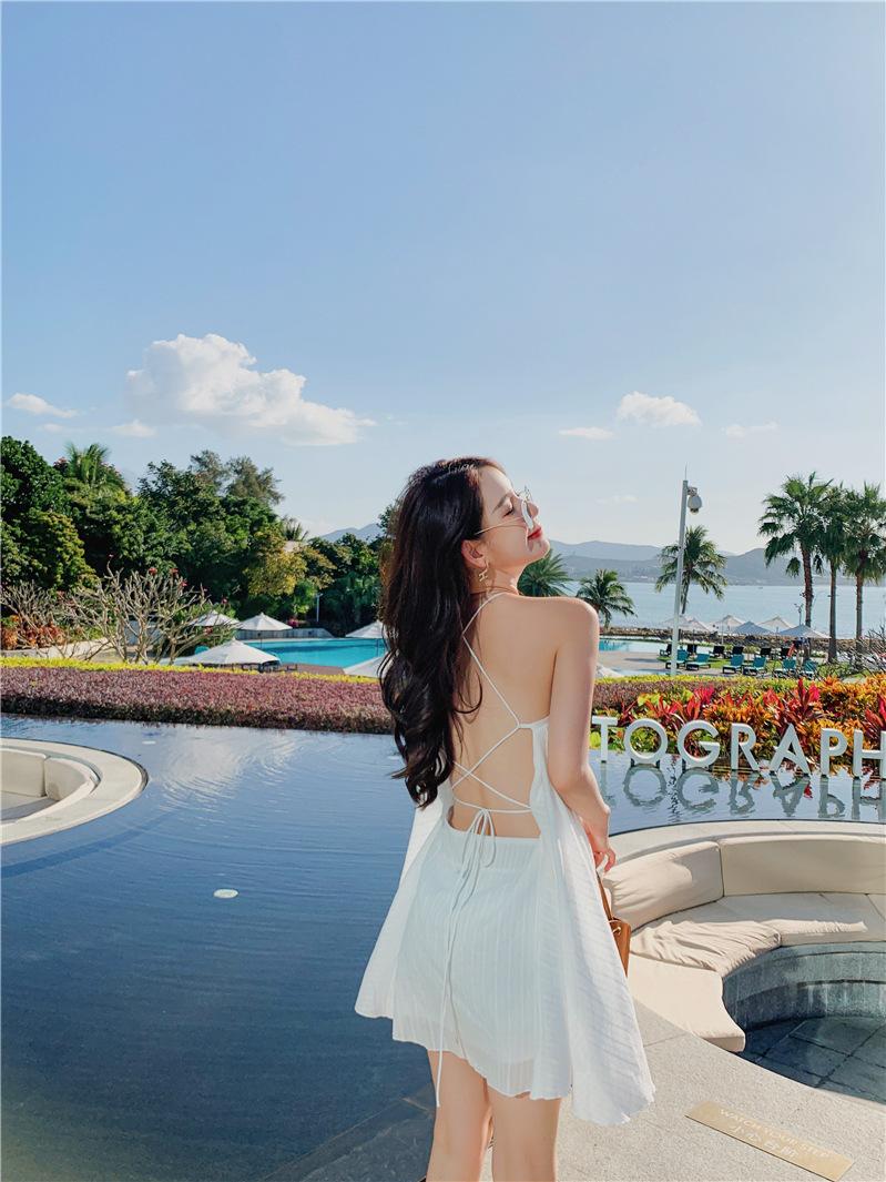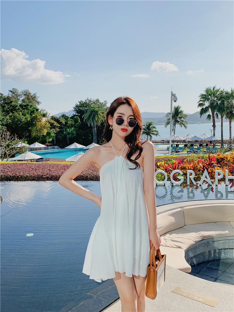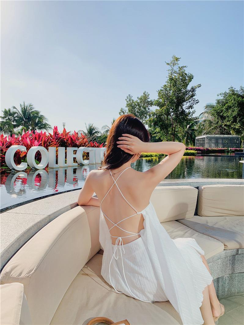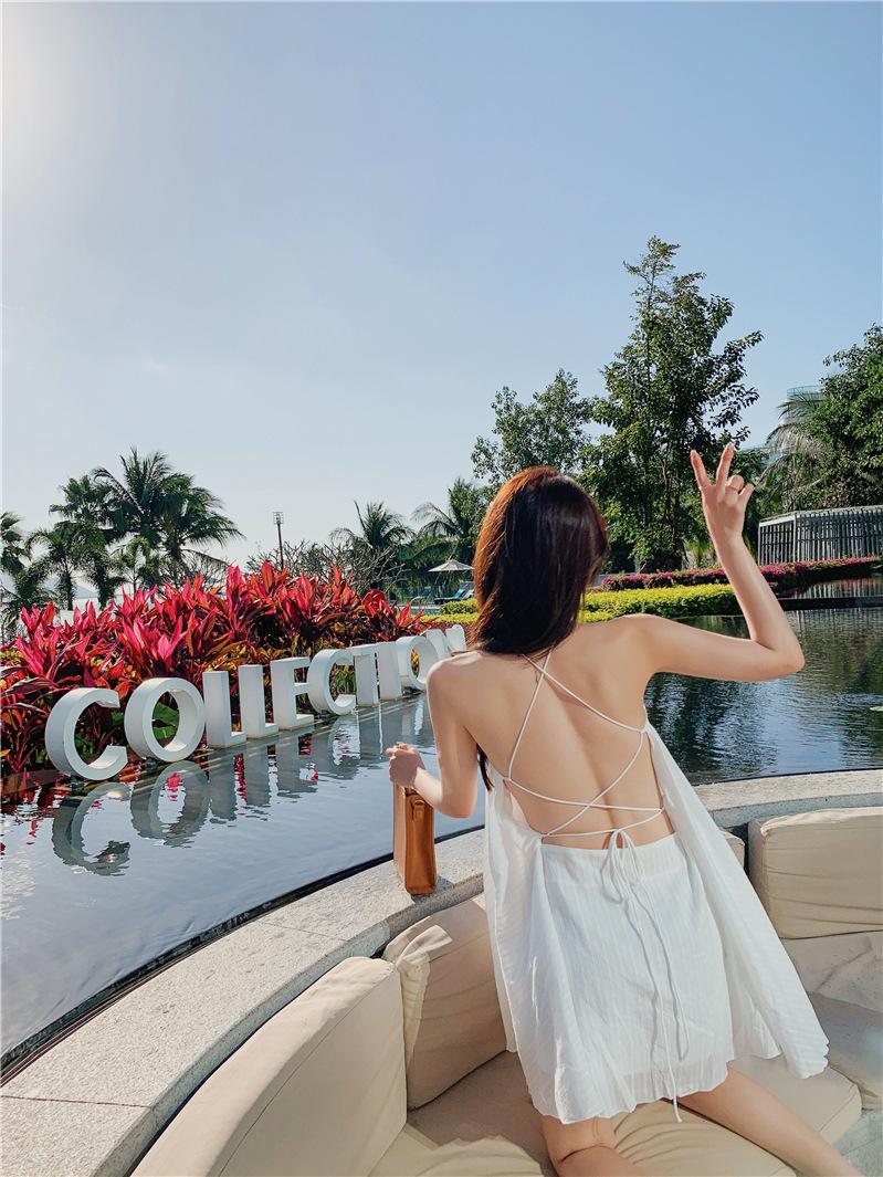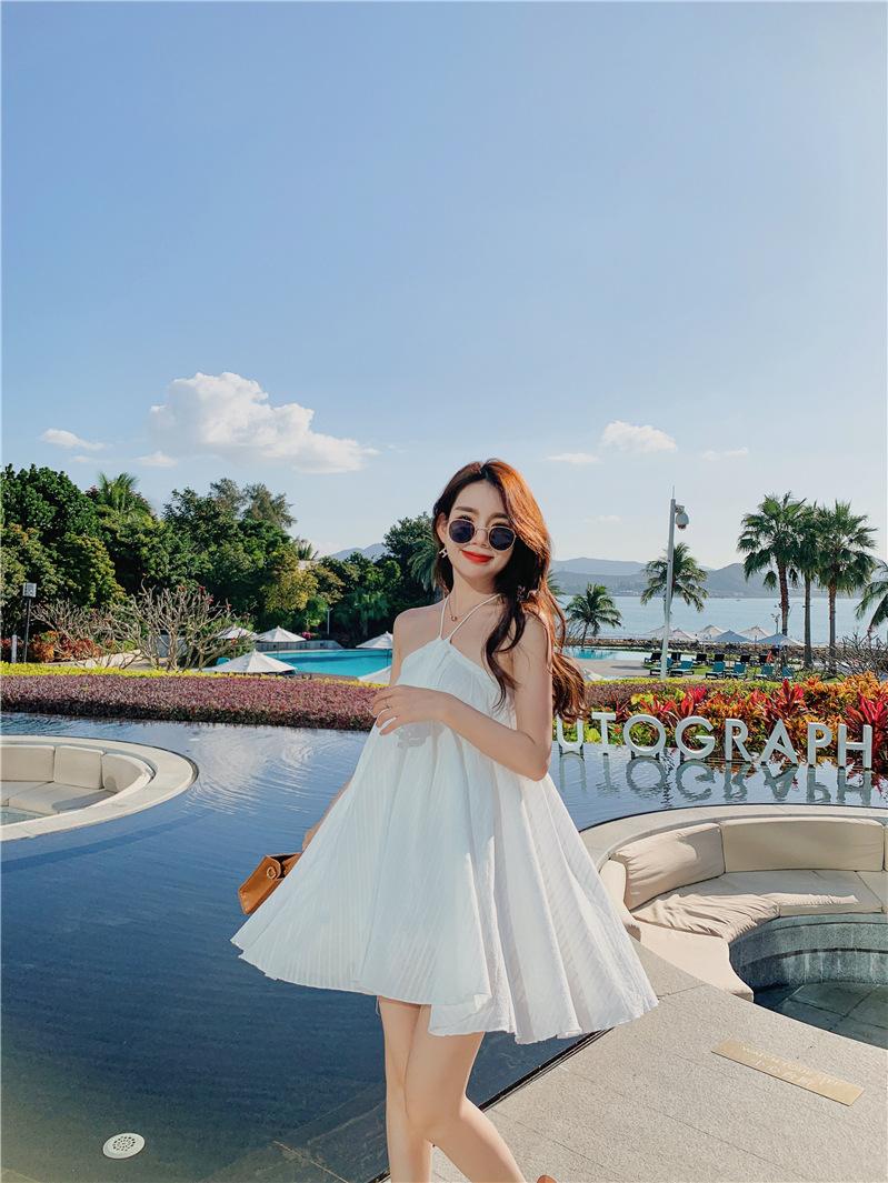 Gran Venta 2023 Verano Nuevo Vestido Corto Blanco Vacaciones en la Playa Vestido Halter sin Espalda para Mujer