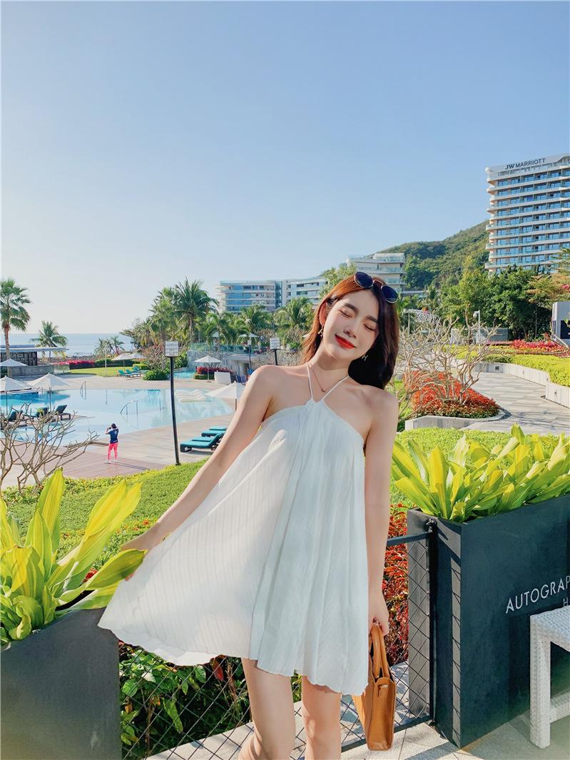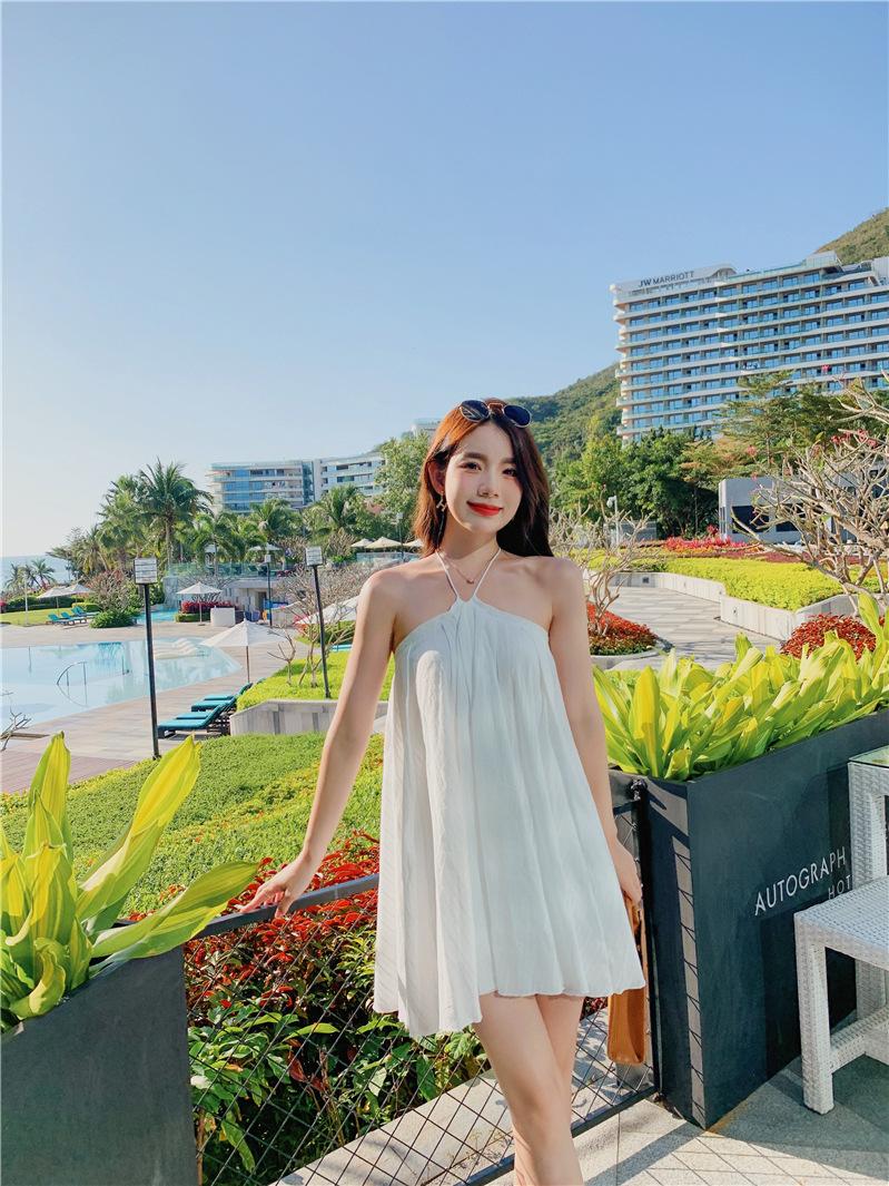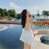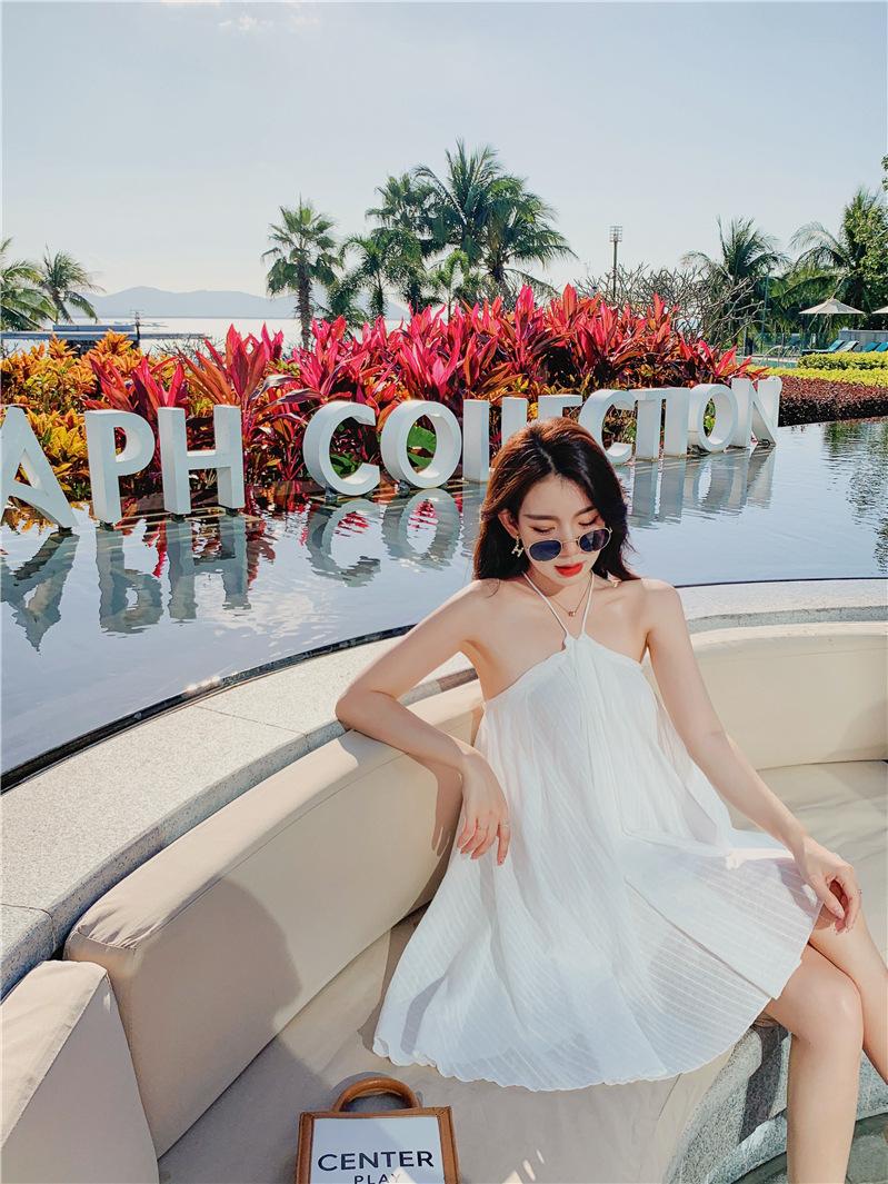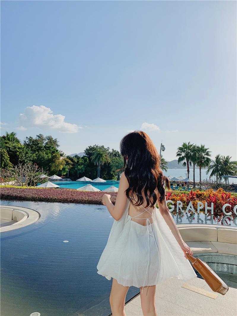 Gran Venta 2023 Verano Nuevo Vestido Corto Blanco Vacaciones en la Playa Vestido Halter sin Espalda para Mujer