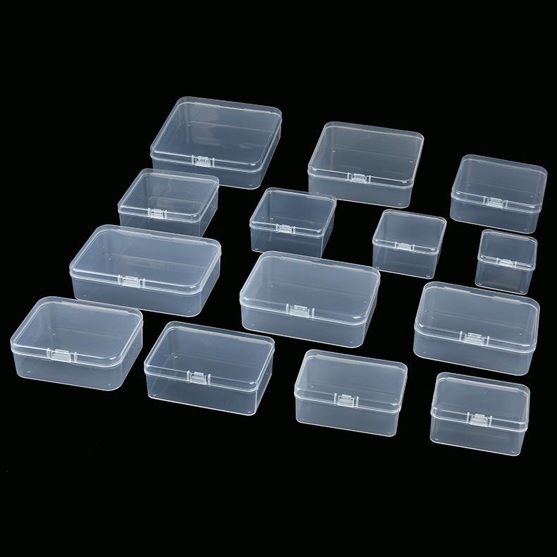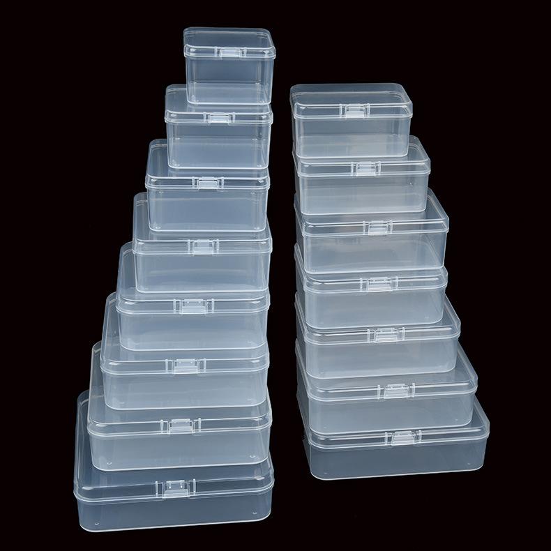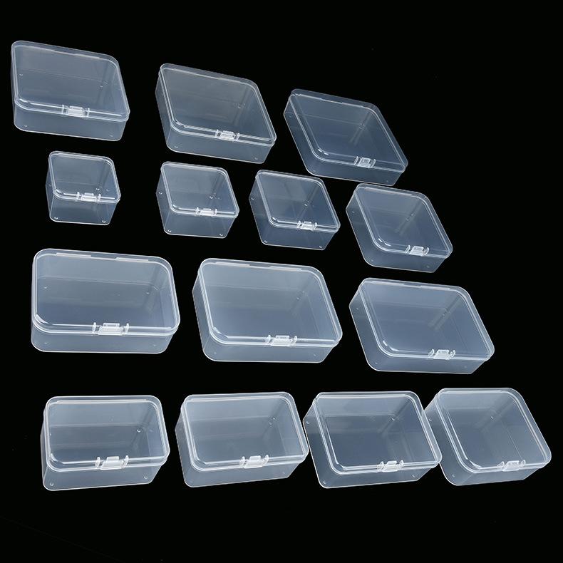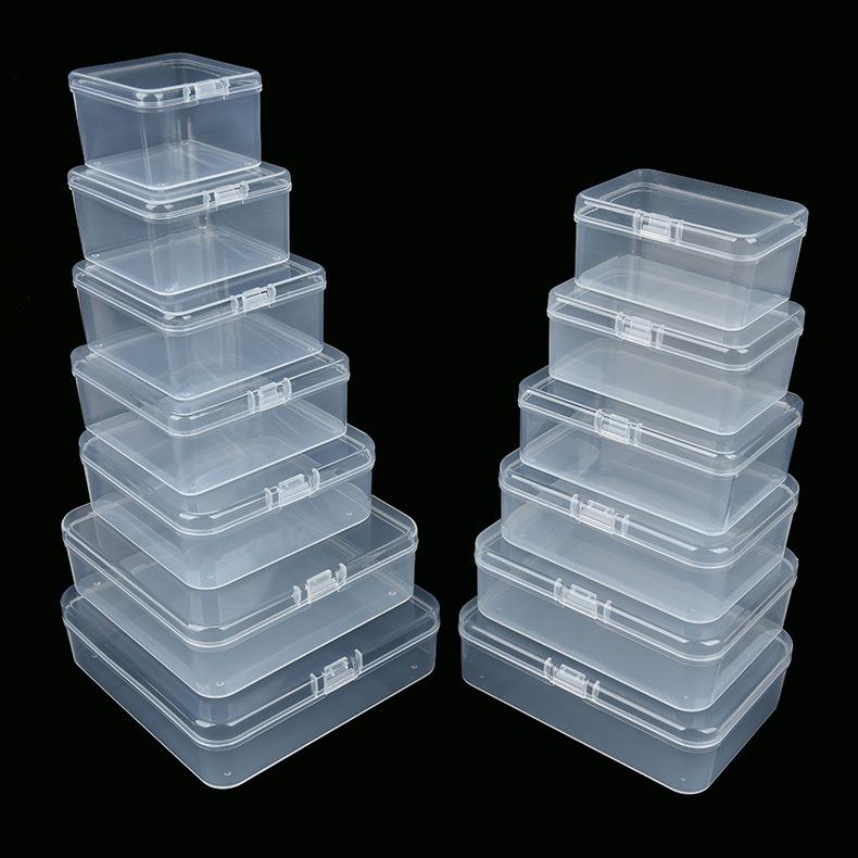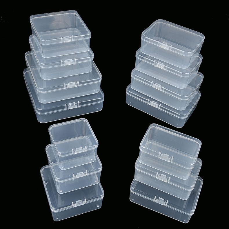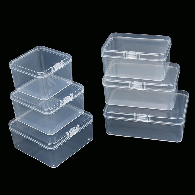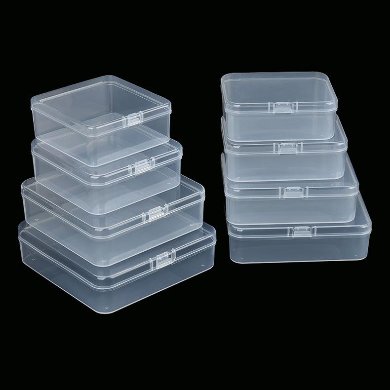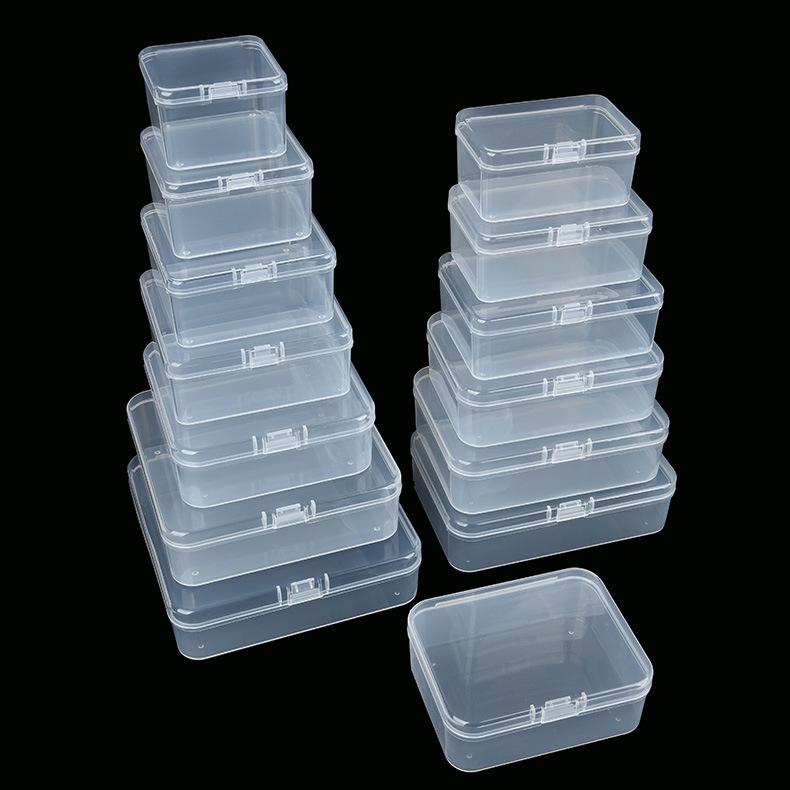 Caja de plástico PP transparente, cuadrada, alta, con tapa, para almacenar componentes, accesorios, embalaje, piezas de hardware, varios tamaños