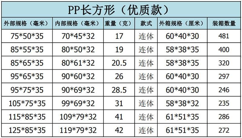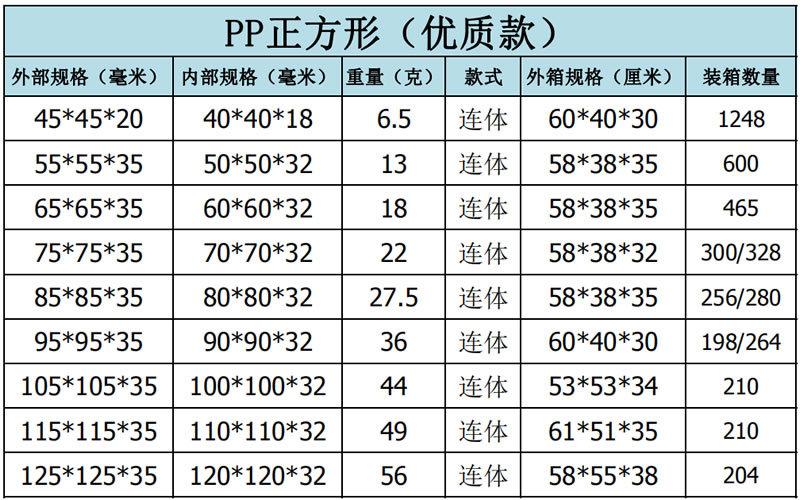 Pp high quality model 55x55x35mm, Pp high quality model 65x65x35mm, Pp high quality model 75x75x35mm, Pp high ...