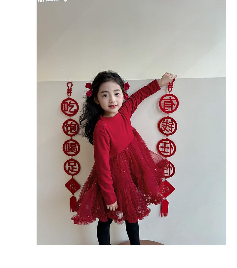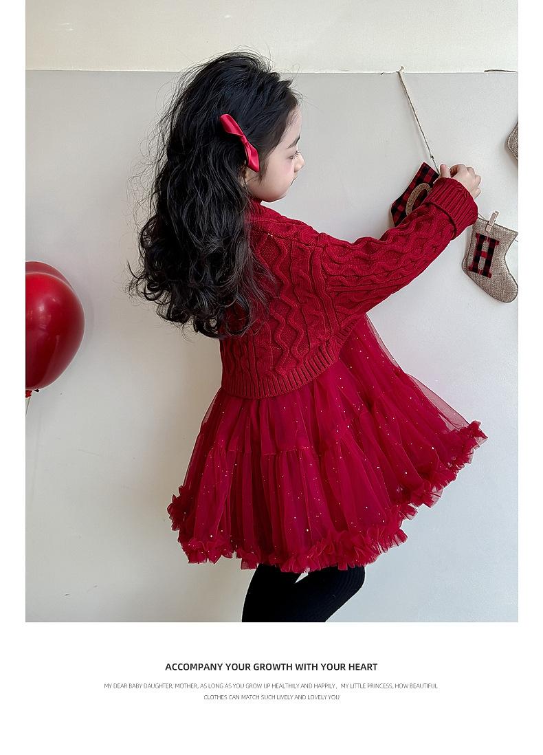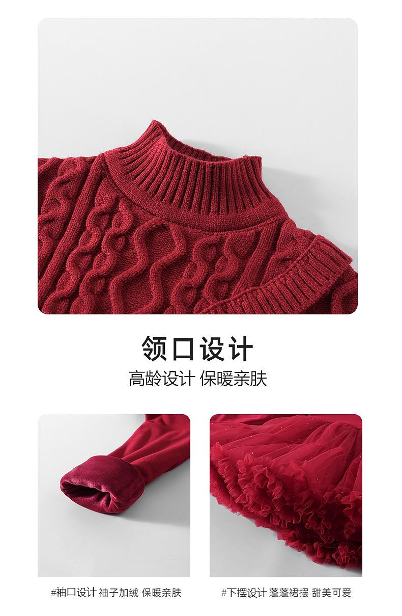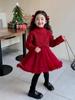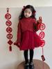 Vestido forrado de polar para niña Otoño e Invierno 2025 Nuevo Vestido de Princesa para Niña Vestido de Año Nuevo Vestido de Invierno Vestido Rojo de Lana para Niña