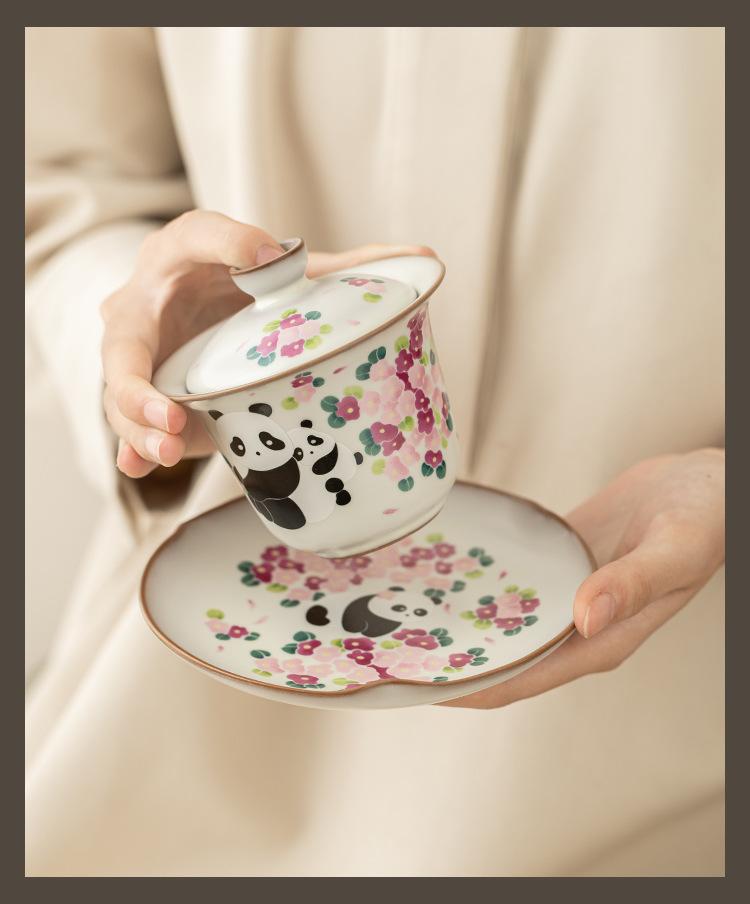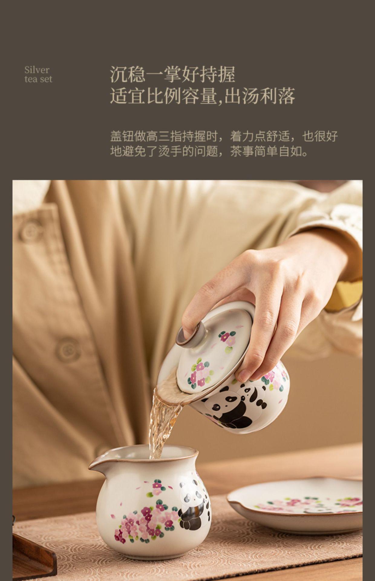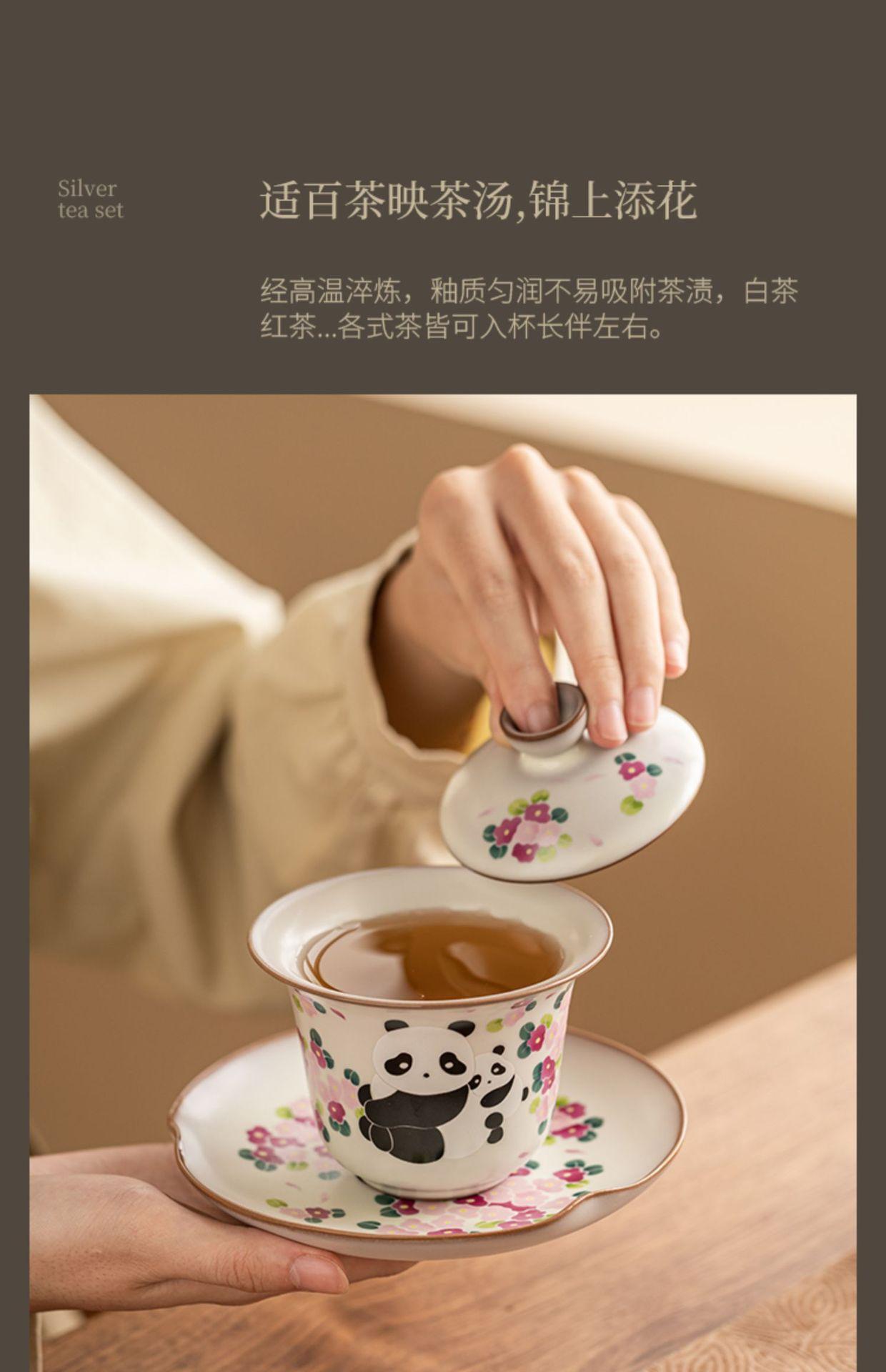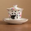 Cuenco con tapa de sicai de panda de horno Ru de fábrica, cuenco de té de kung fu no caliente para damas, cuenco de té de alto valor de color con tapa que se puede abrir