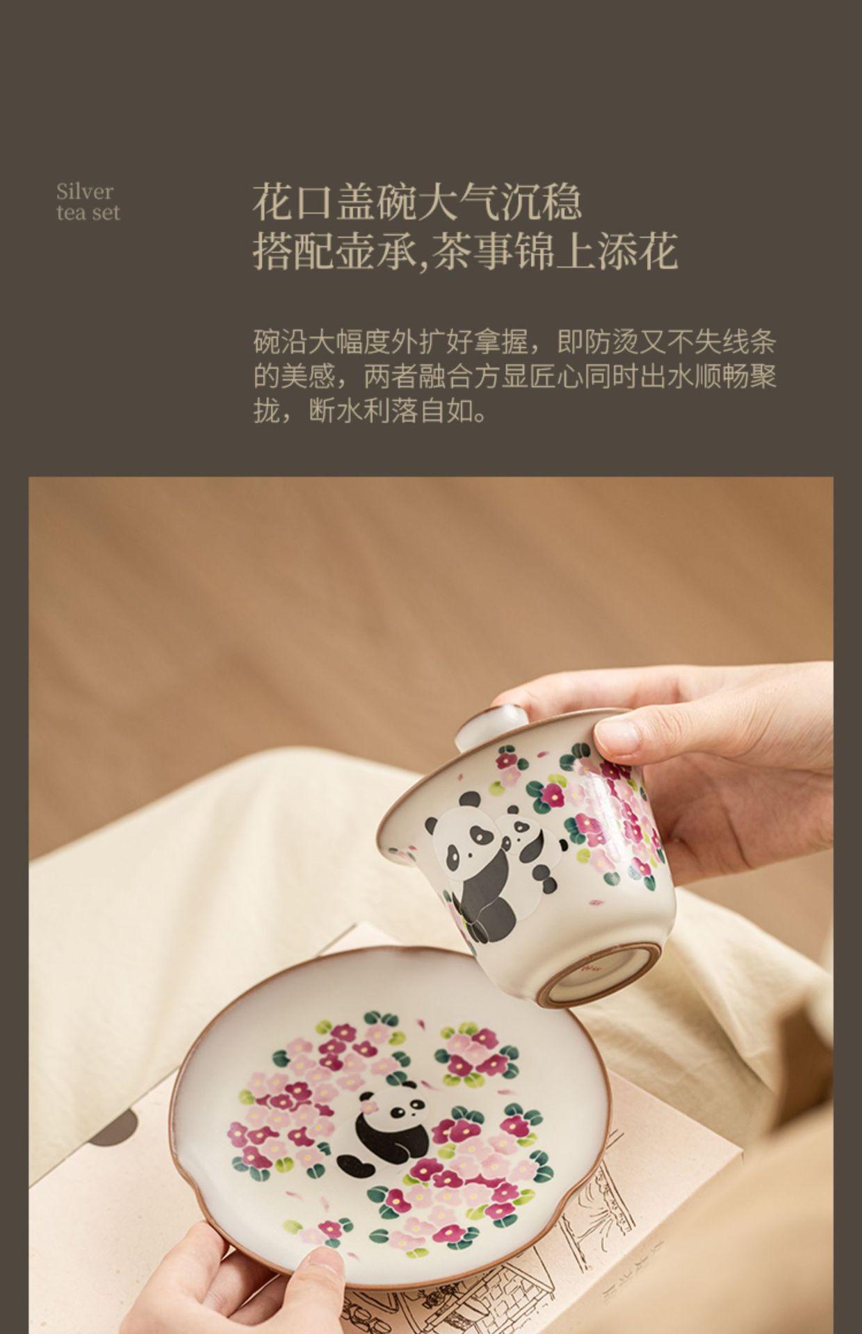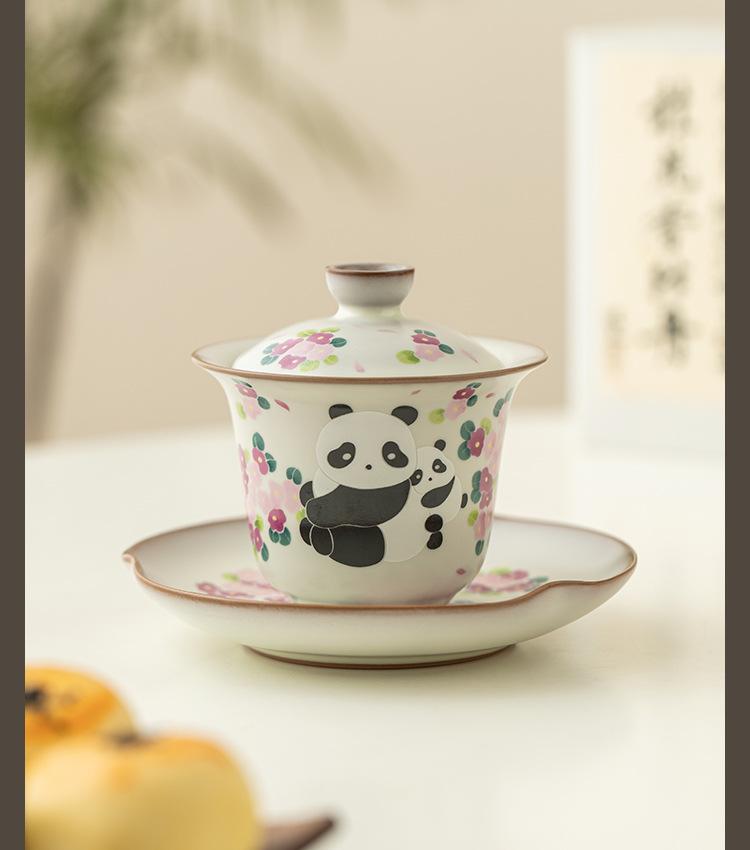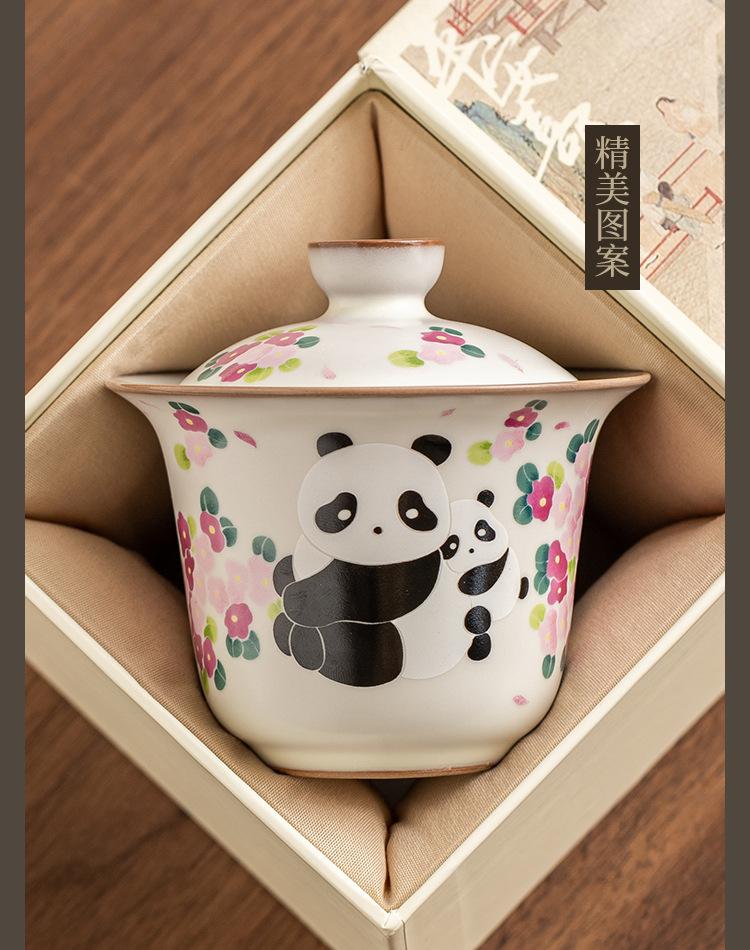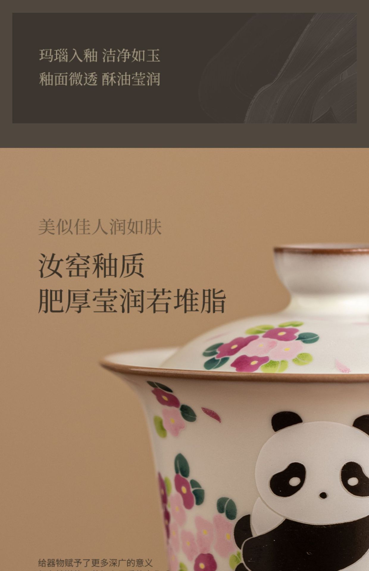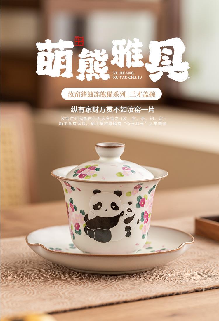 Compra Cuenco con tapa de sicai de panda de horno Ru de fábrica, cuenco de té de kung fu no caliente para damas, cuenco de té de alto valor de color con tapa que se puede abrir al por mayor en Joom.pro