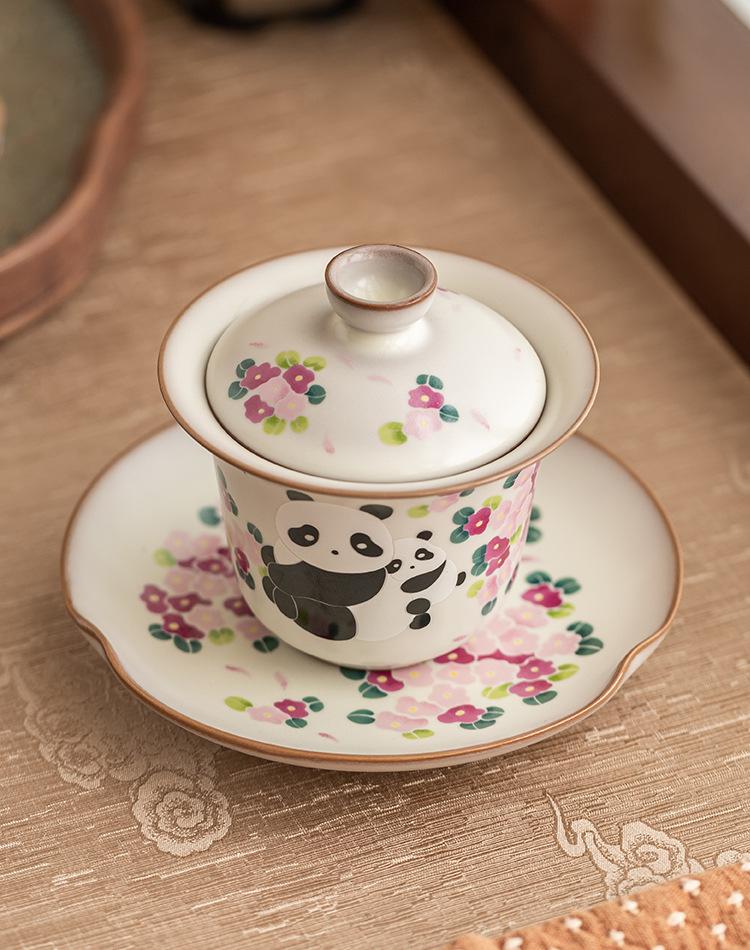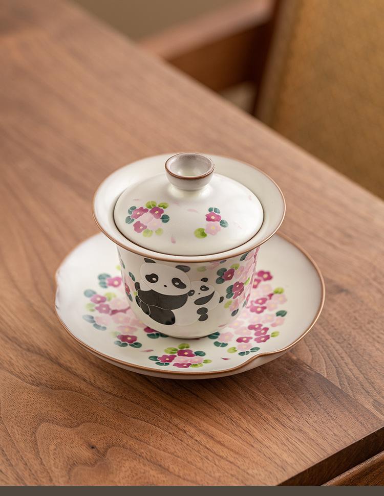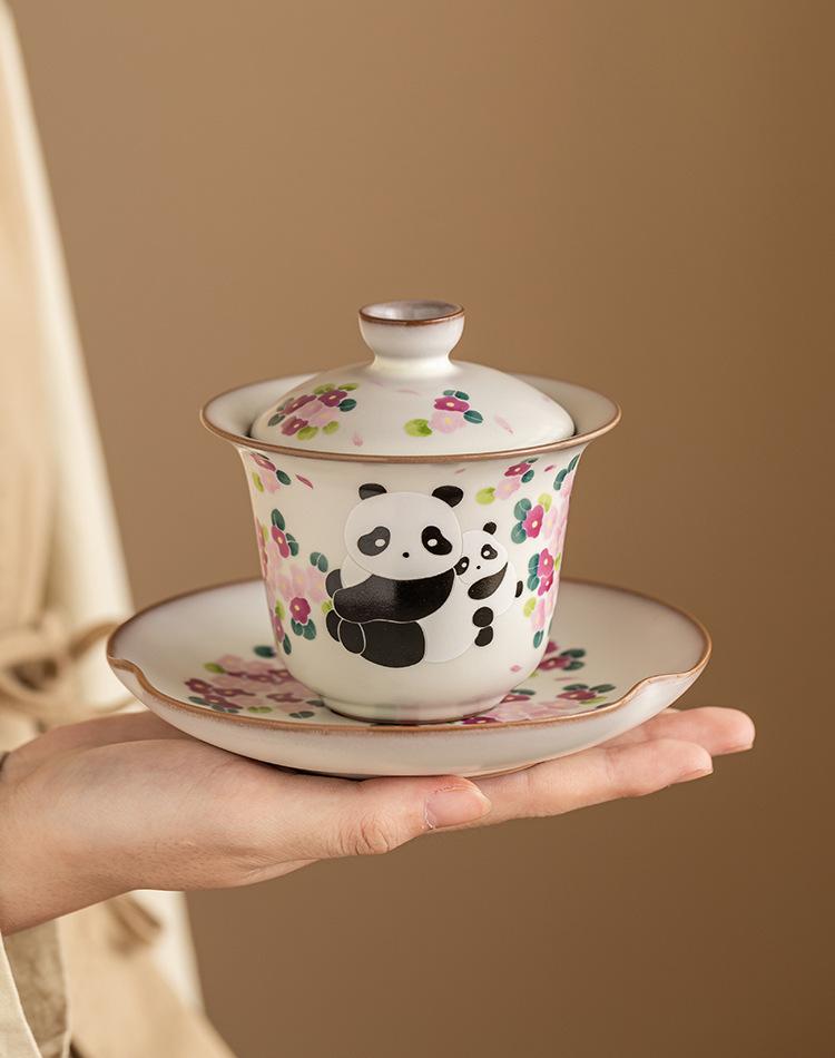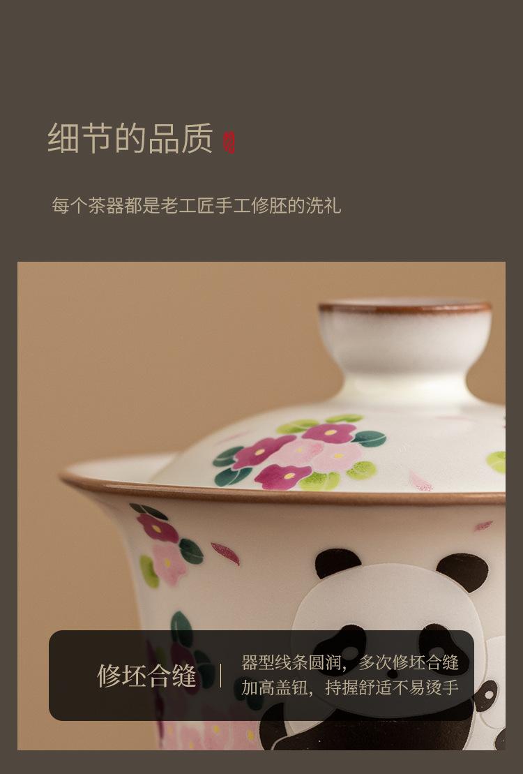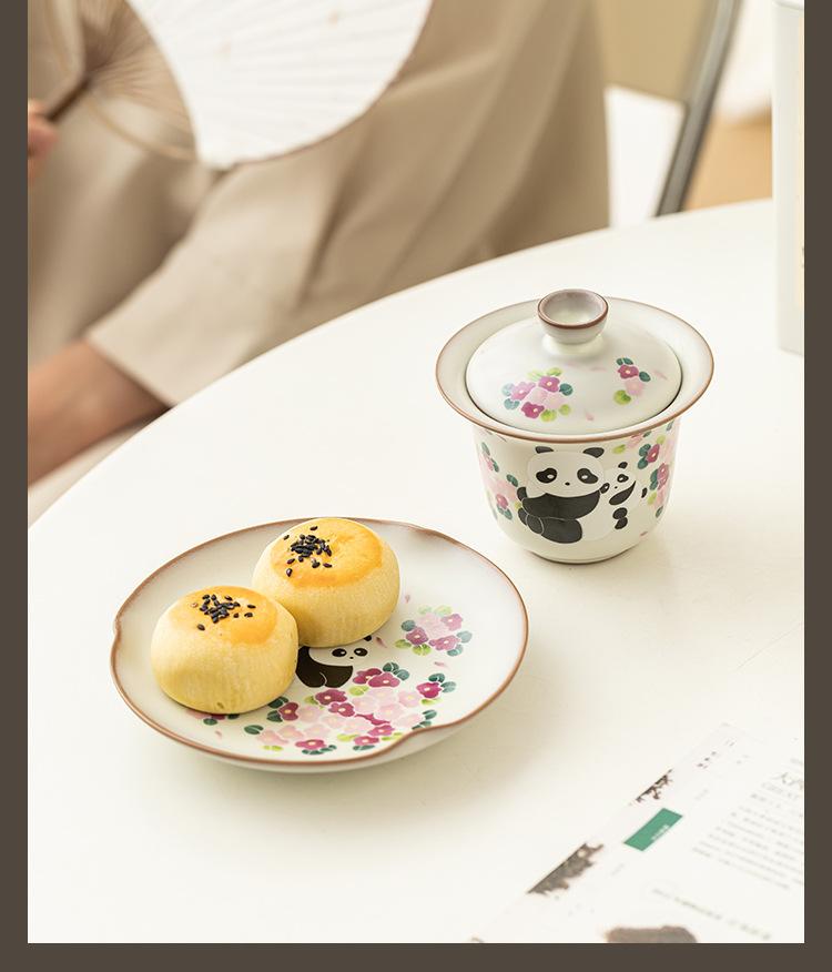 Compra Cuenco con tapa de sicai de panda de horno Ru de fábrica, cuenco de té de kung fu no caliente para damas, cuenco de té de alto valor de color con tapa que se puede abrir al por mayor en Joom.pro