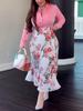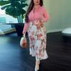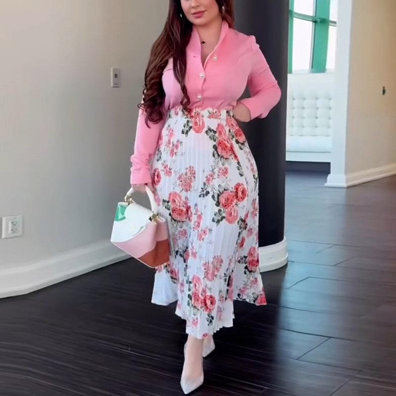 Conjunto de dos piezas de camisa de manga larga con estampado de Amazon, falda plisada y temperamento europeo y americano de comercio exterior de verano de 2025