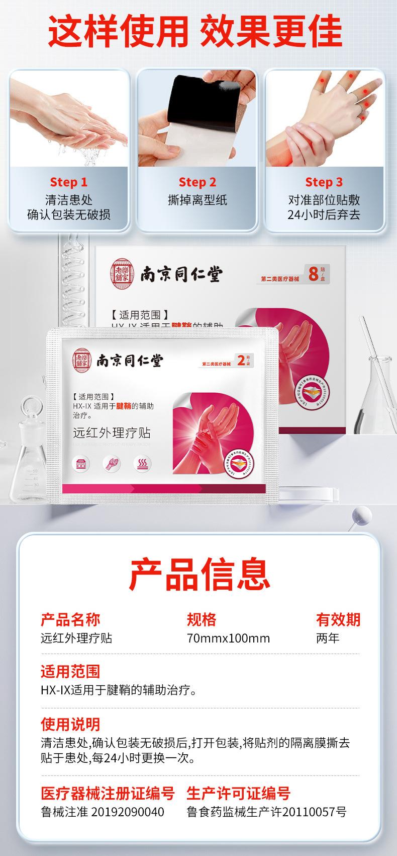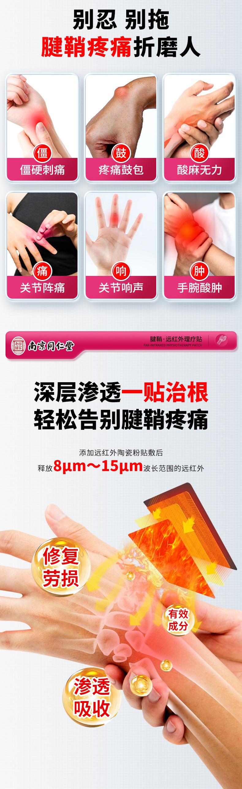 Parche de fisioterapia de infrarrojo lejano para la tenosinovitis de Nanjing Tongrentang, dolor en la muñeca, pulgar, tímpano, bolsa, dolor articular