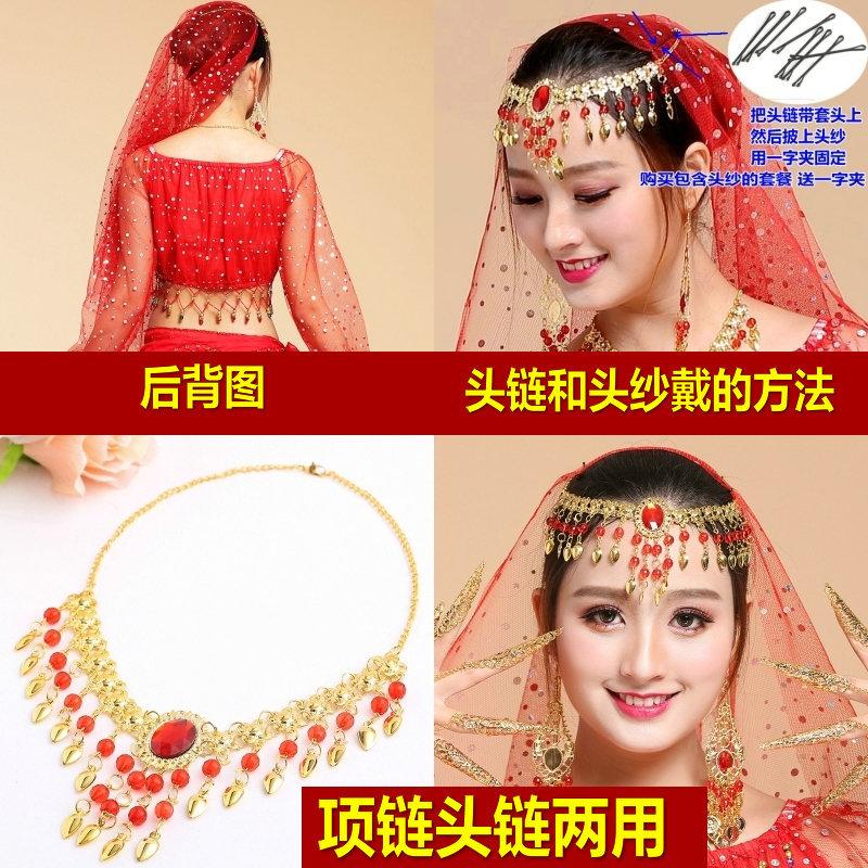 conjunto de seis piezas= top + falda + cadena de cintura + cadena para la cabeza + velo + collar + aretes