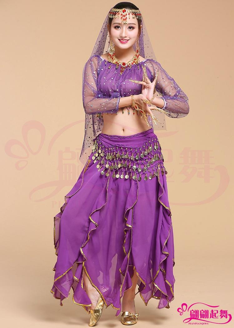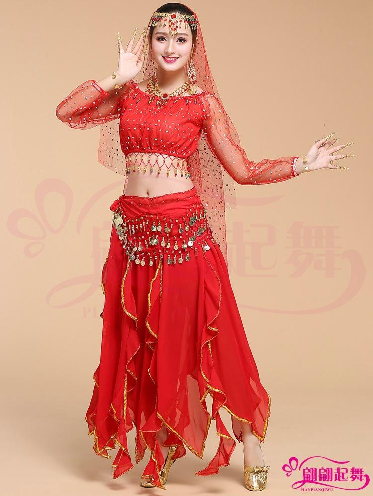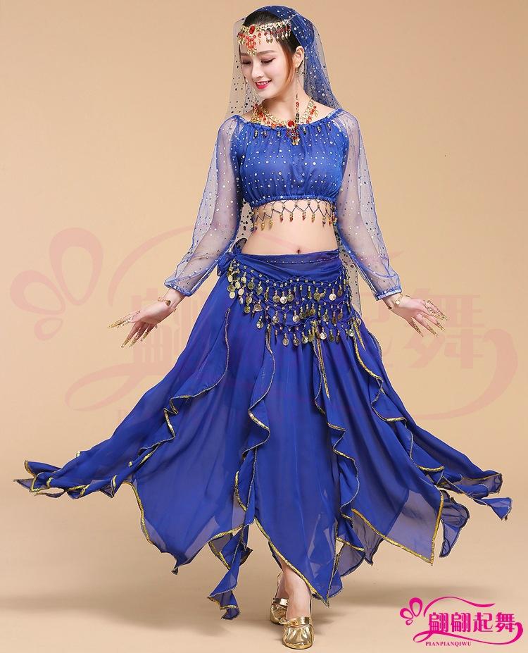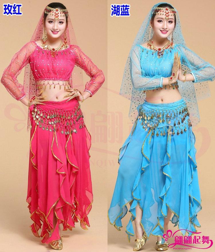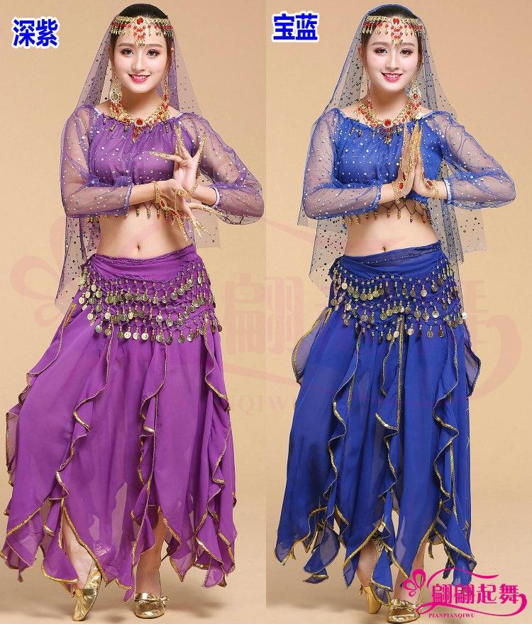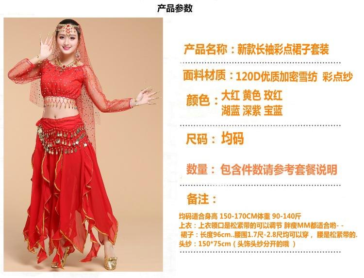 [Nombre]: Nuevo traje de danza del vientre, traje de actuación, falda colorida de manga larga, traje de práctica