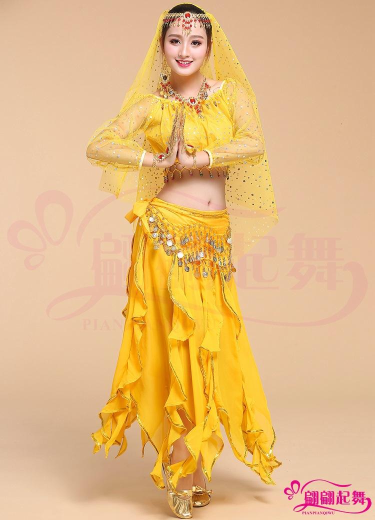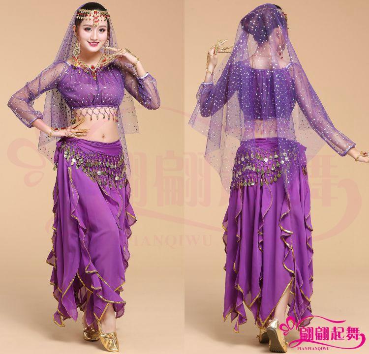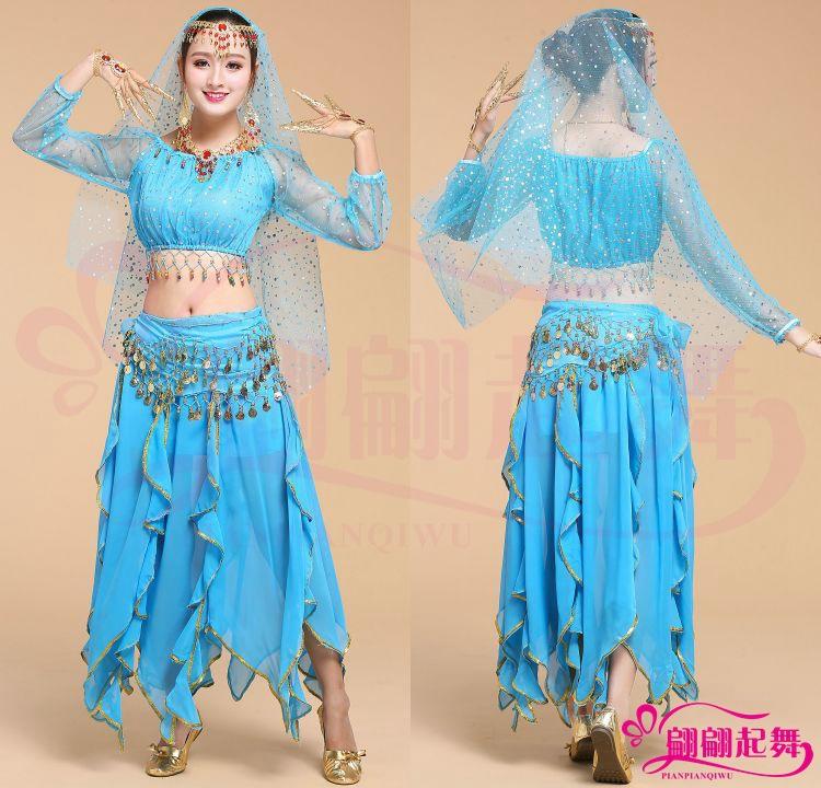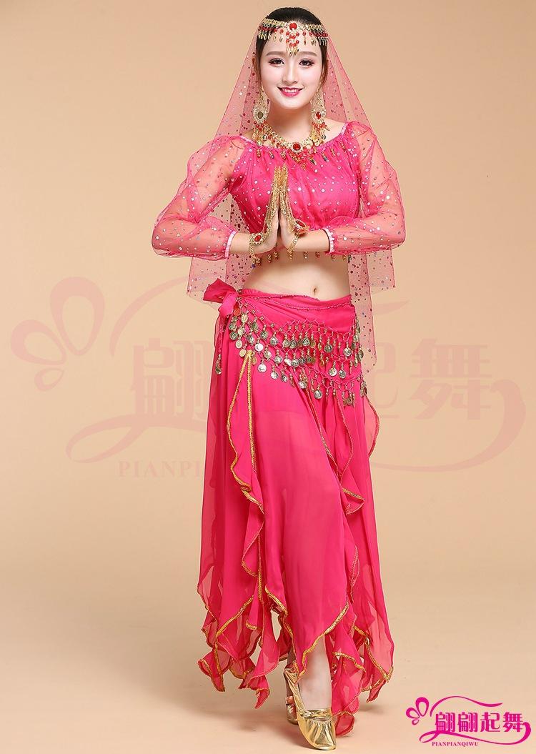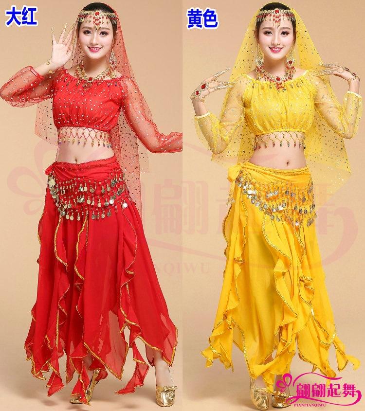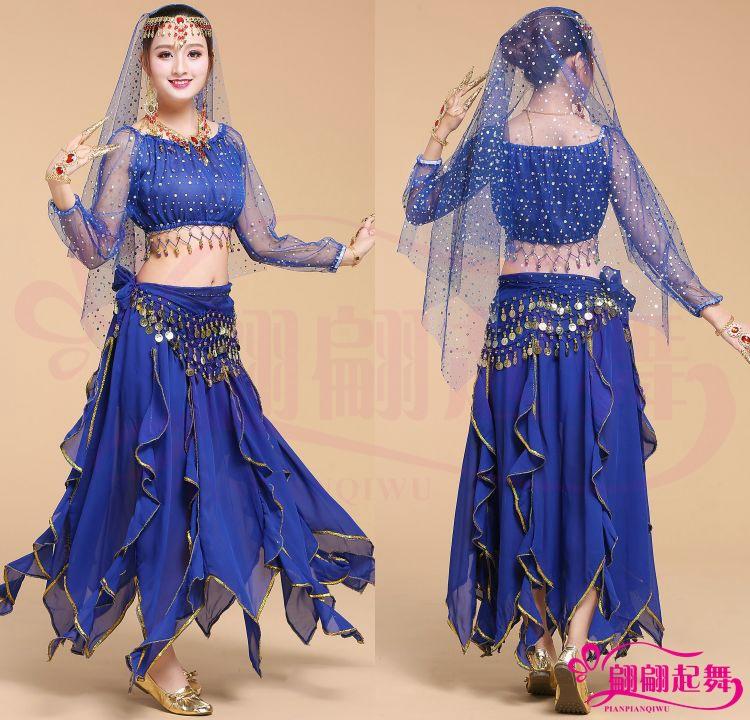 [Nombre]: Nuevo traje de danza del vientre, traje de actuación, falda colorida de manga larga, traje de práctica
