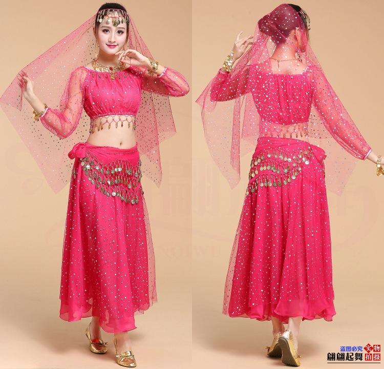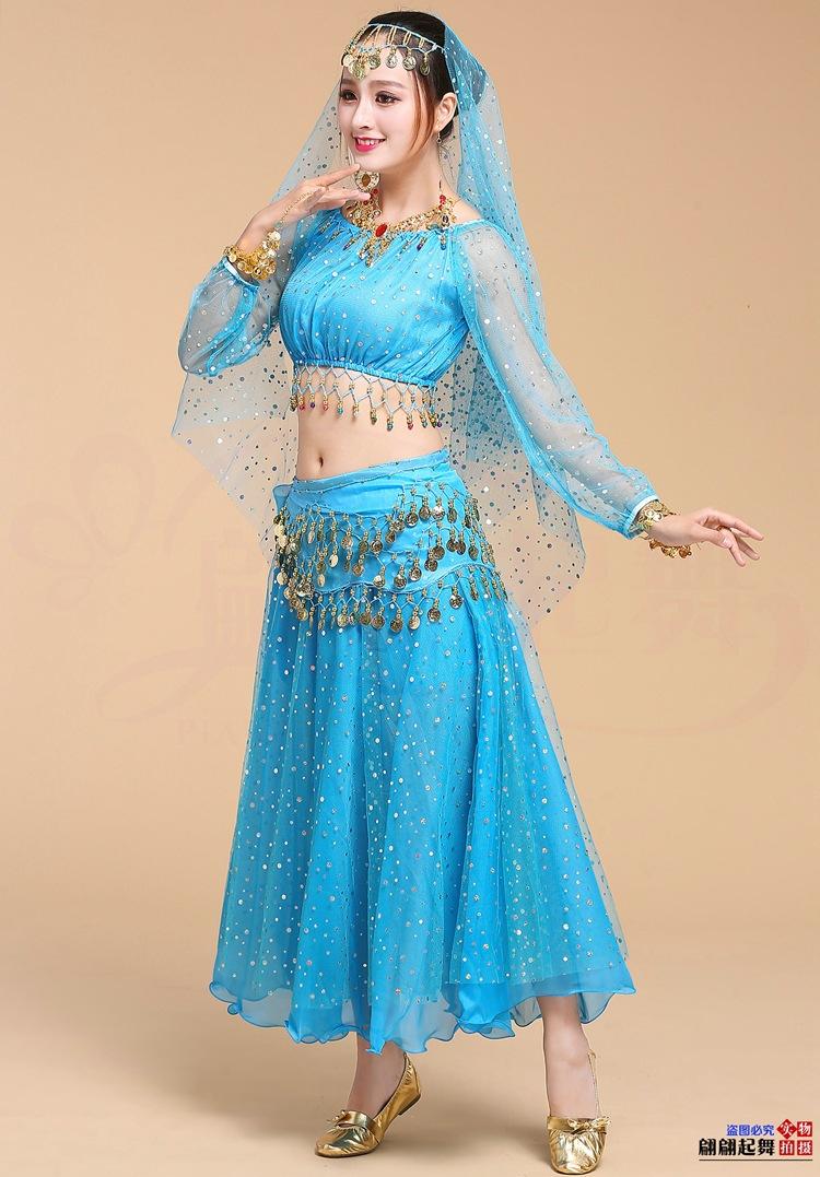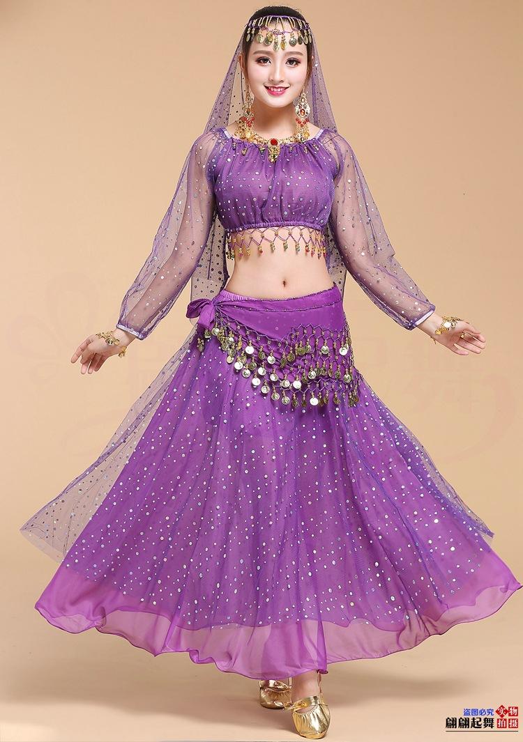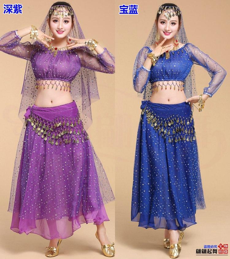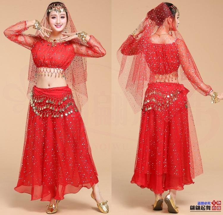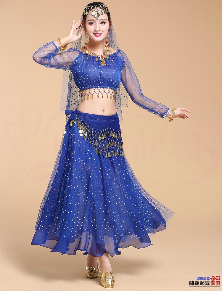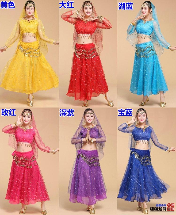 [Nombre]: Traje de danza del vientre traje de actuación falda colorida de manga larga traje de práctica