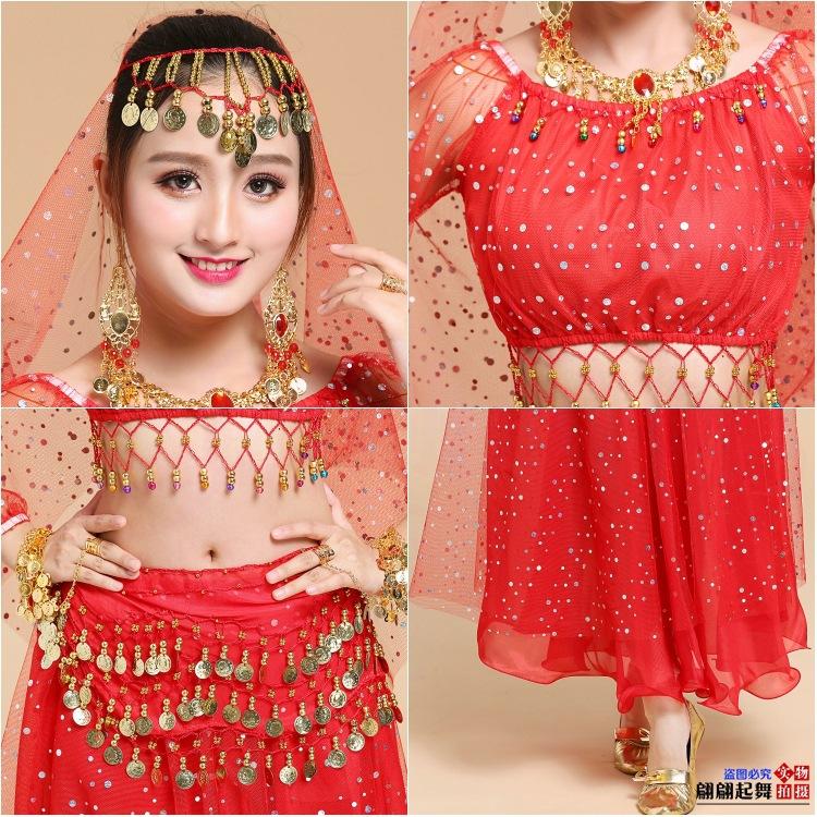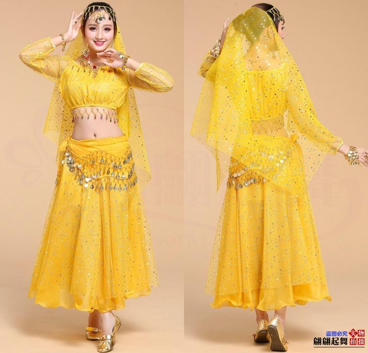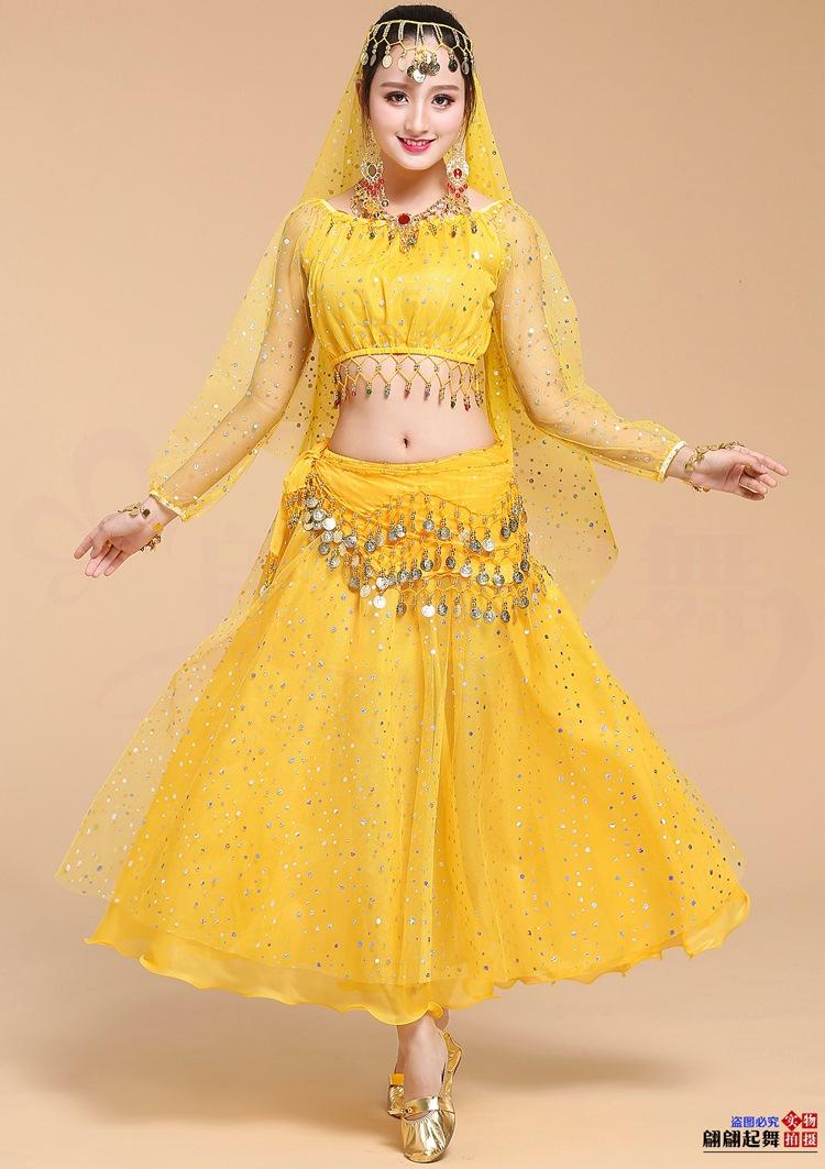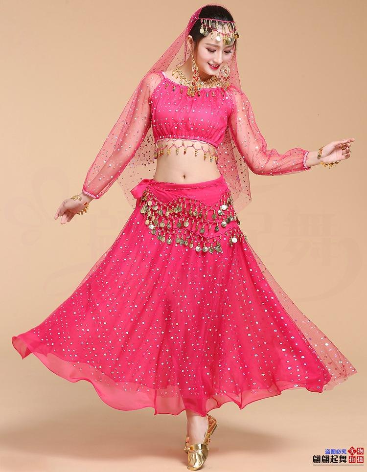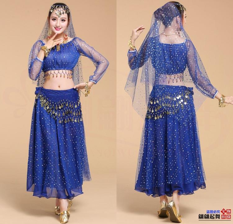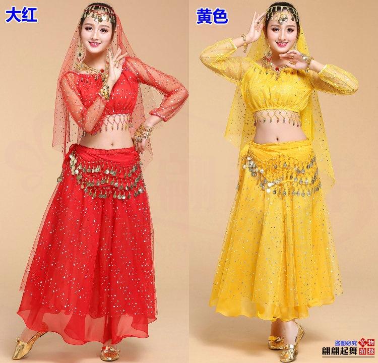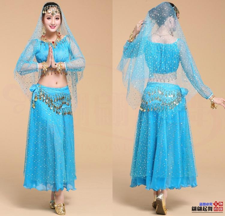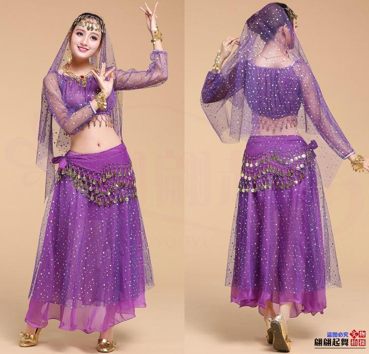 [Nombre]: Traje de danza del vientre traje de actuación falda colorida de manga larga traje de práctica
