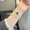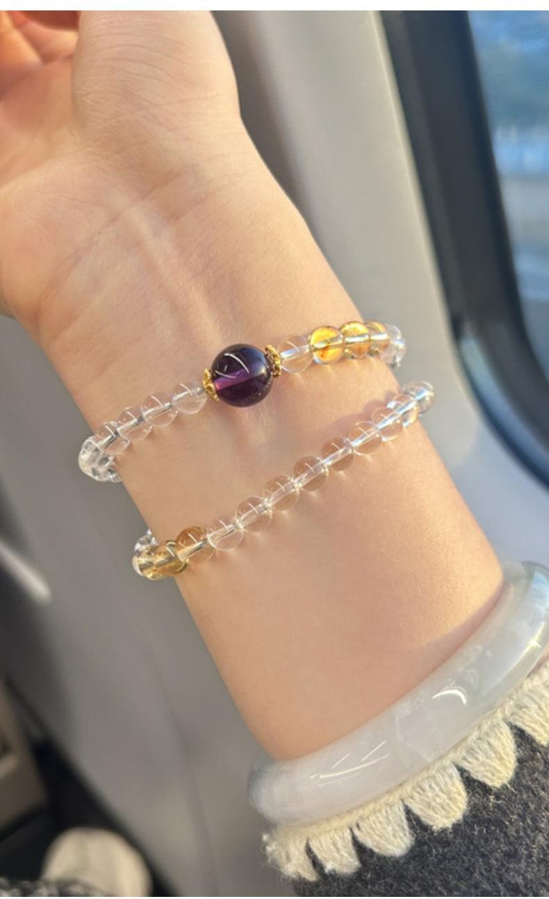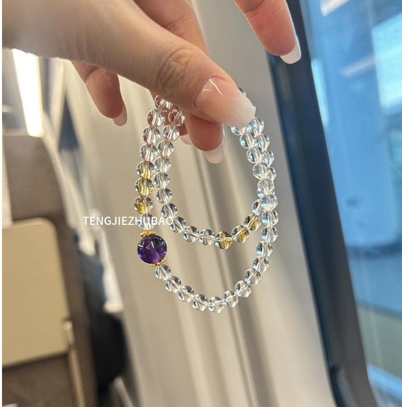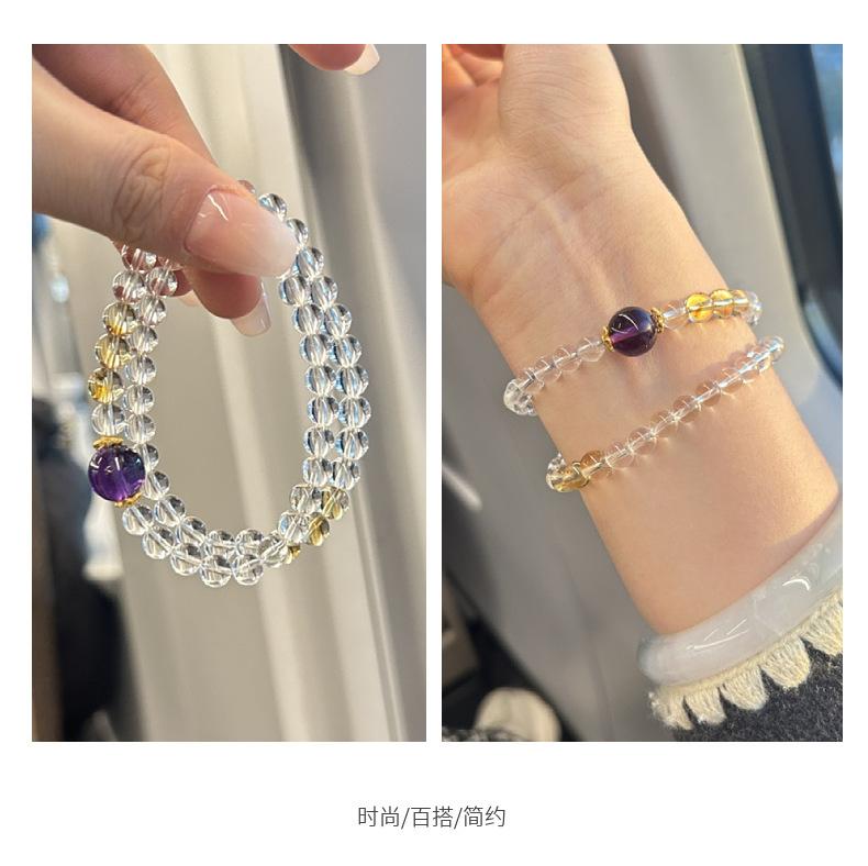 | Pulsera de cuentas de cristal de torre de citrino amarillo natural de 10 mm con cuentas de amatista a juego, regalo de cumpleaños para novia femenina |
