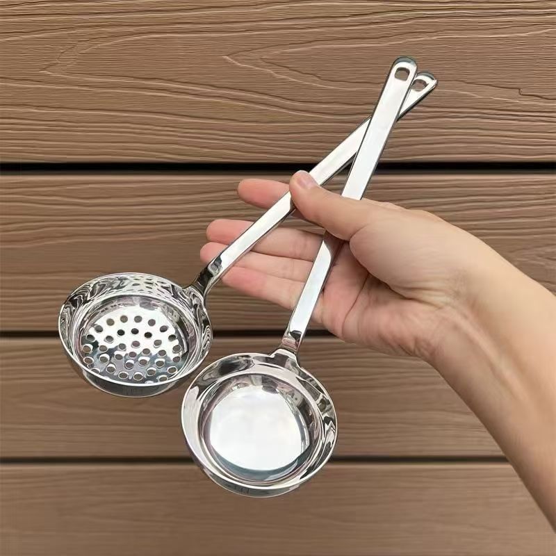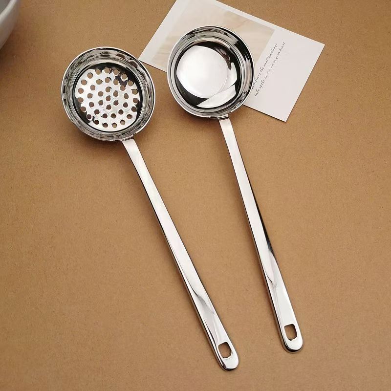 Colador de cuchara plana para olla caliente de 18 a 10 pulgadas, de acero inoxidable 304, con mango largo para cocina doméstica