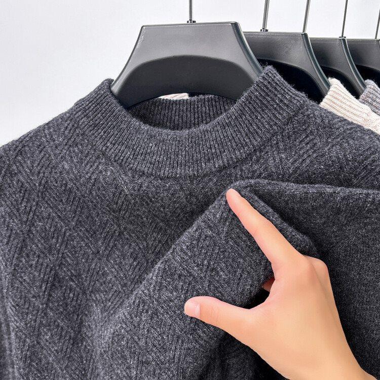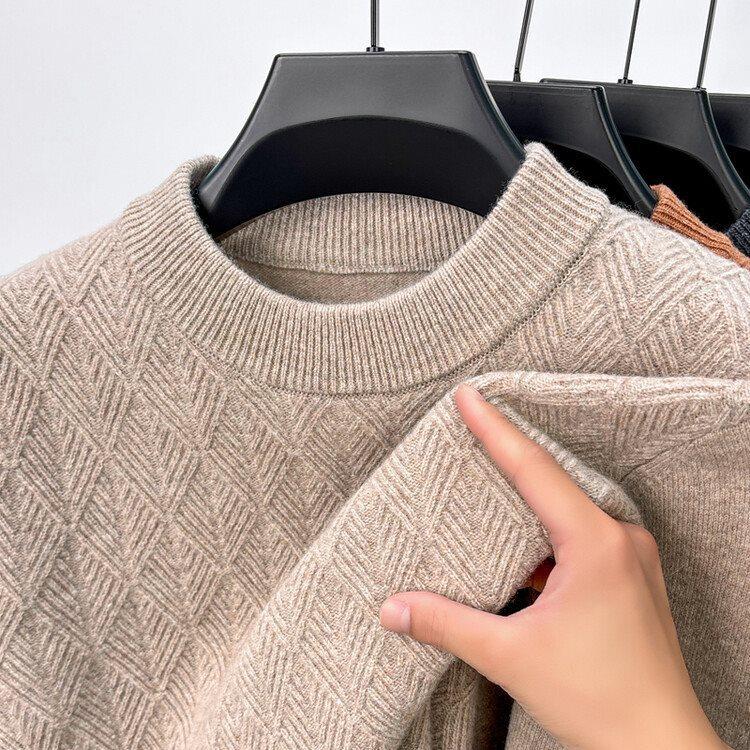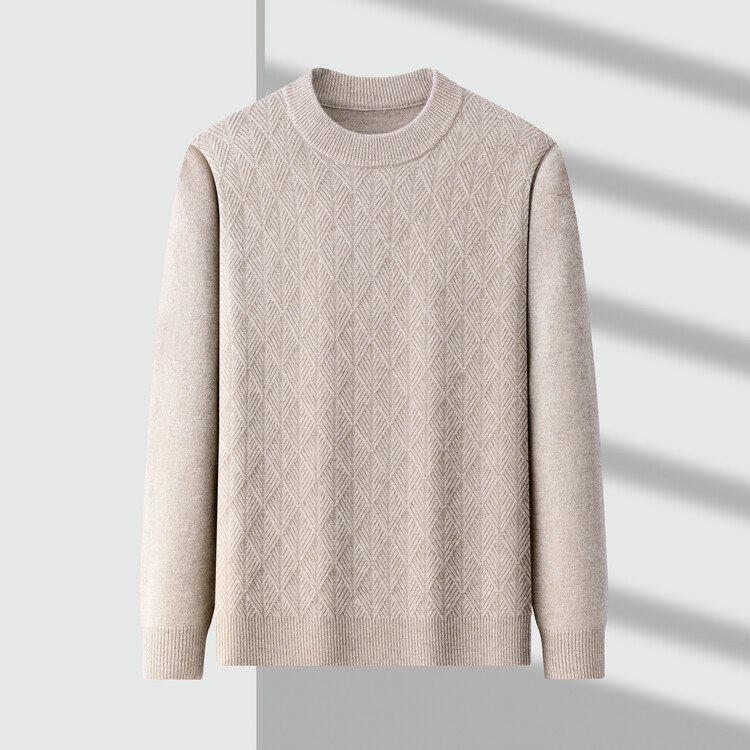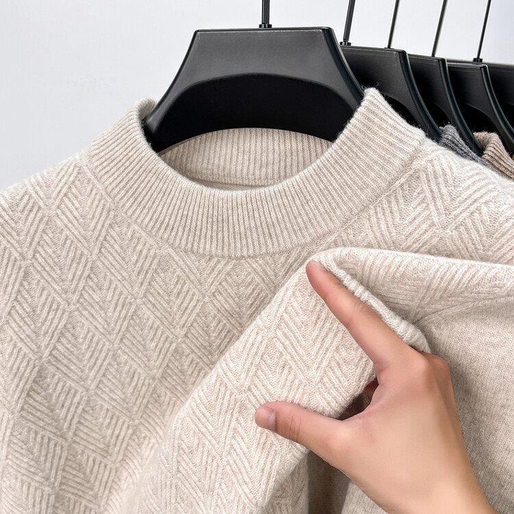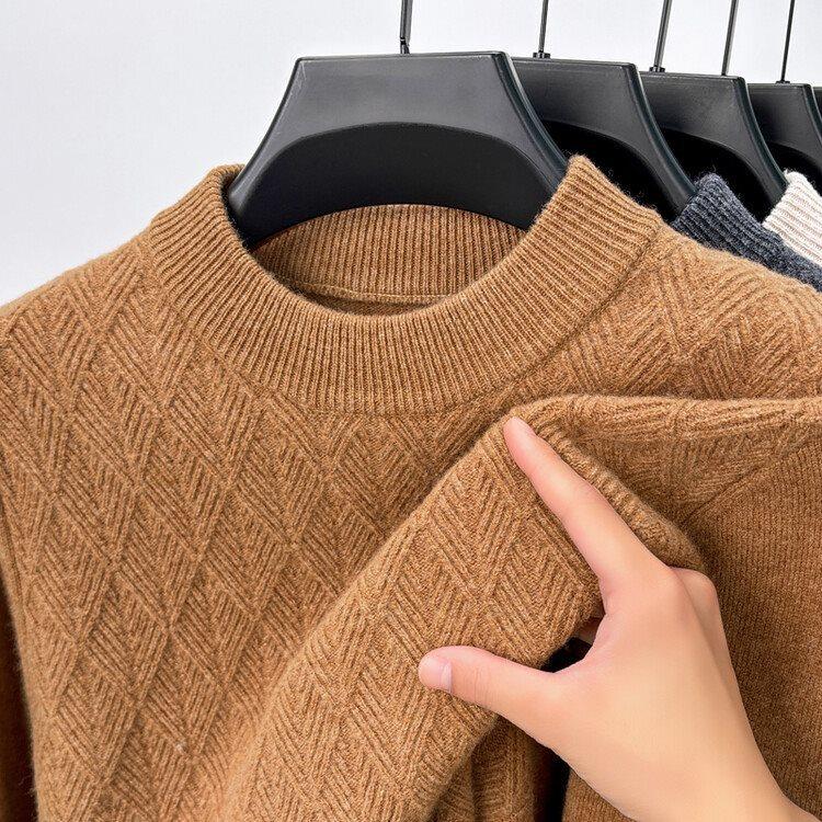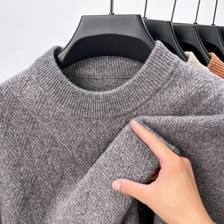 Suéter Cálido de Otoño e Invierno 2024 100% Lana Cuello Redondo Jacquard para Hombre de Mediana Edad Suéter Tejido Holgado Casual Camisa Base
