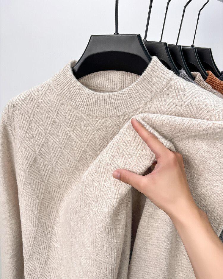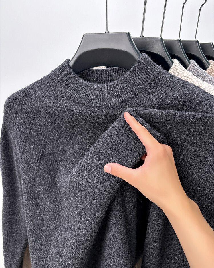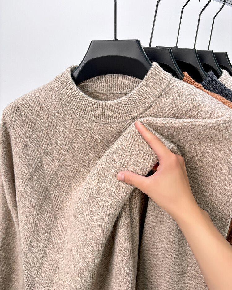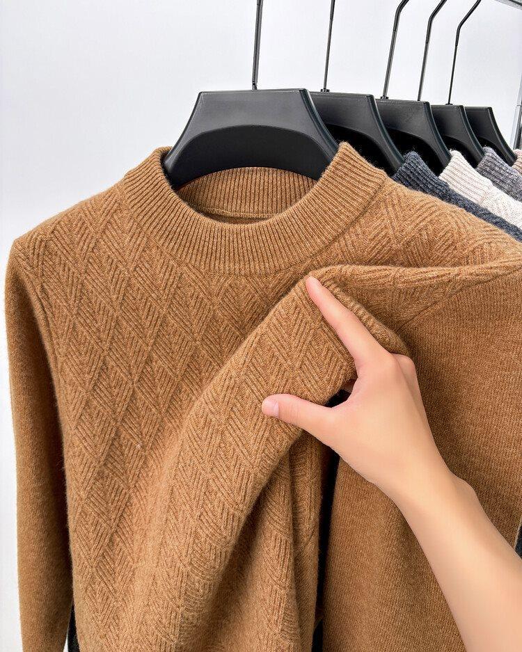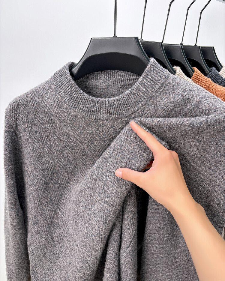 Suéter Cálido de Otoño e Invierno 2024 100% Lana Cuello Redondo Jacquard para Hombre de Mediana Edad Suéter Tejido Holgado Casual Camisa Base